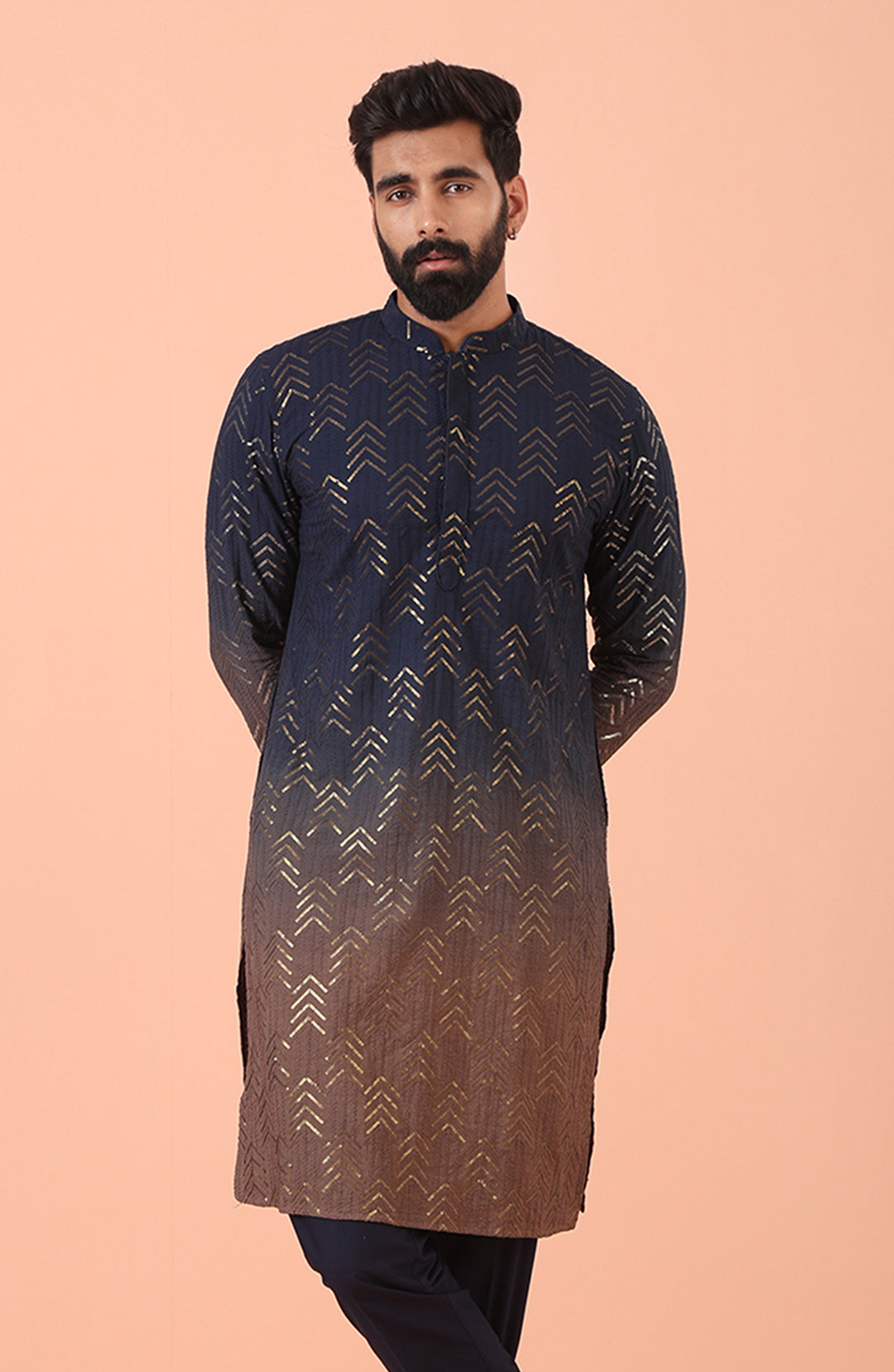 Experience classic elegance with this Men's Ombre Color Cotton Kurta. The Embellished Pattern adds a refined touch, while the breathable fabric ensures comfort throughout the day. Ideal for festive events or casual wear, this Kurta is a wardrobe essential.