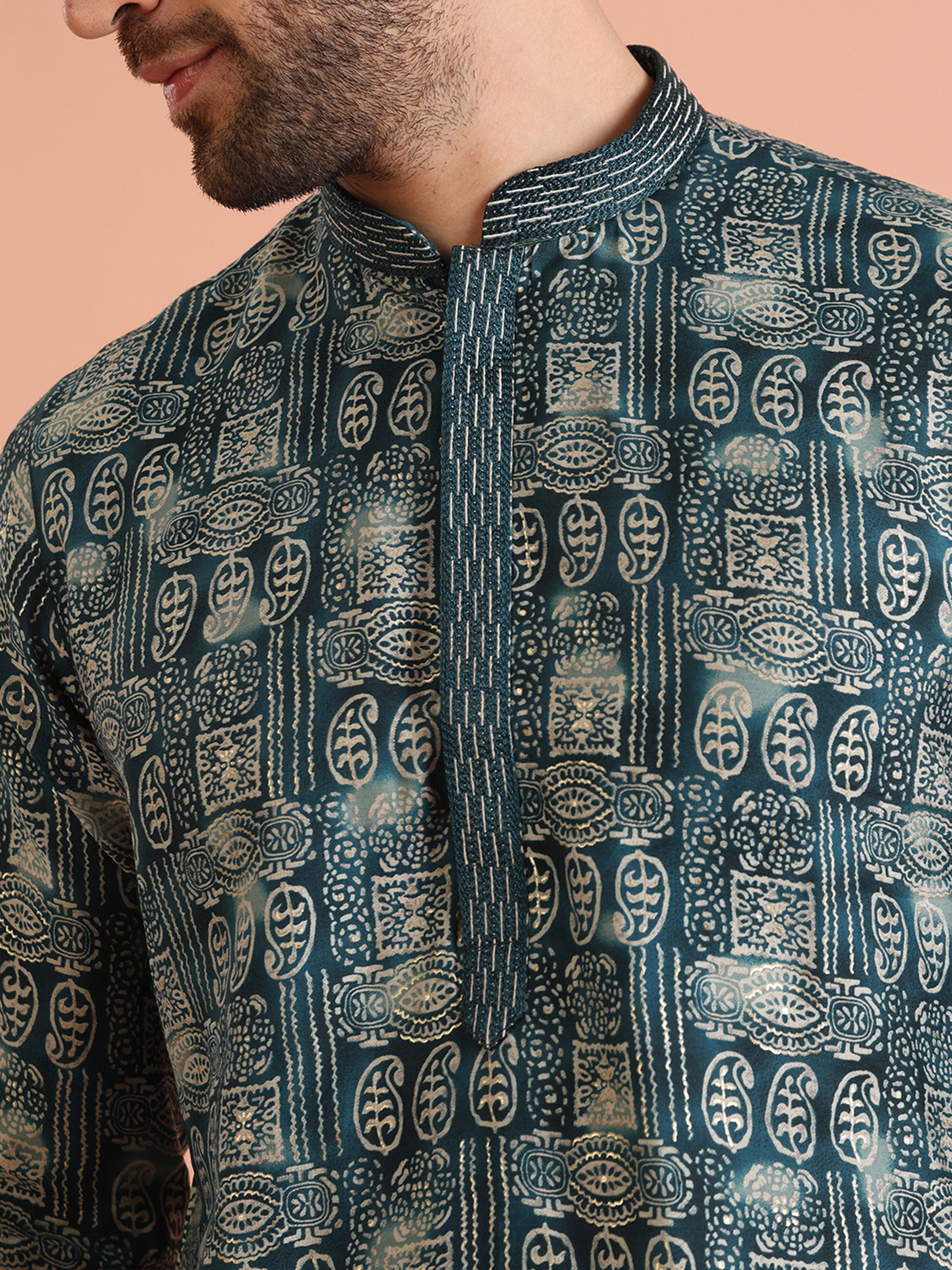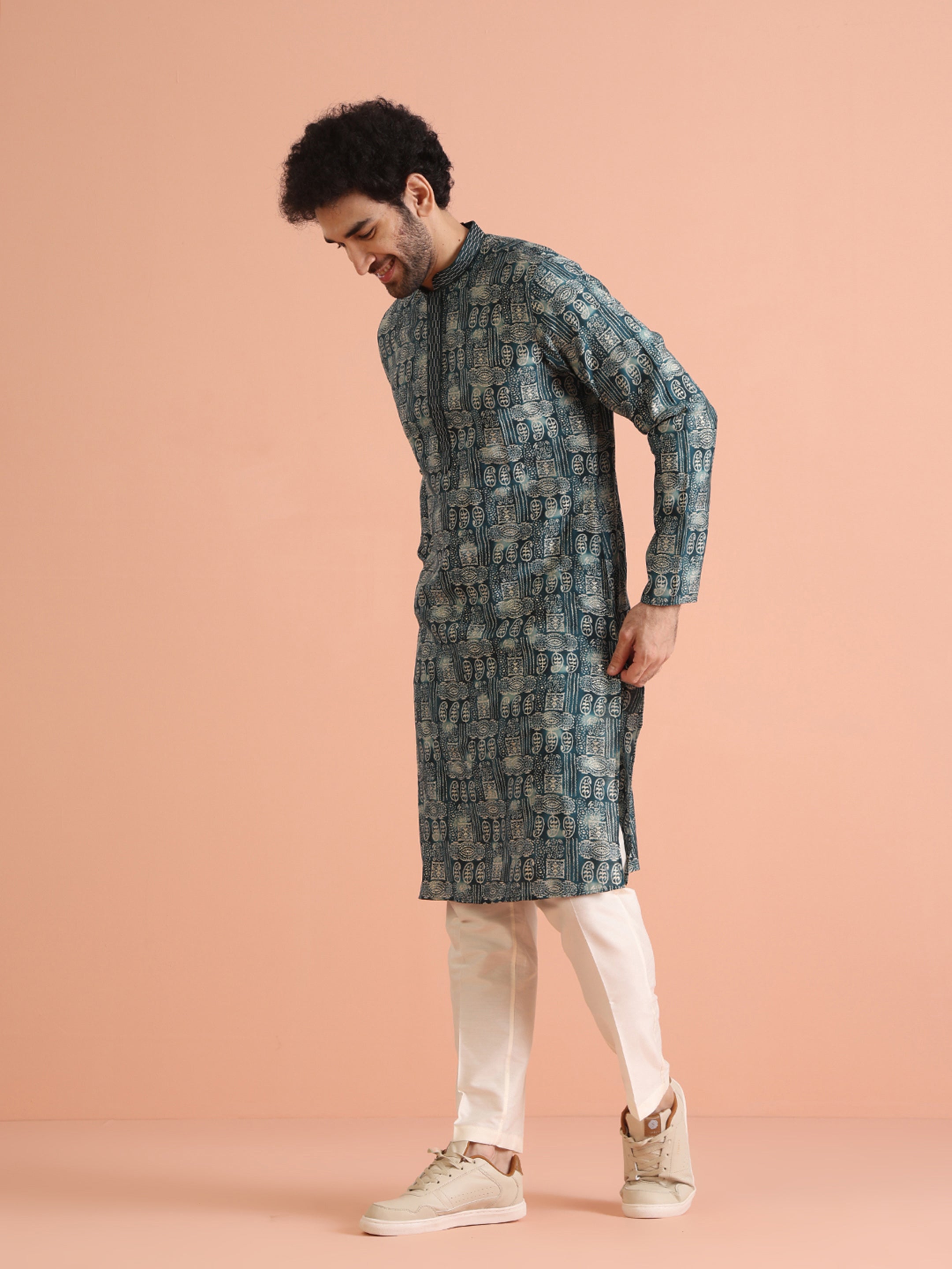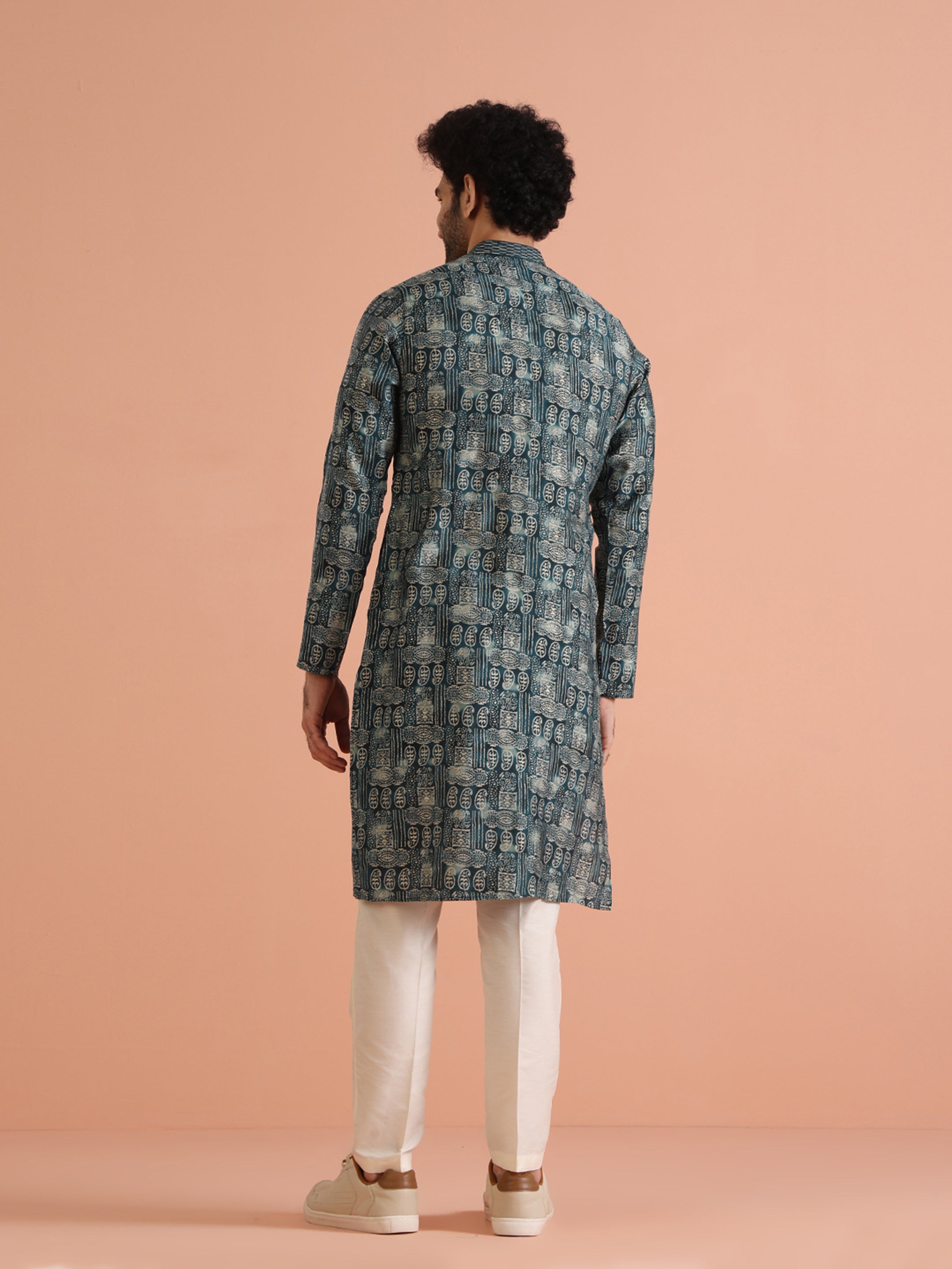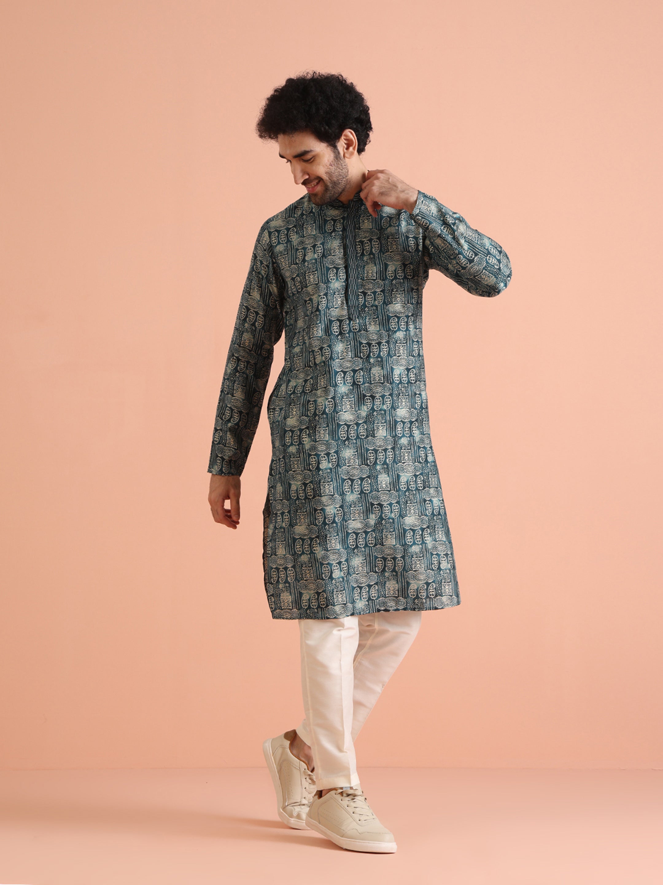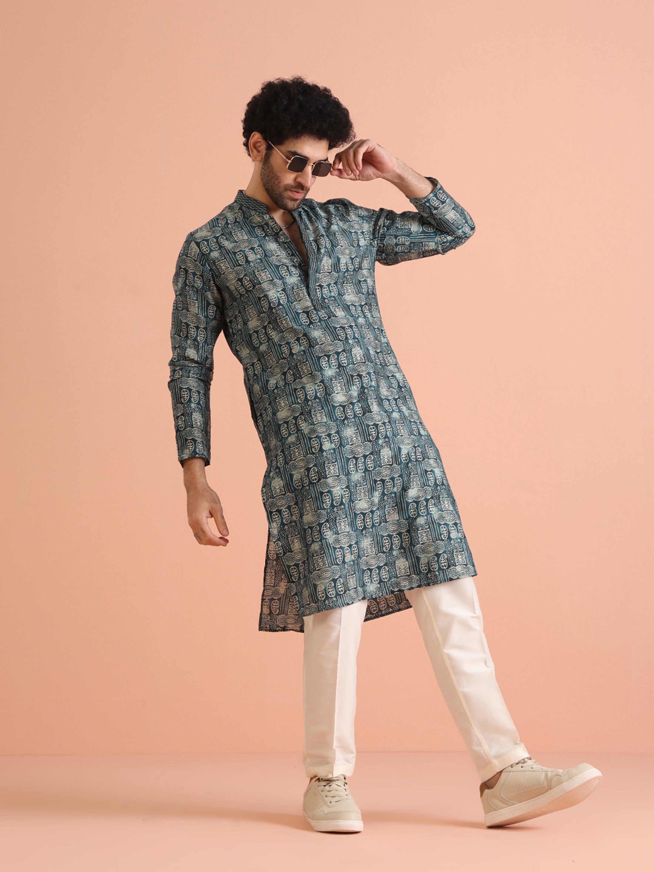 Experience classic elegance with this Men's Turquoise Blue Color Cotton Blend Kurta Trouser Set. The Printed Pattern adds a refined touch, while the breathable fabric ensures comfort throughout the day. Ideal for festive events or casual wear, this Kurta Trouser Set is a wardrobe essential.
