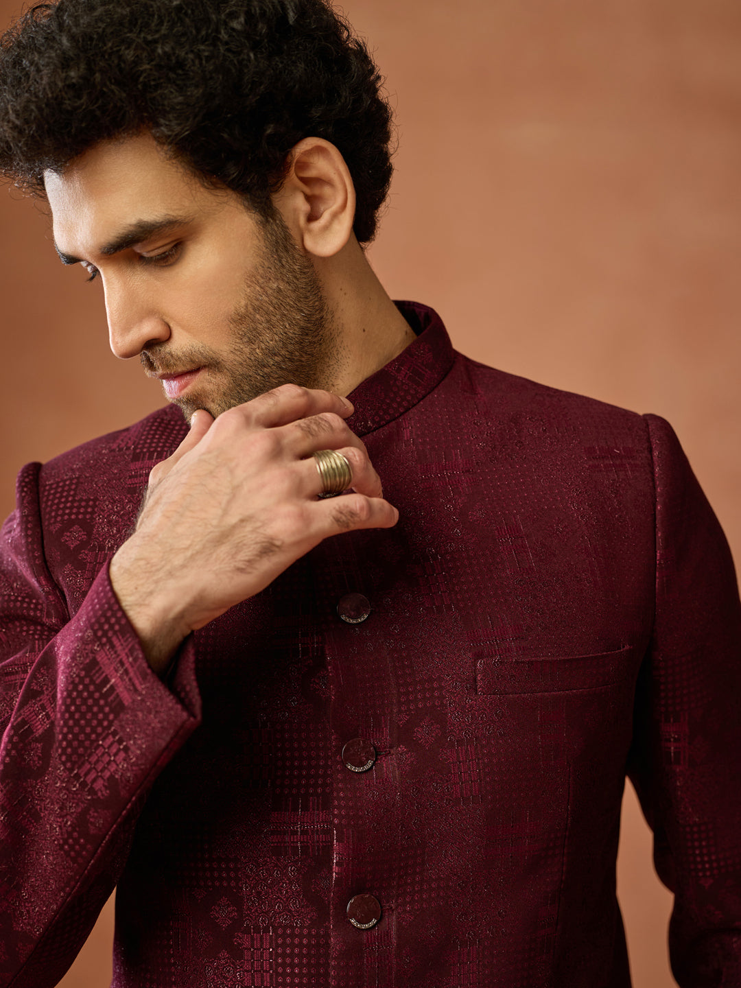 Maroon Poly Silk Jacquard Bandhgala, Perfect festive ethnic wear for men, ideal festive and casual occasions.