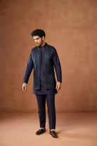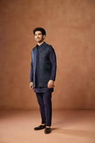 Navy Blue Silk Blend Jacket Kurta Trouser Set