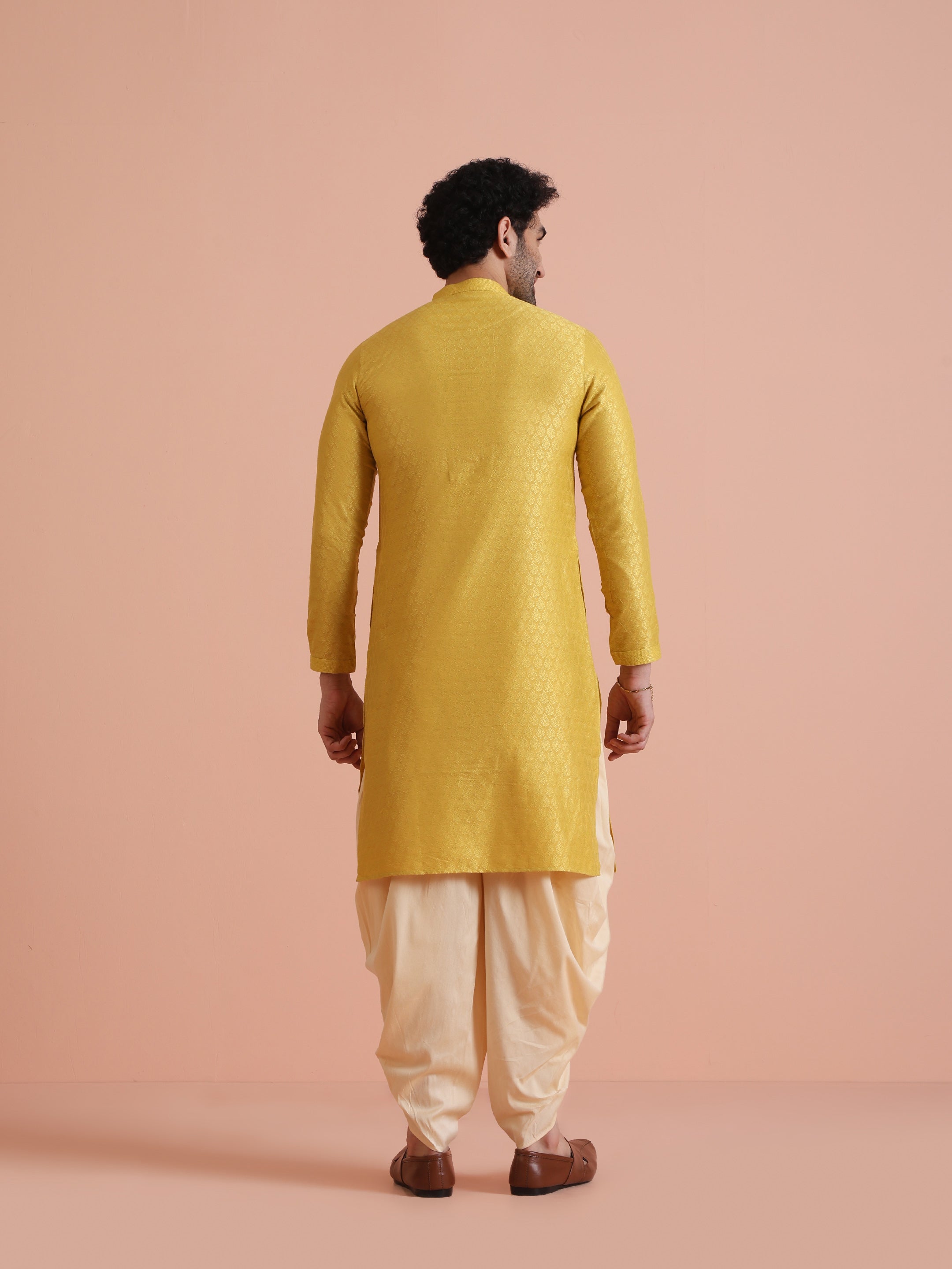 The Kisah kurta Sets is ideal for men looking for stylish yet comfortable attire. Crafted from Cotton Blend fabric, Yellow color, stylish pattern, and comfortable fit make it perfect for festive wear.