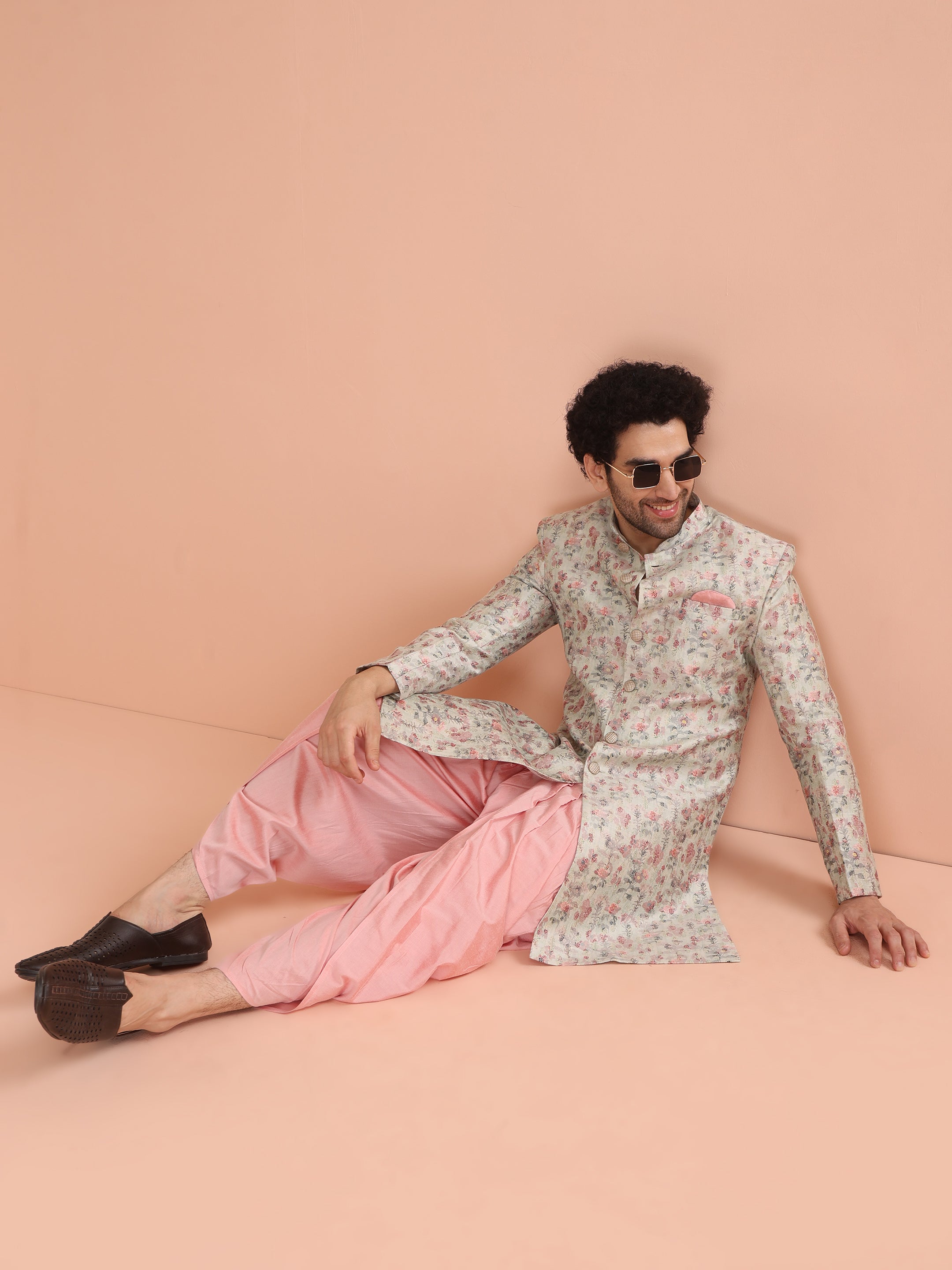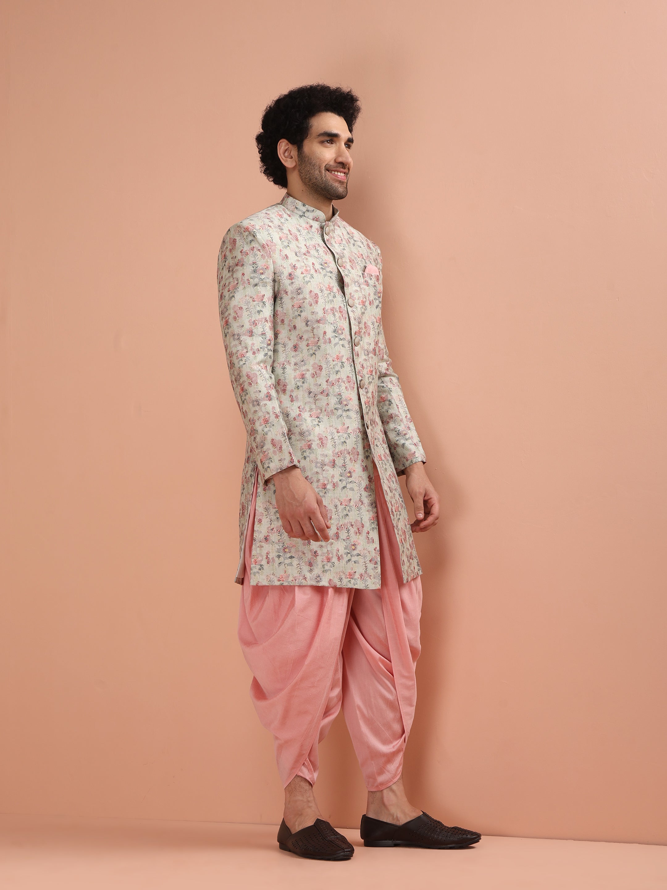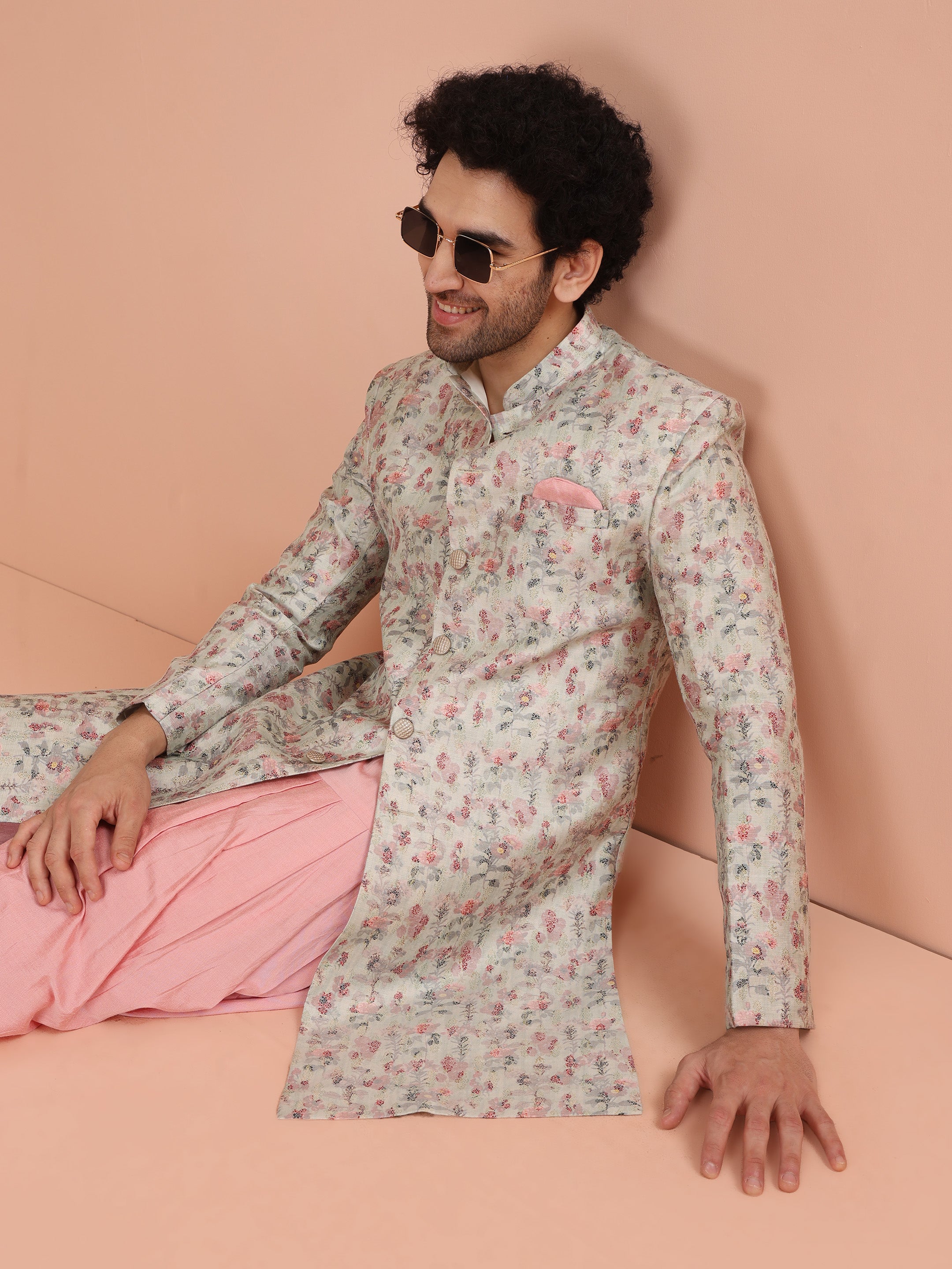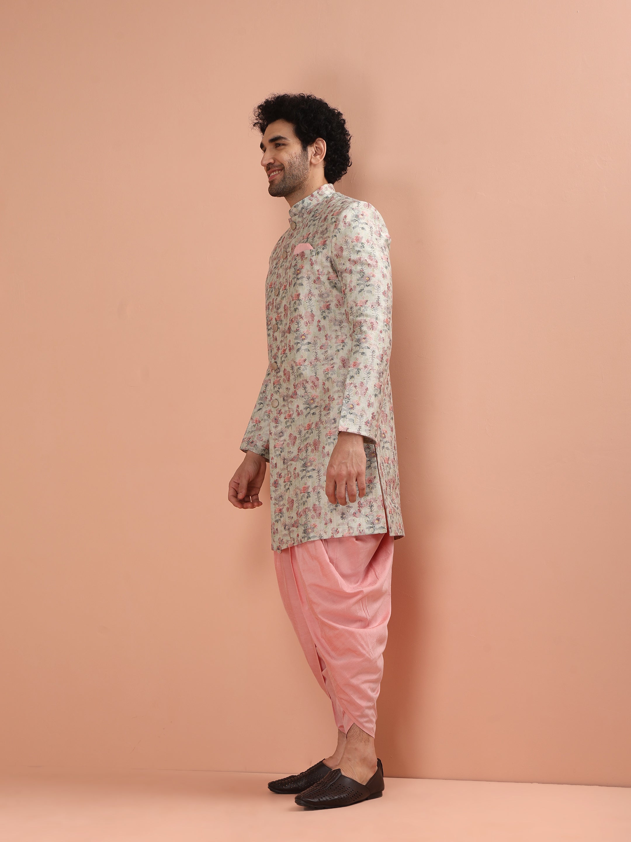 Rich and luxurious, this Multi-Coloured Silk Blend Indowestern Dhoti Set is perfect for weddings, haldis, and mehendis. The vibrant printed fabric adds a festive charm, while the regular fit ensures ease and confidence in every move. Look and feel like a star as you embrace this striking outfit, radiating effortless charm and sophistication.