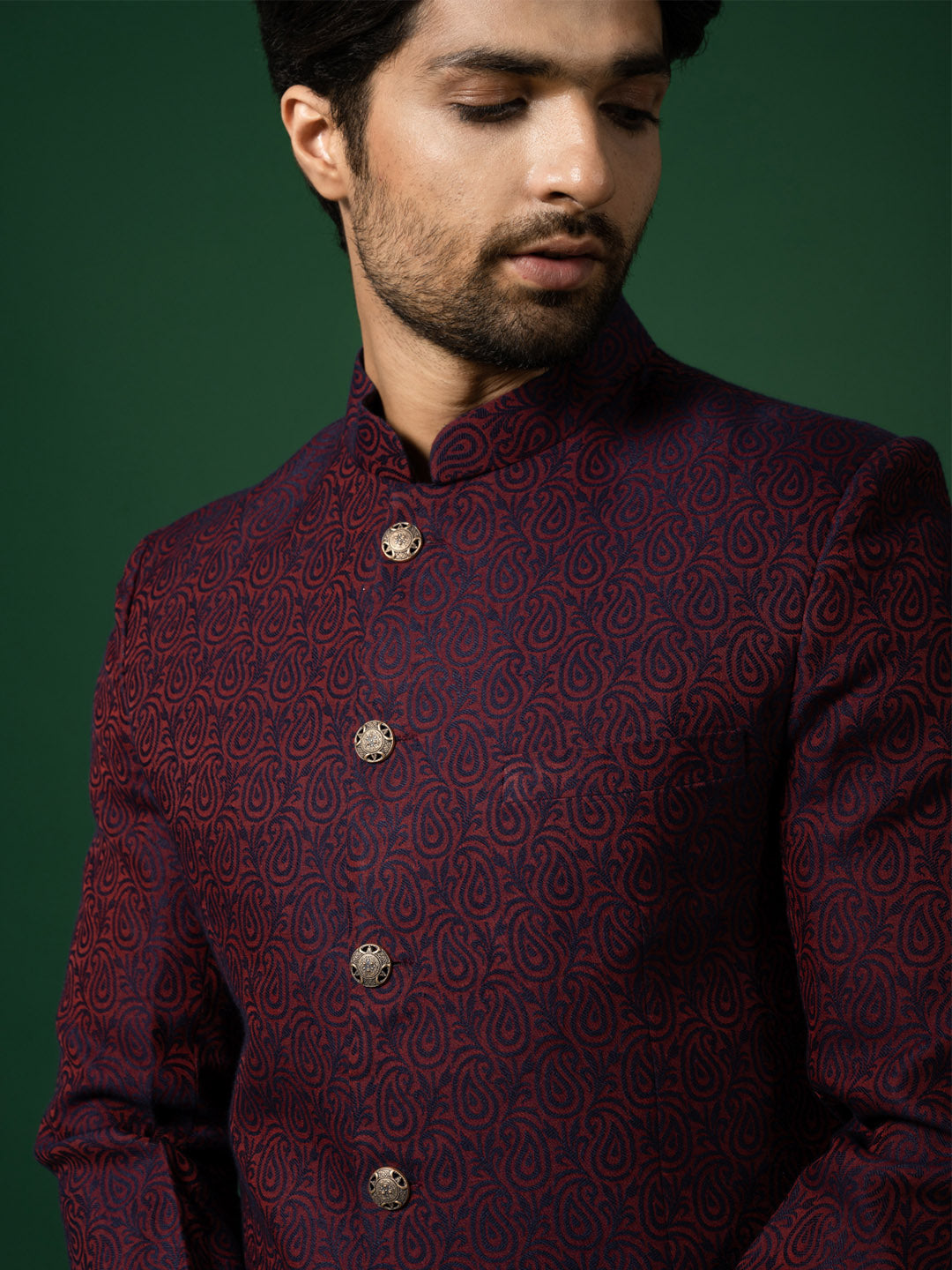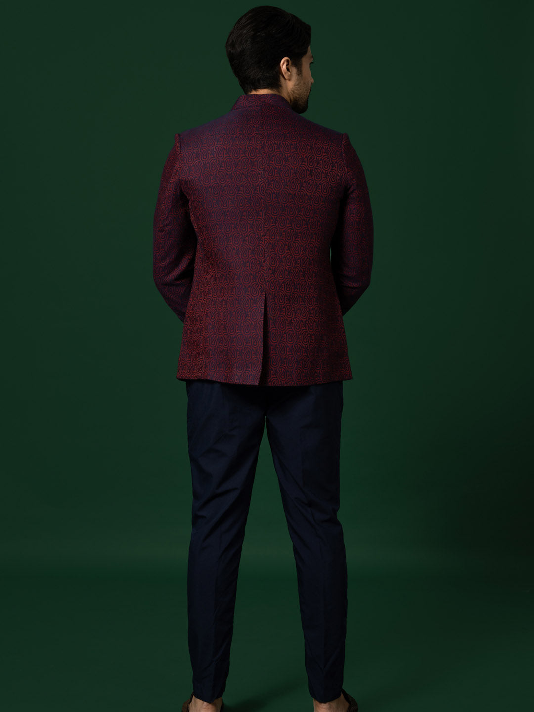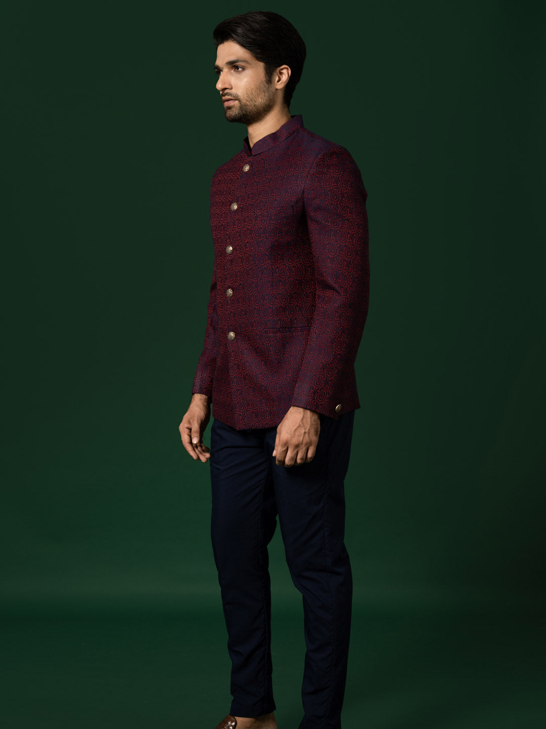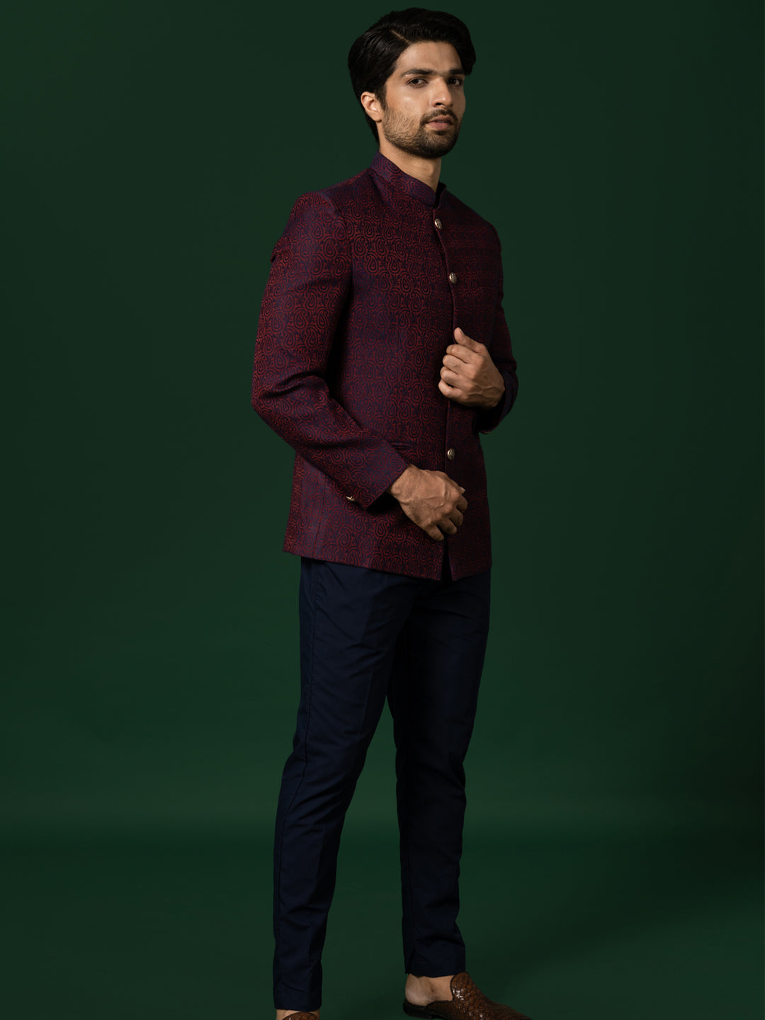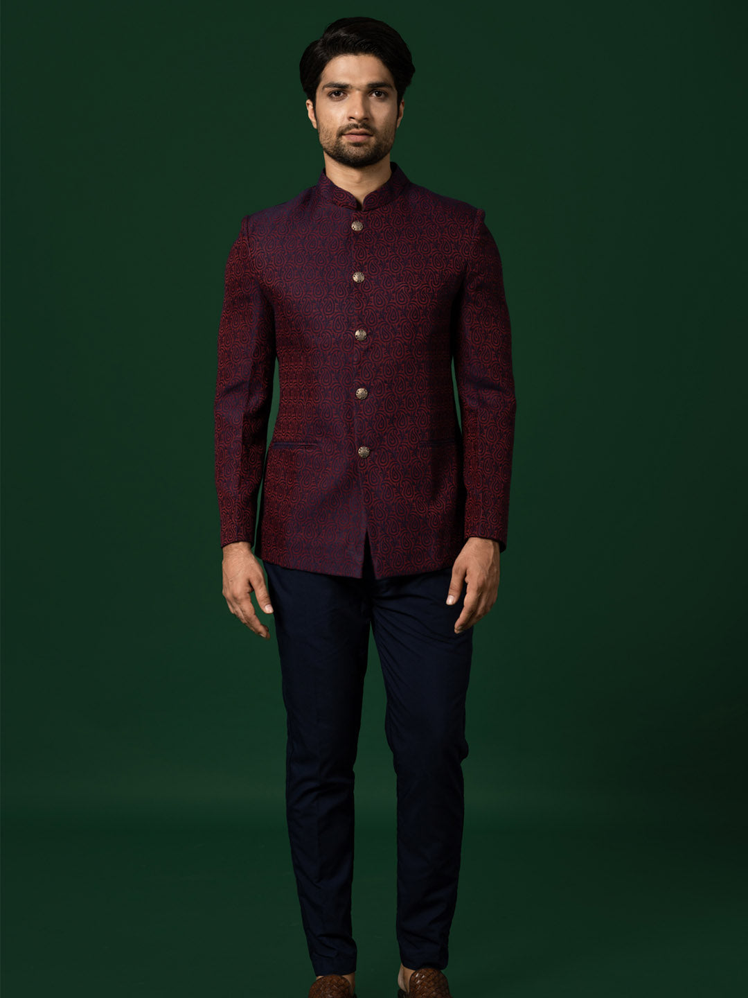 Upgrade your festive wardrobe with the Kisah Bandhgala Trouser Set in Maroon. Crafted from premium Cotton Blend fabric, this set features a sleek solid design and a stylish self-design pattern. Perfect for weddings, festivals, and other special occasions, the regular fit ensures comfort without compromising on style. Ideal for men looking for versatile ethnic wear, this set is an essential piece for your collection. Dry-clean only care keeps it looking fresh and sophisticated, making it a must-have for those who appreciate quality and elegance in their attire.