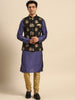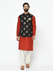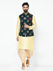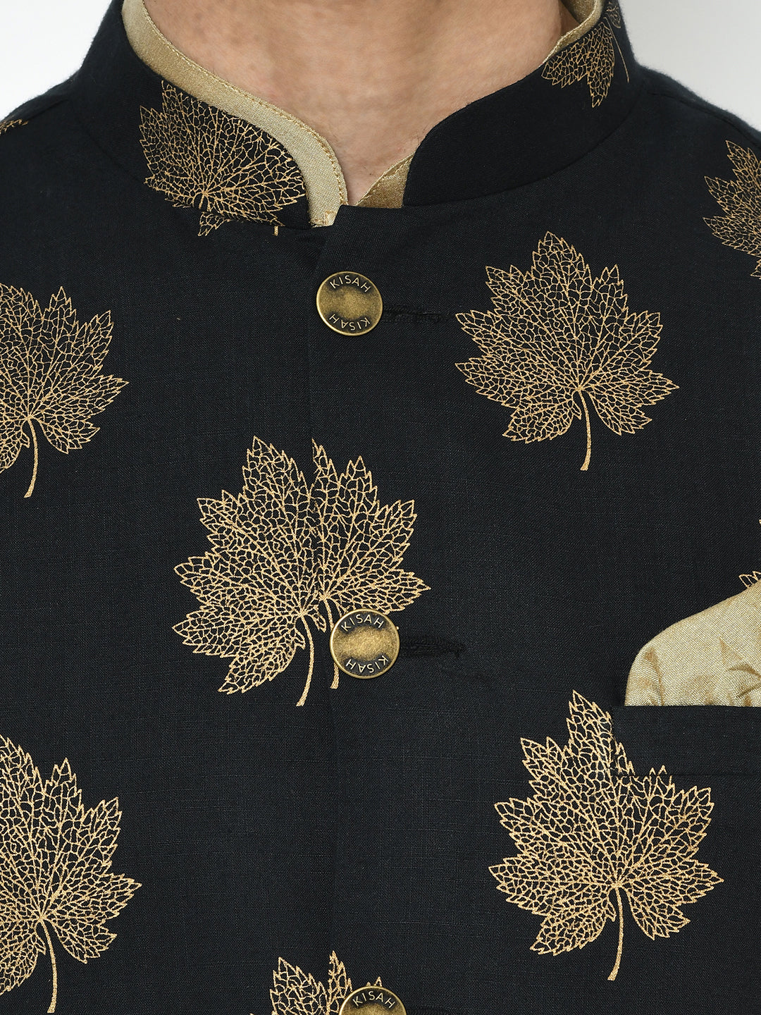 This Kurta Jacket Set with Black Color is an elegant mandarin collar style that is perfect for occasional wear. With a full sleeve Printed Pattern and comfortable Cotton Blend fabric, it will make you look stylish.