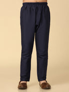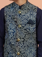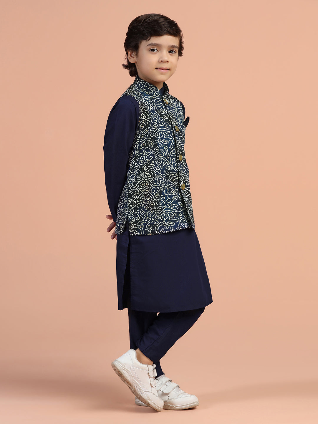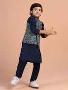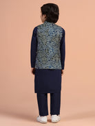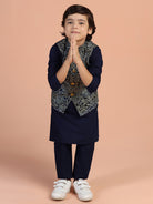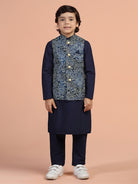 Navy blue printed kurta jacket pyjama set for boys – smart, comfortable, and perfect for festive and family celebrations