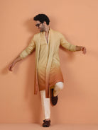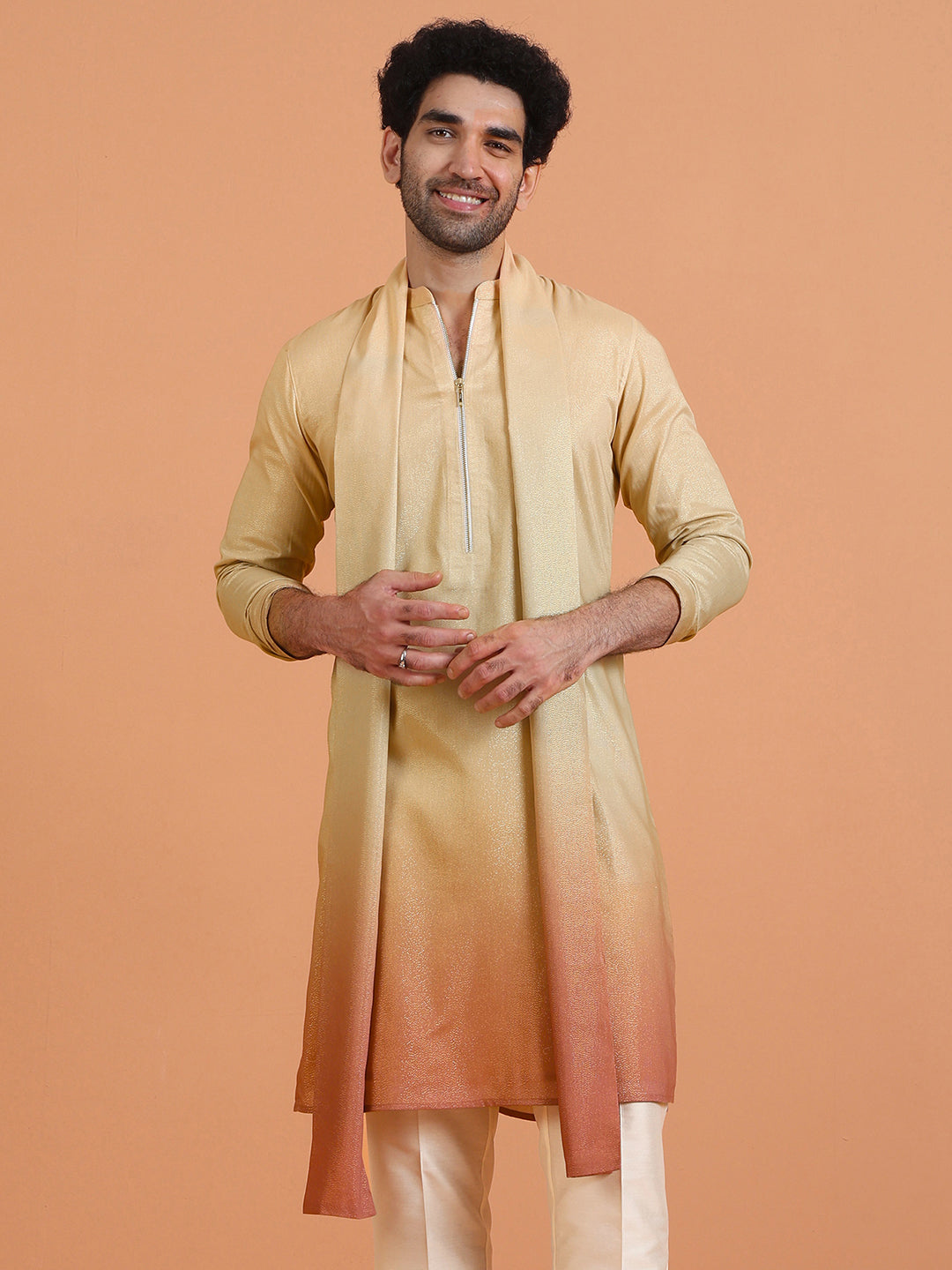 Beige silk blend ombre dupatta for men. Lightweight, festive ethnic stole to style with kurta or sherwani for weddings, puja & celebrations.