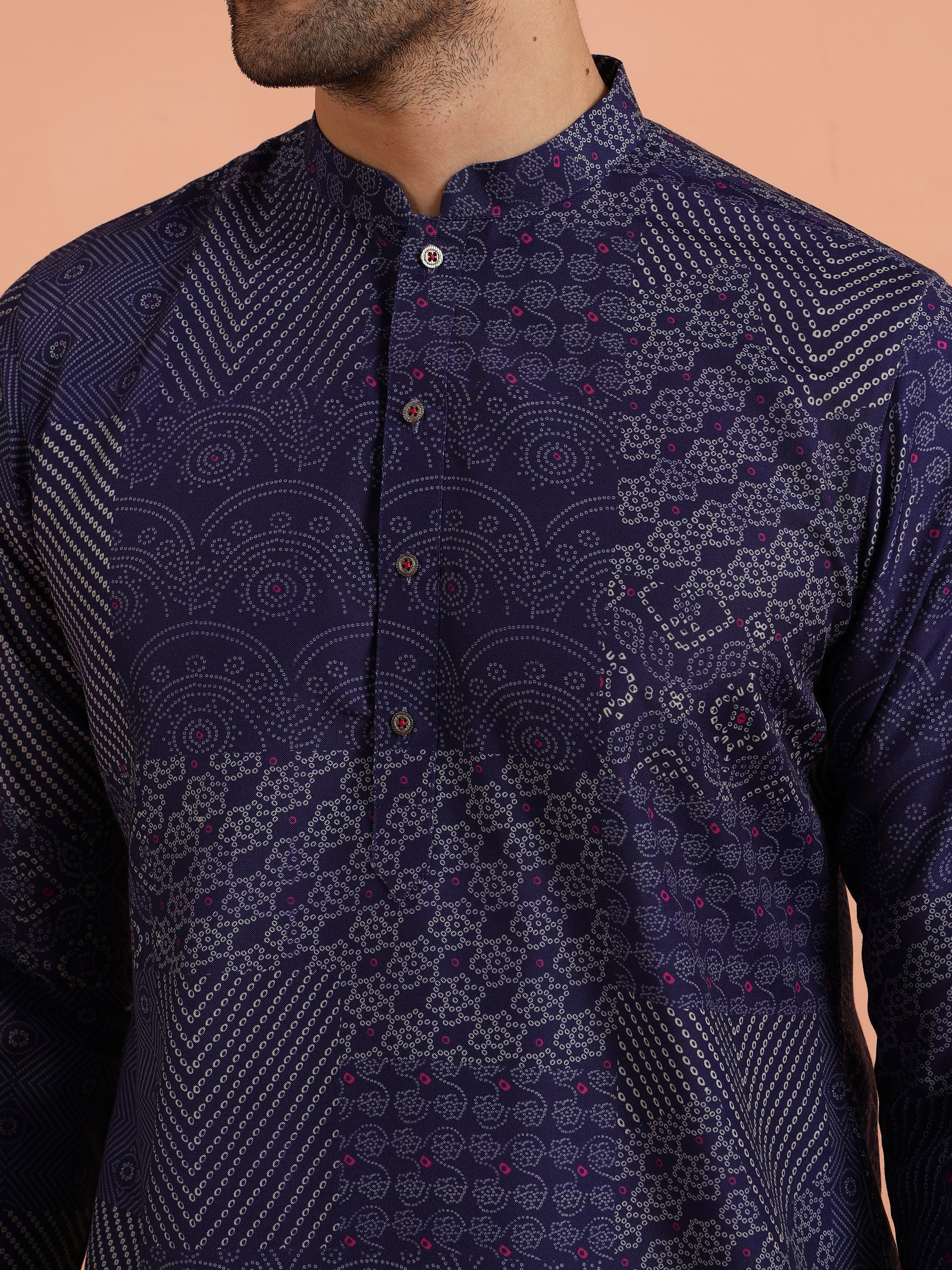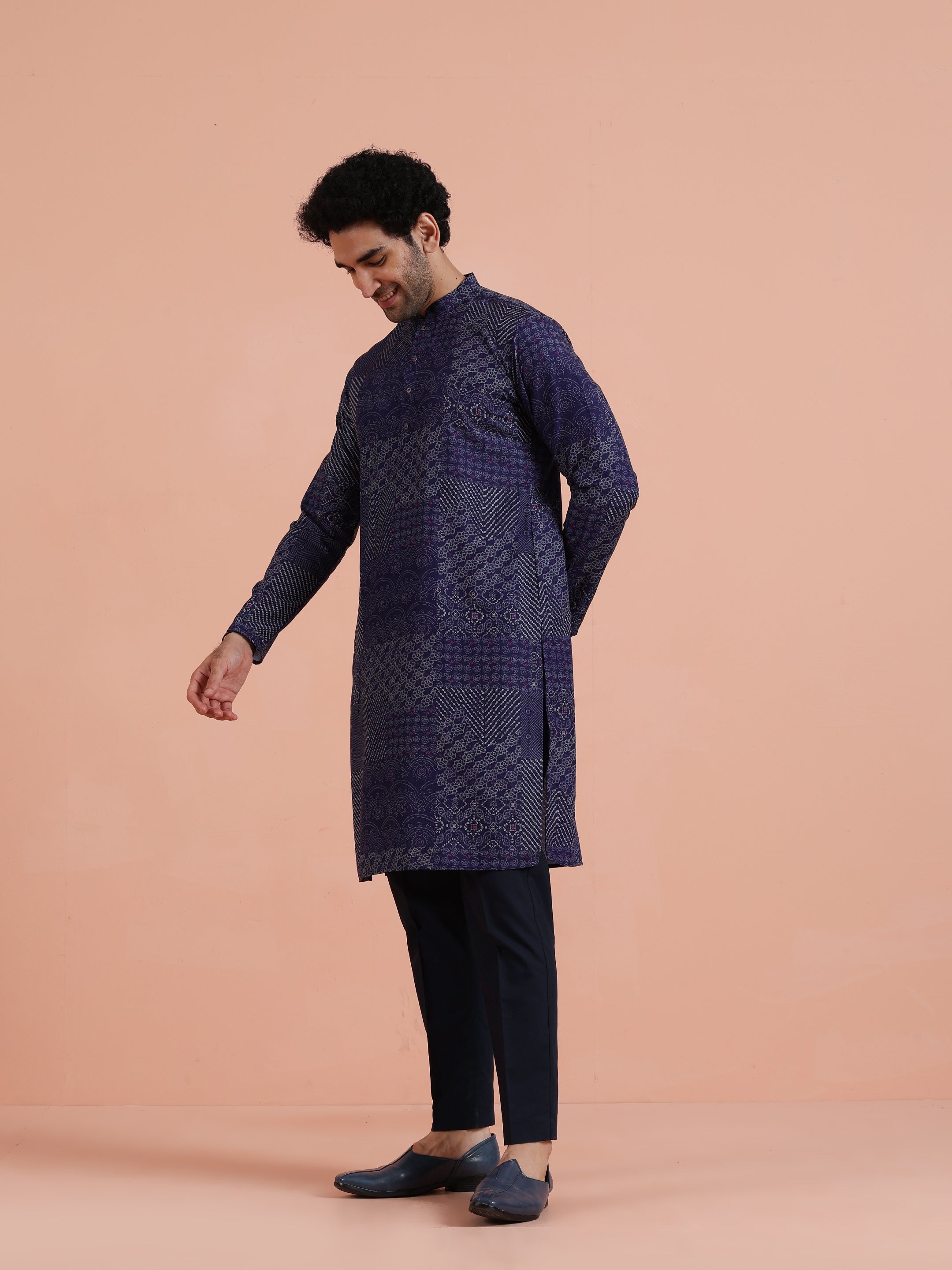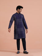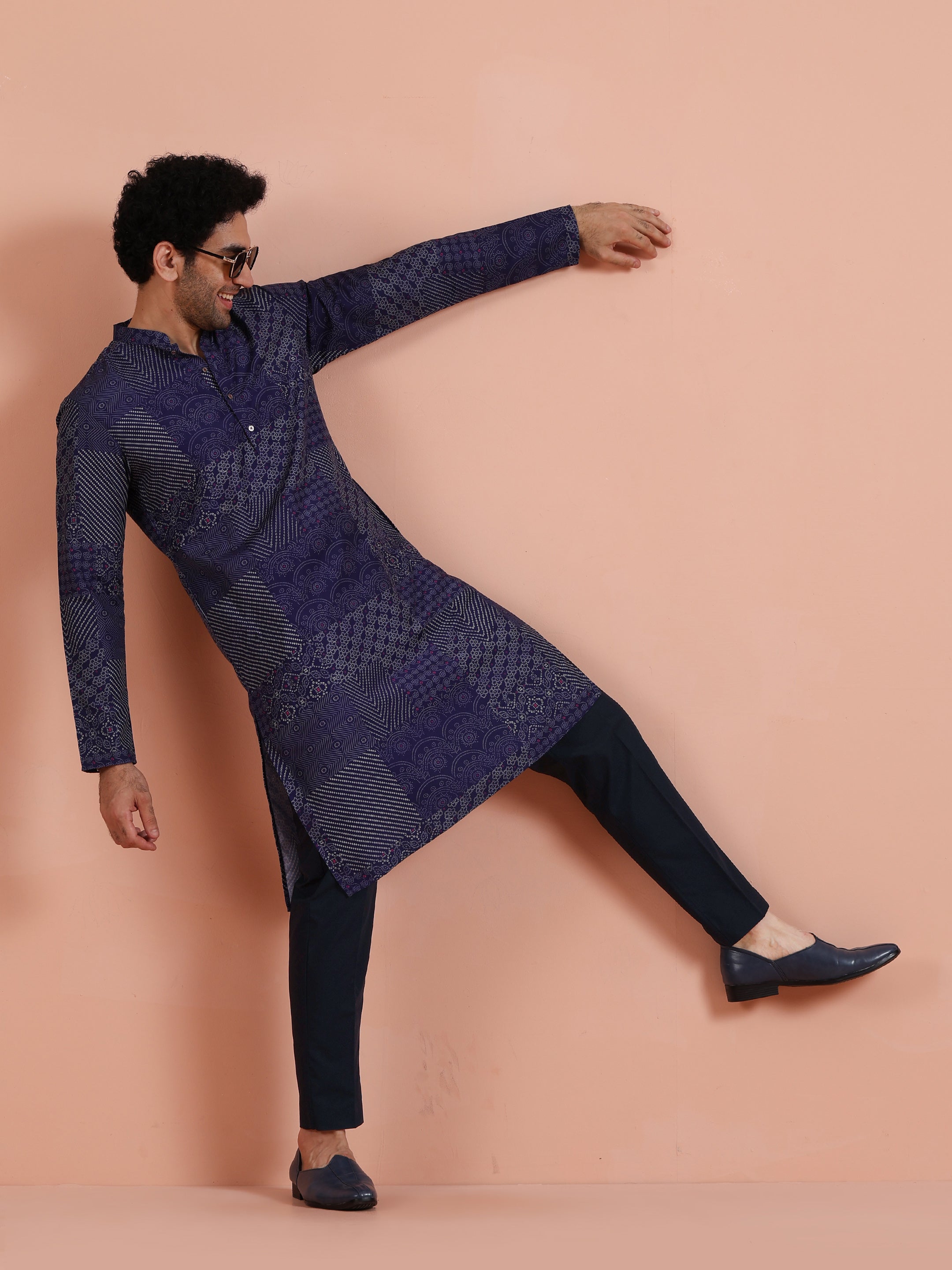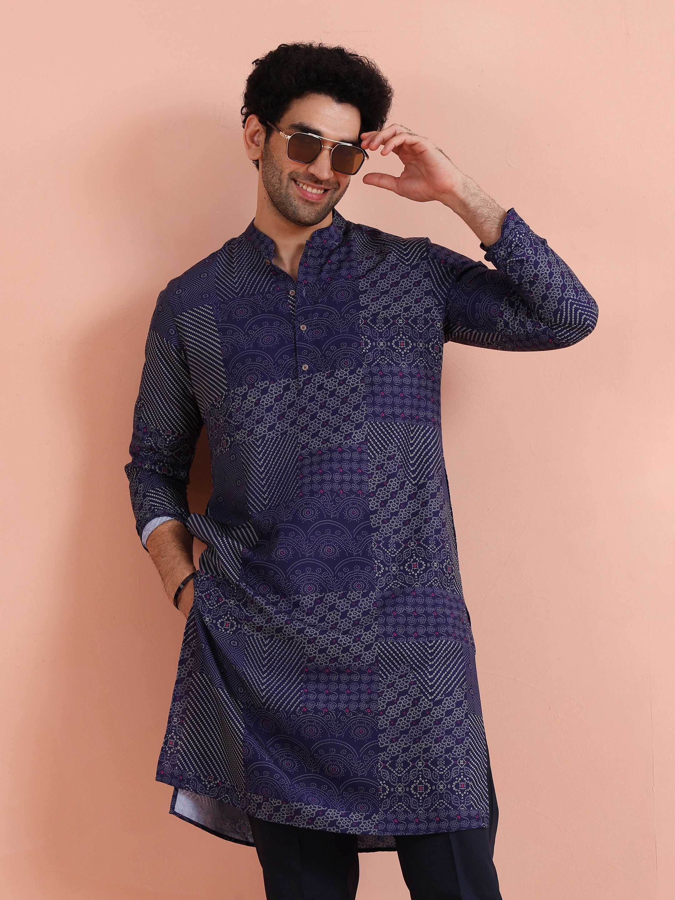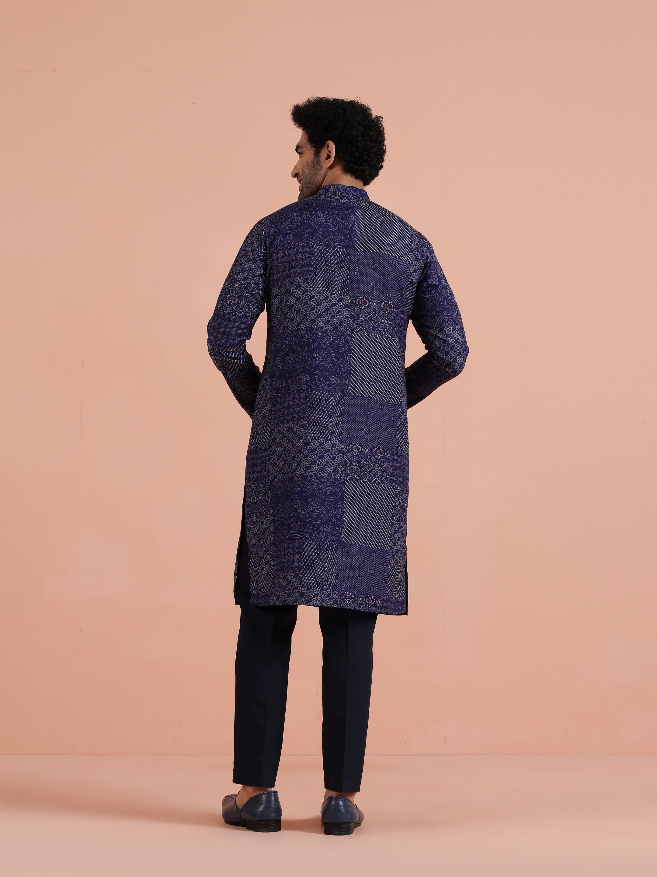 Blue Cotton Blend Printed Kurta, Perfect festive ethnic wear for men, ideal festive and casual occasions.