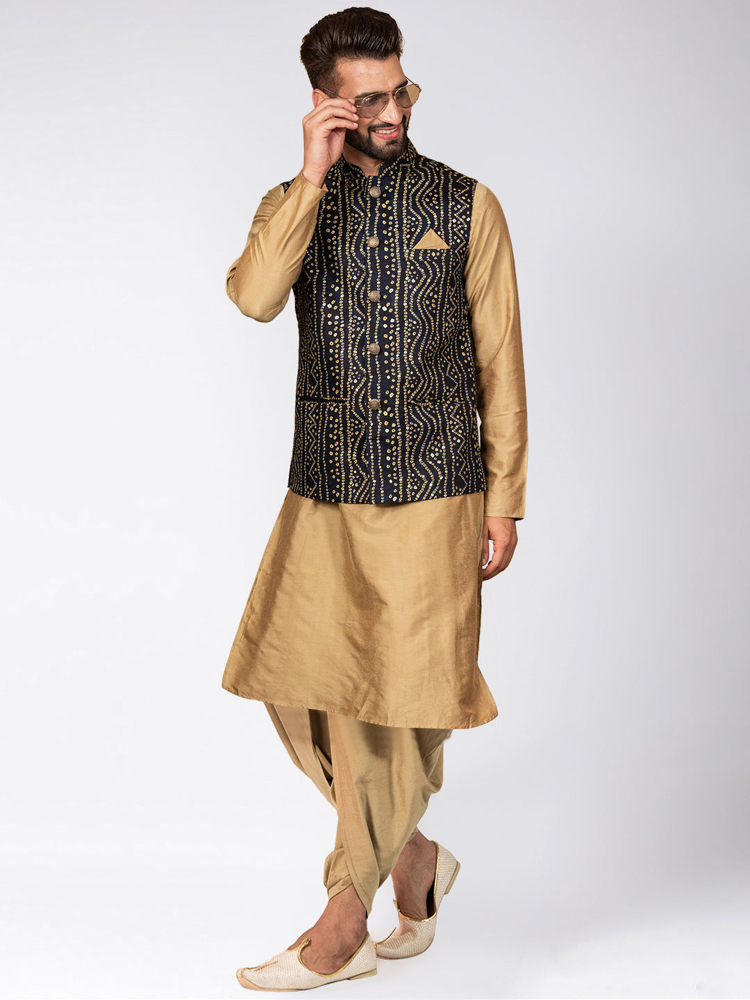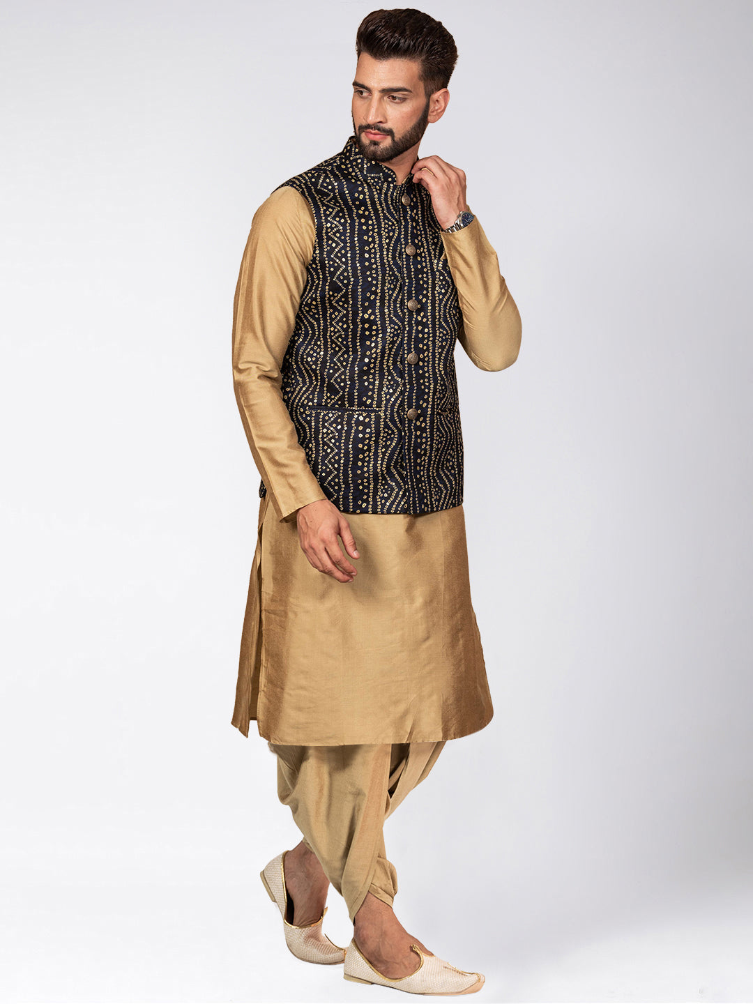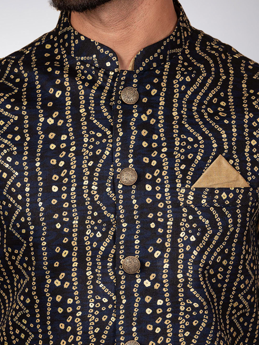 Stay stylish and warm with this men's Kurta Jacket Set. This classic design is made from Blended Fabric fabric and comes in Navy Blue colours. Perfect for any occasion.