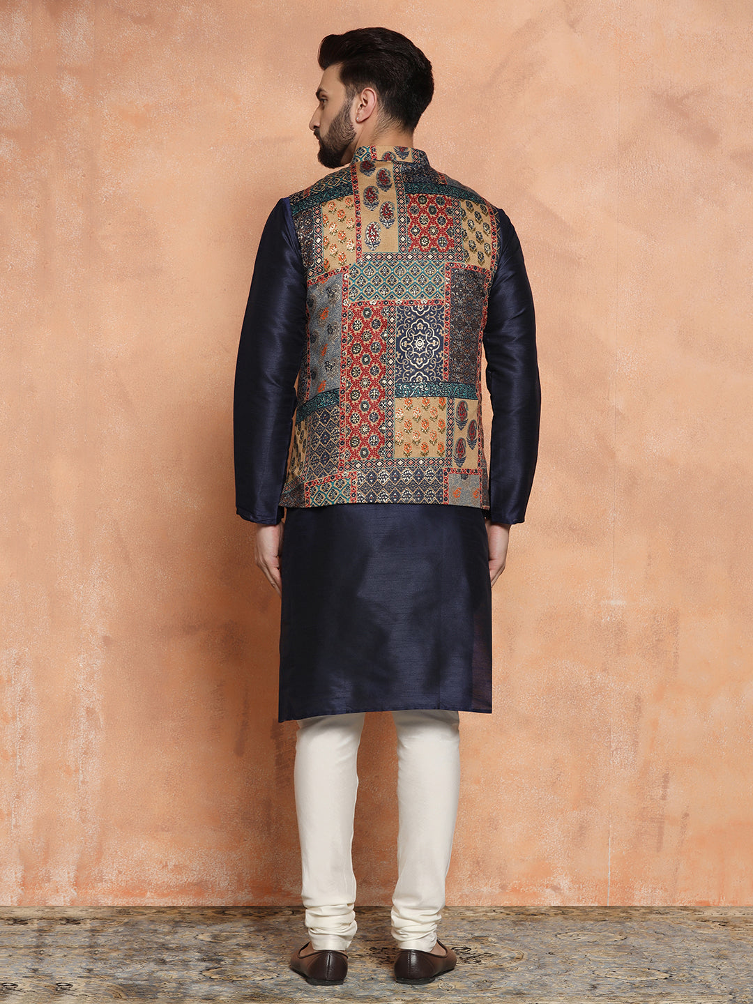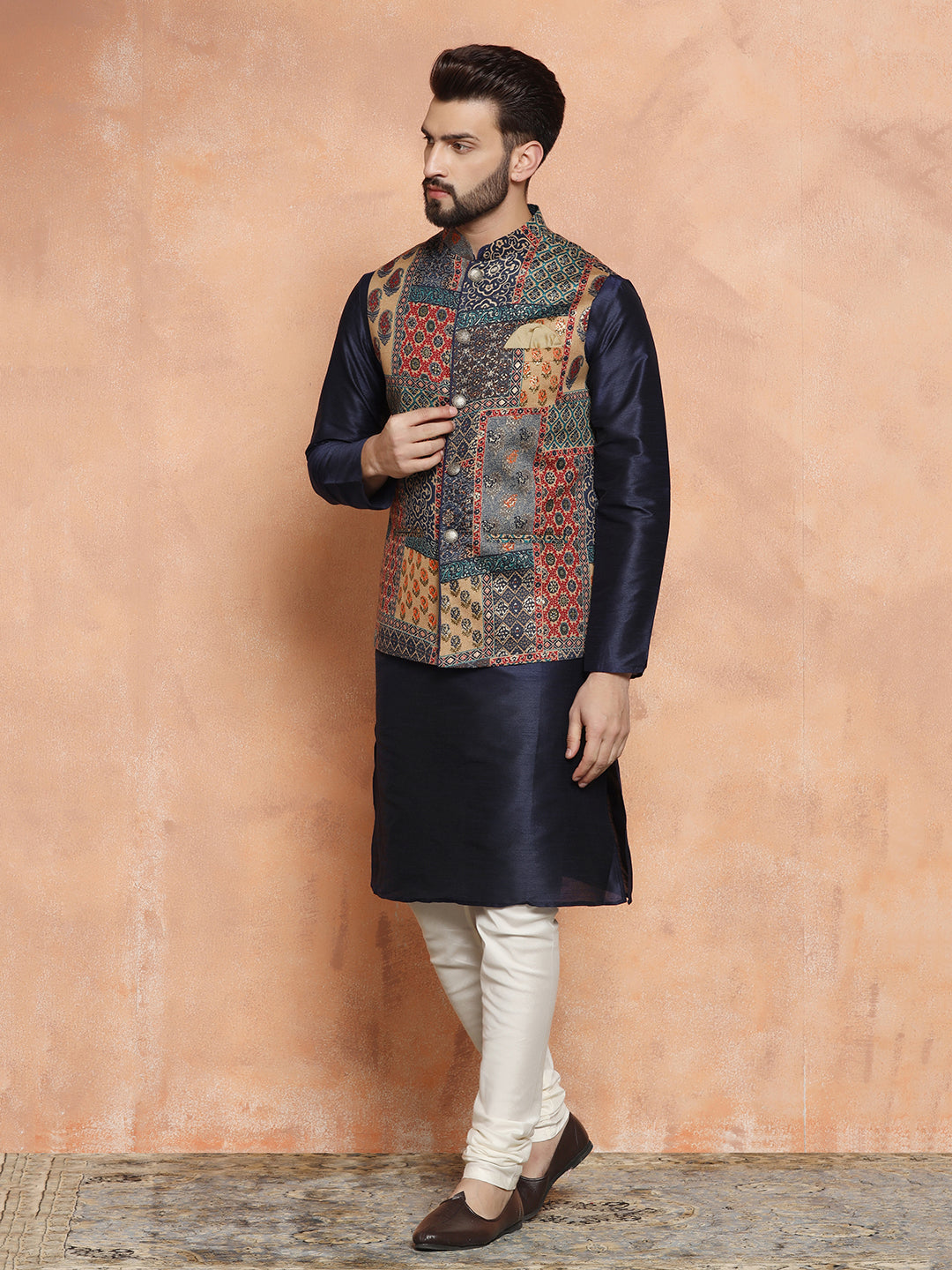 Multicolor Printed Nehru Jacket Kurta Churidar