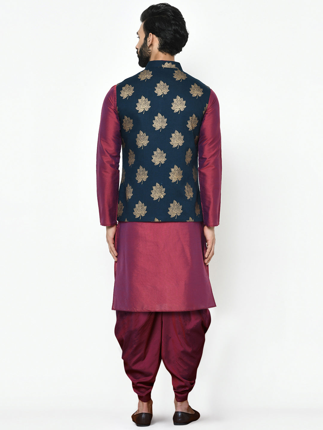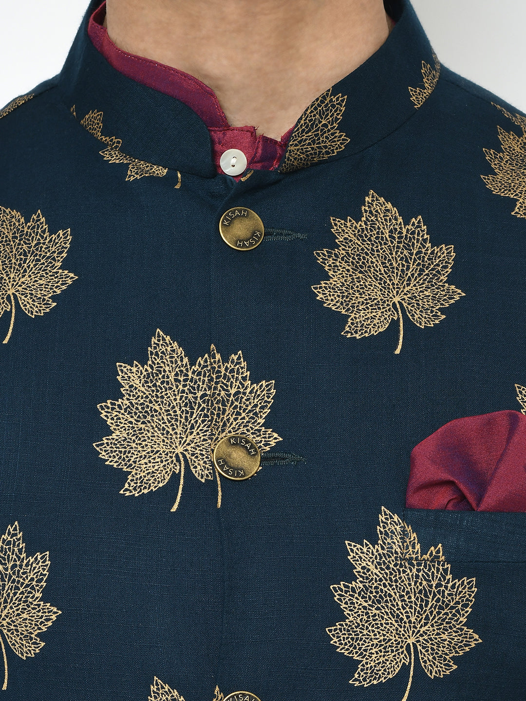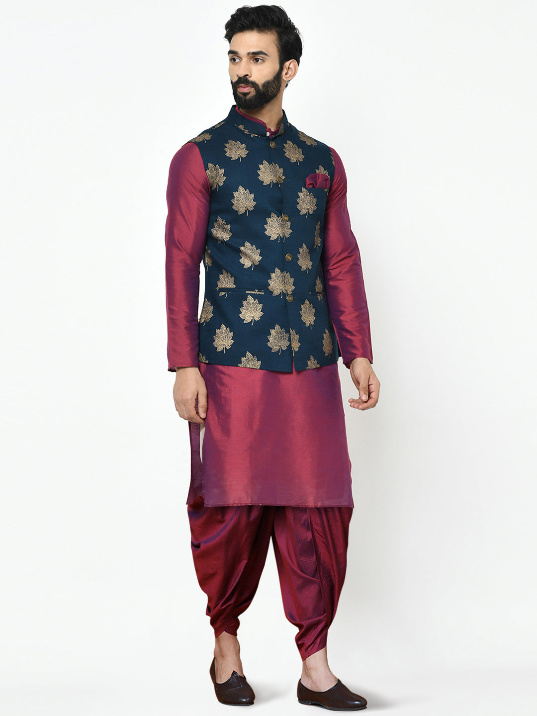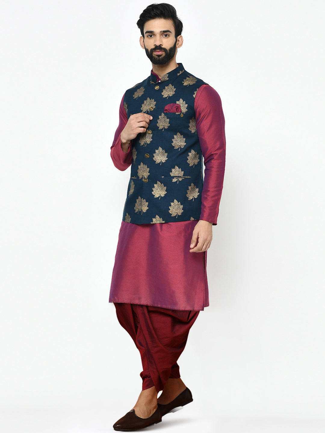 Stay stylish and warm with this men's Kurta Jacket Set. This classic design is made from Blended Fabric fabric and comes in Navy Blue colours. Perfect for any occasion.