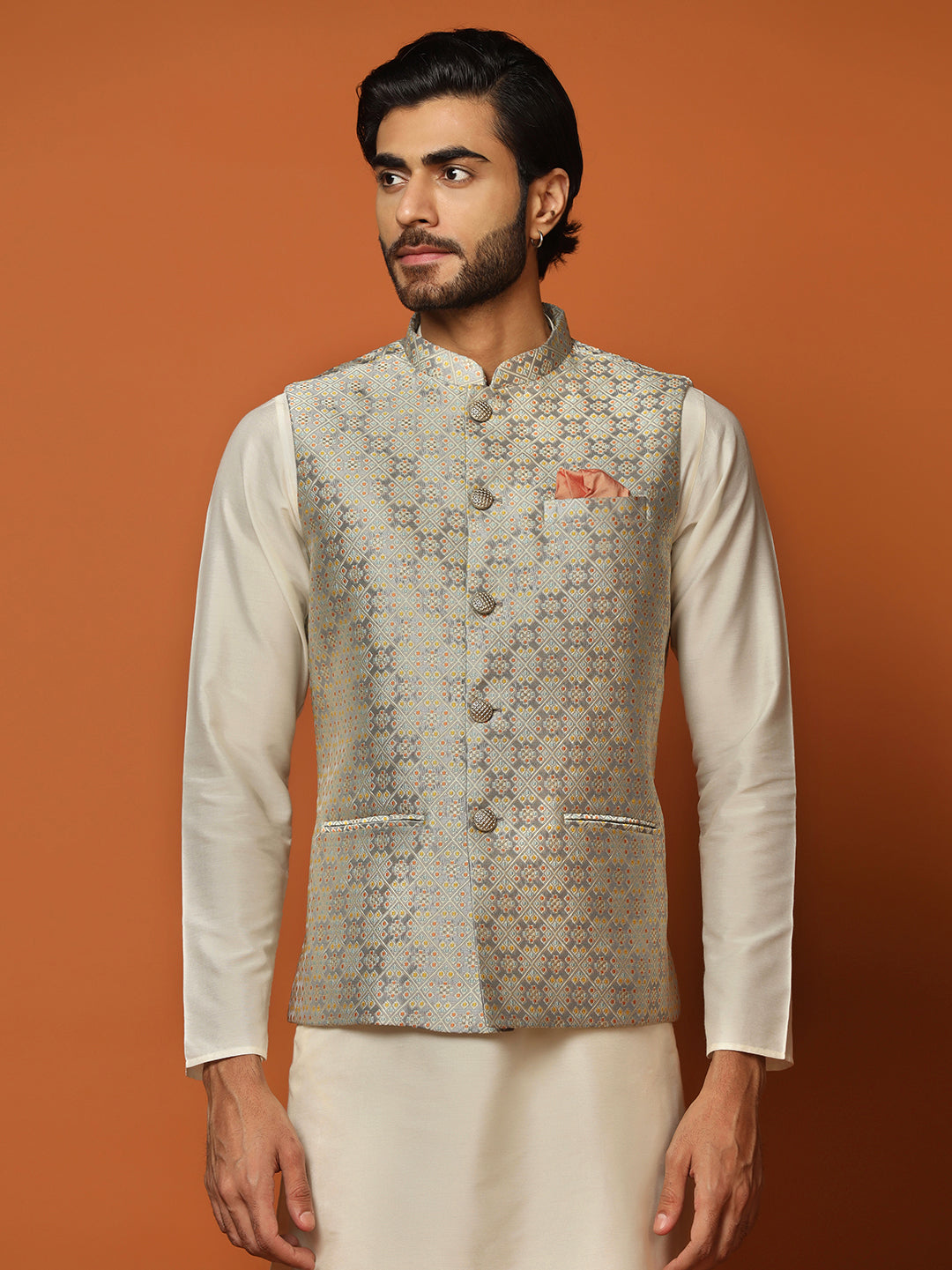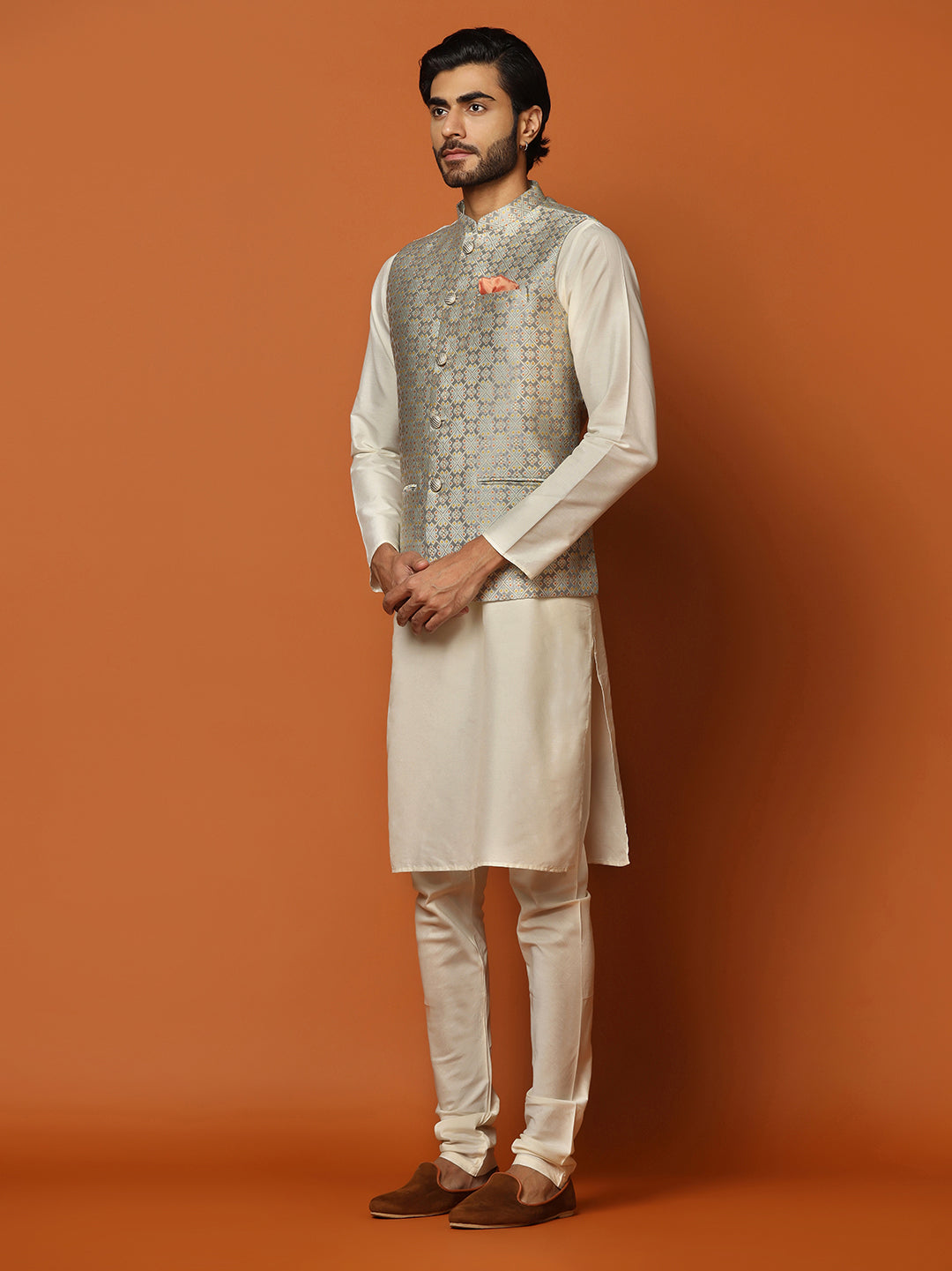 Experience classic elegance with this Set. The breathable Cotton Blend fabric with Woven Design Patternn ensures comfort throughout the day. Ideal for festive events or casual wear.