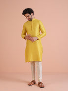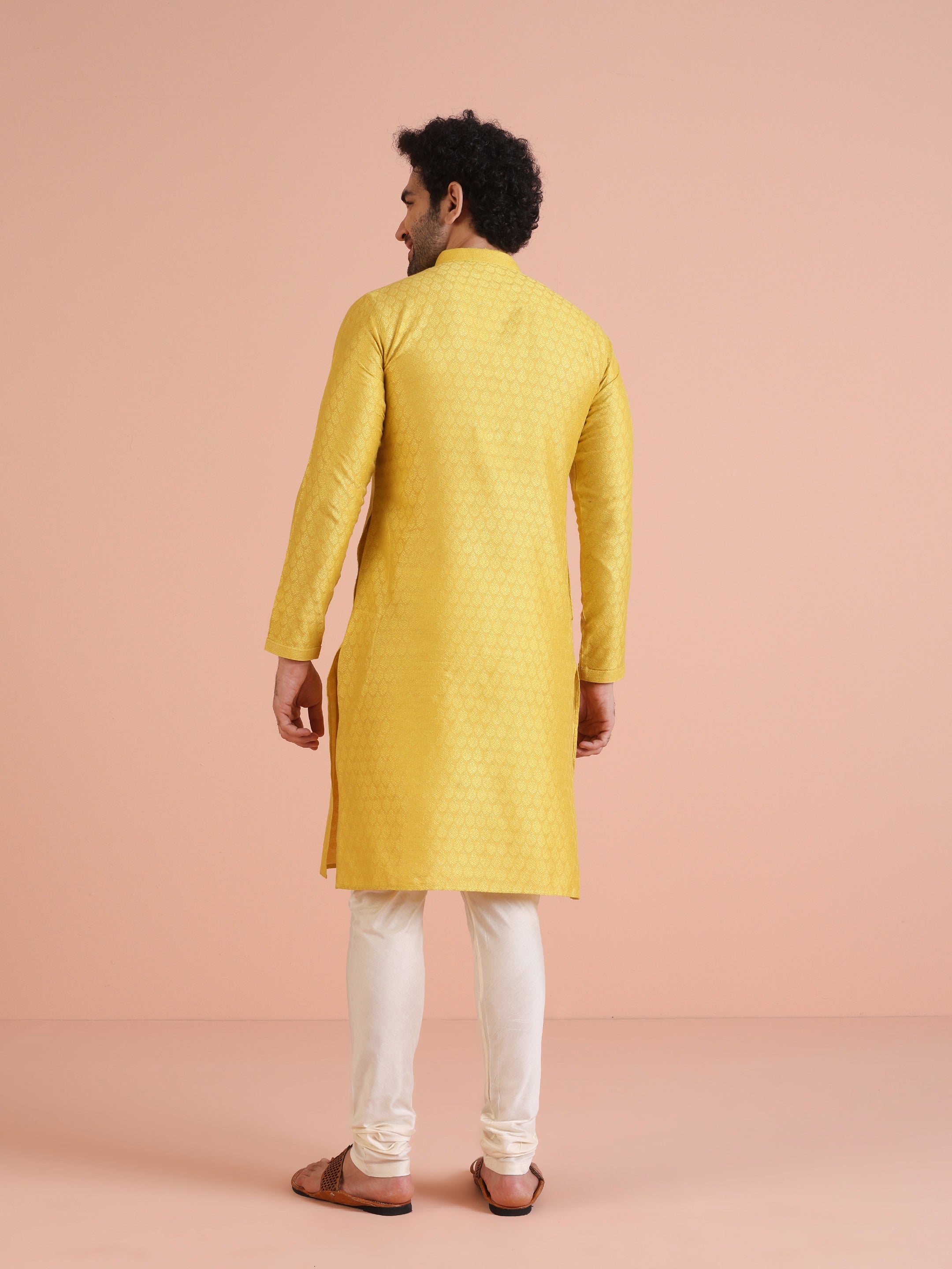 Enhance your ethnic wardrobe with our Yellow Kurta. Made from a cotton blend with woven jacquard detailing, this regular-fit kurta is perfect for adding a touch of elegance to any occasion.