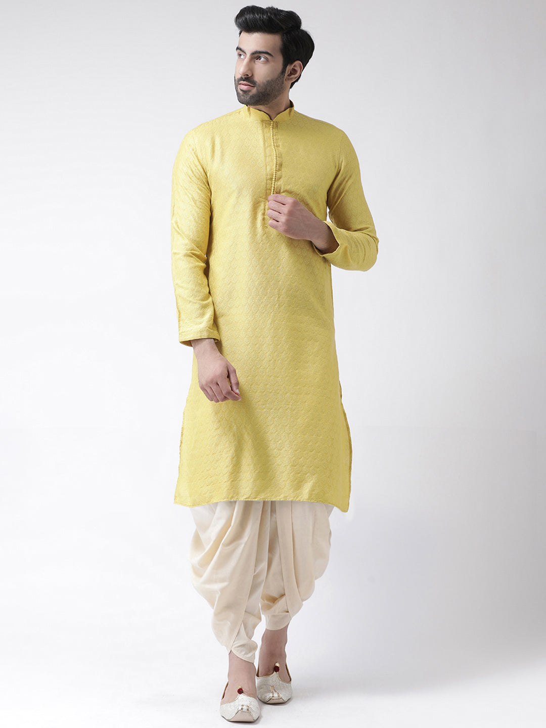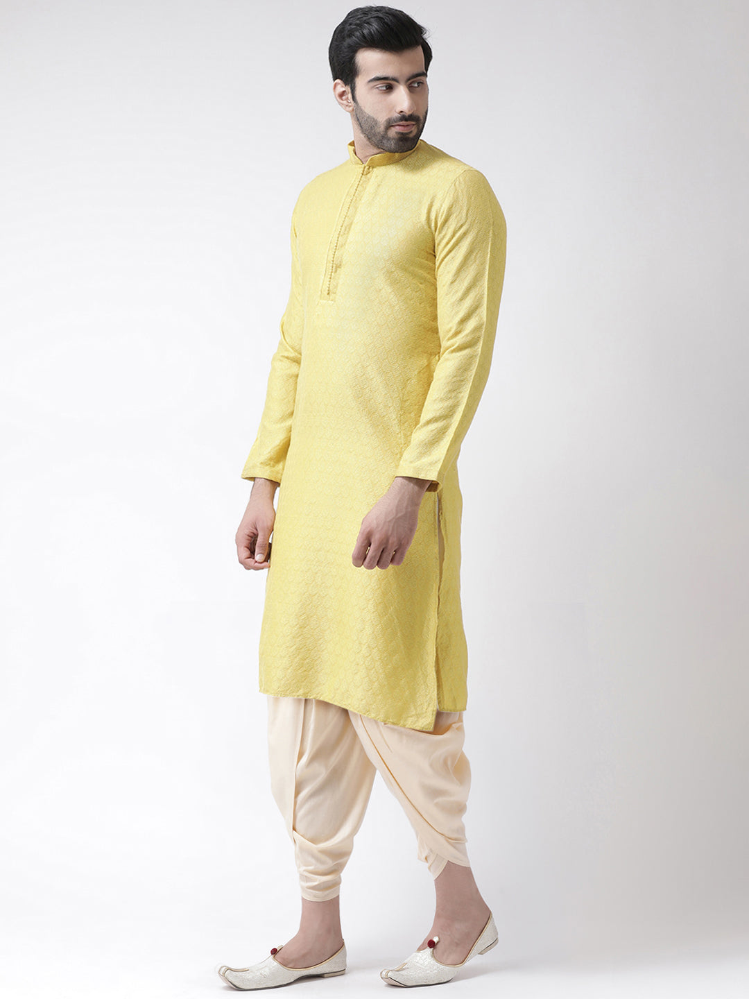The Kisah kurta Sets is ideal for men looking for stylish yet comfortable attire. Crafted from Cotton Blend fabric, Yellow color, stylish pattern, and comfortable fit make it perfect for festive wear.