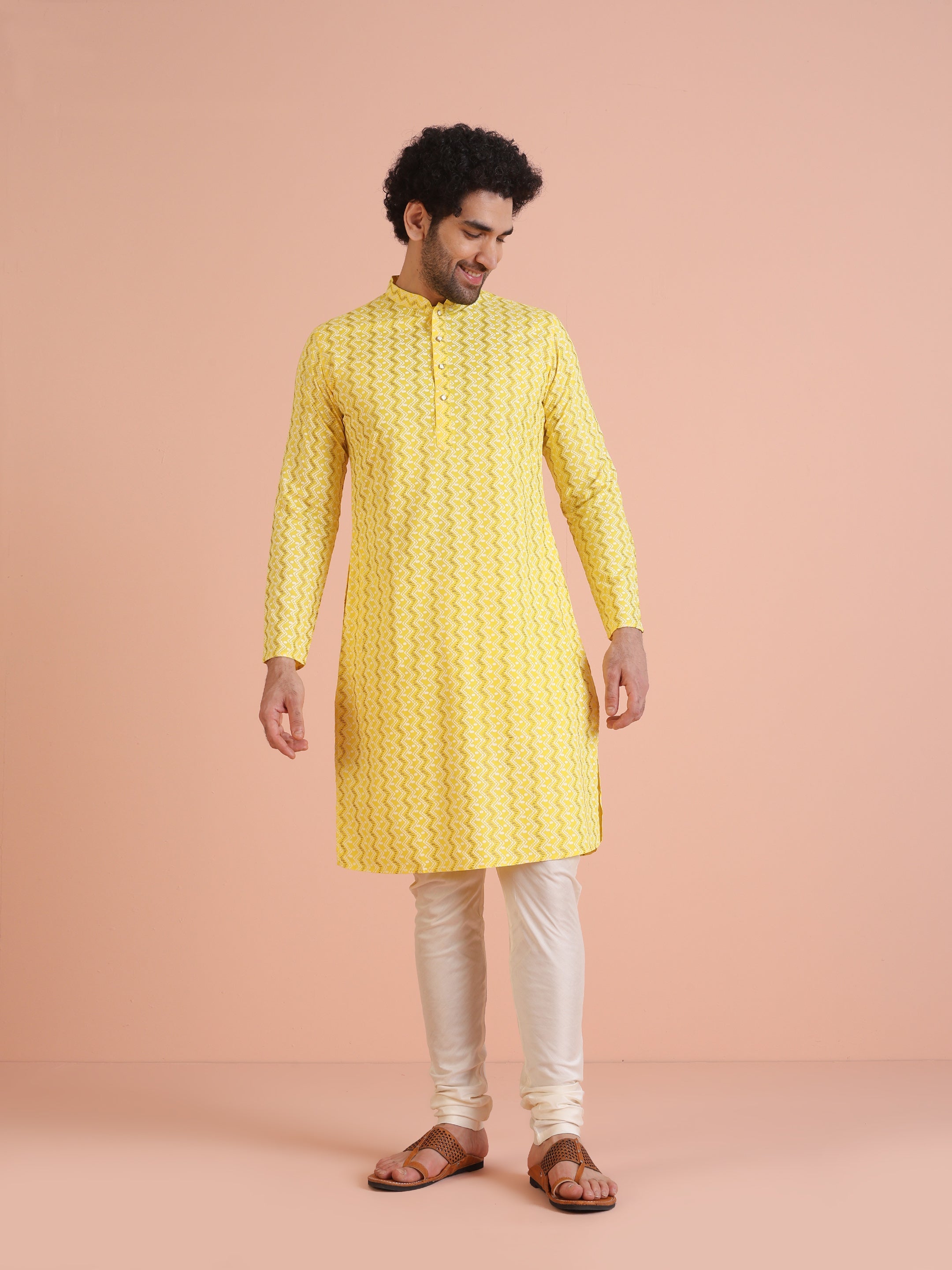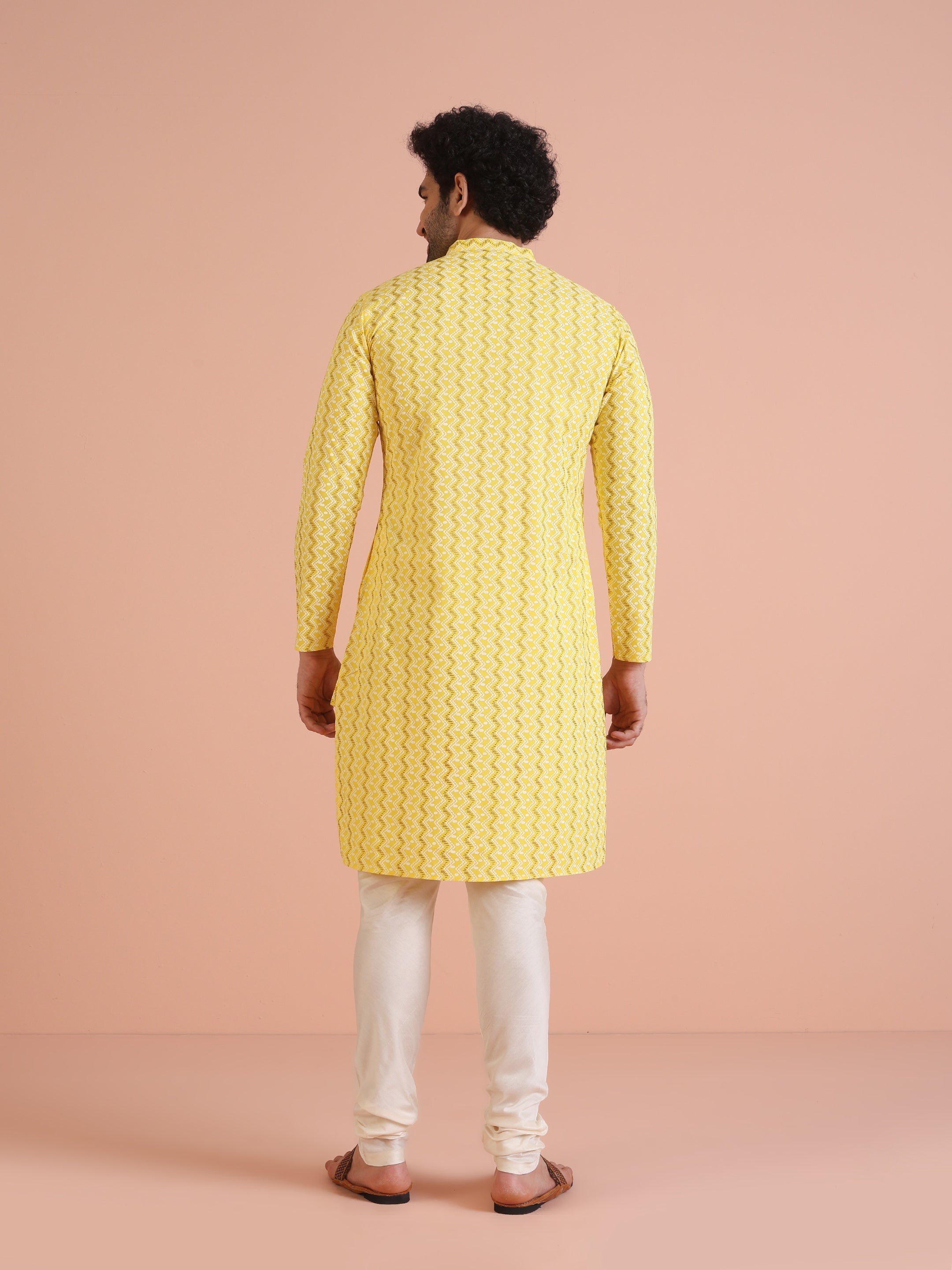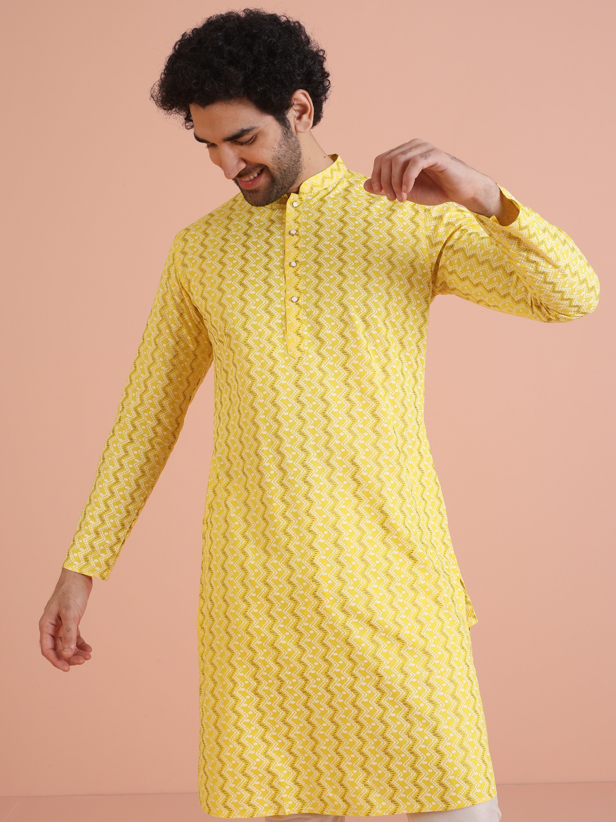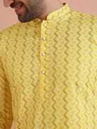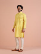 The Kisah kurta Sets is ideal for men looking for stylish yet comfortable attire. Crafted from Cotton Blend fabric, Yellow color, stylish pattern, and comfortable fit make it perfect for festive wear.