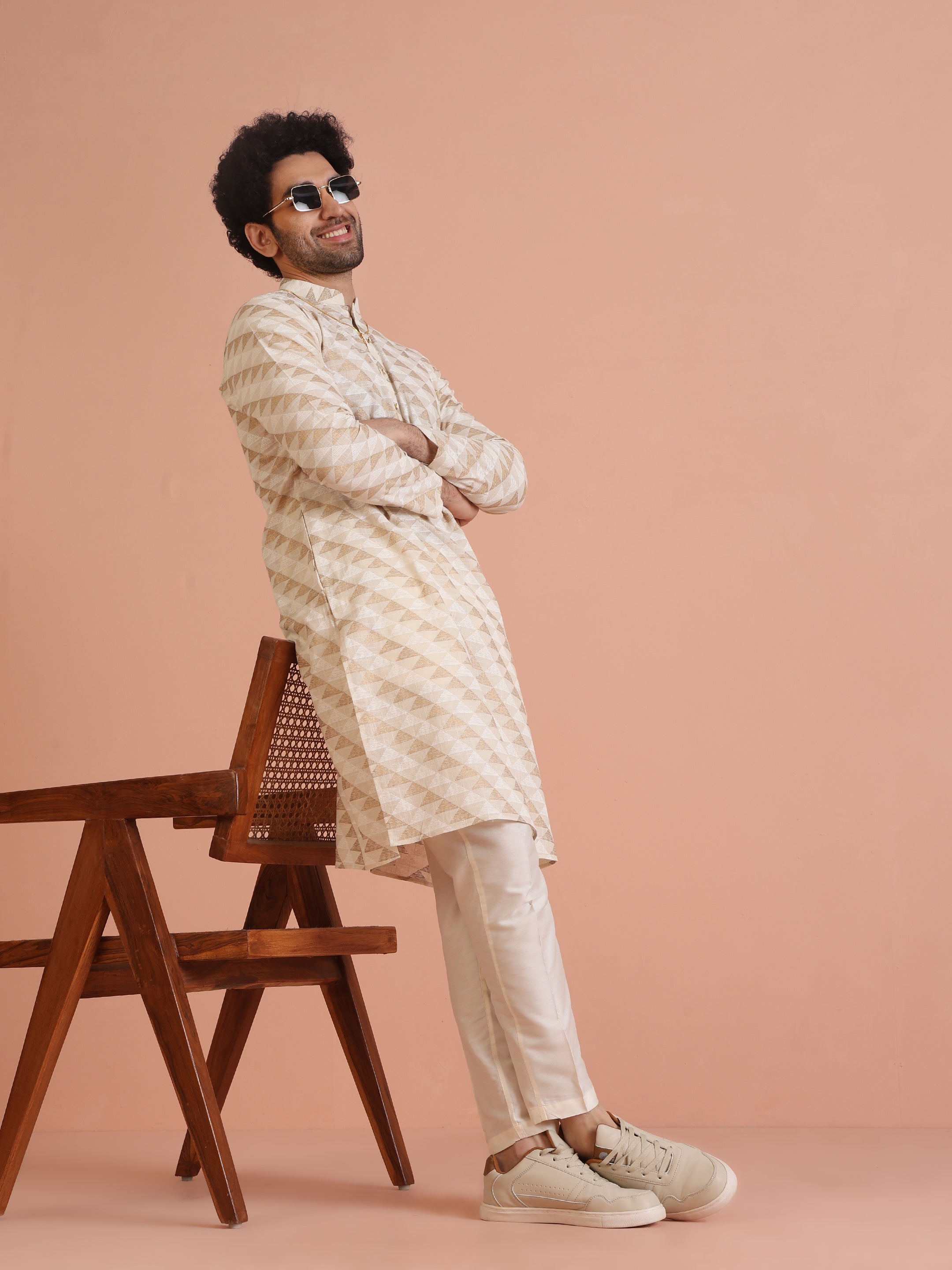 Keep it classic with our Cream Printed Kurta. Made from a cotton blend and featuring a regular fit, this kurta is ideal for casual or festive occasions, offering comfort with a stylish print.
