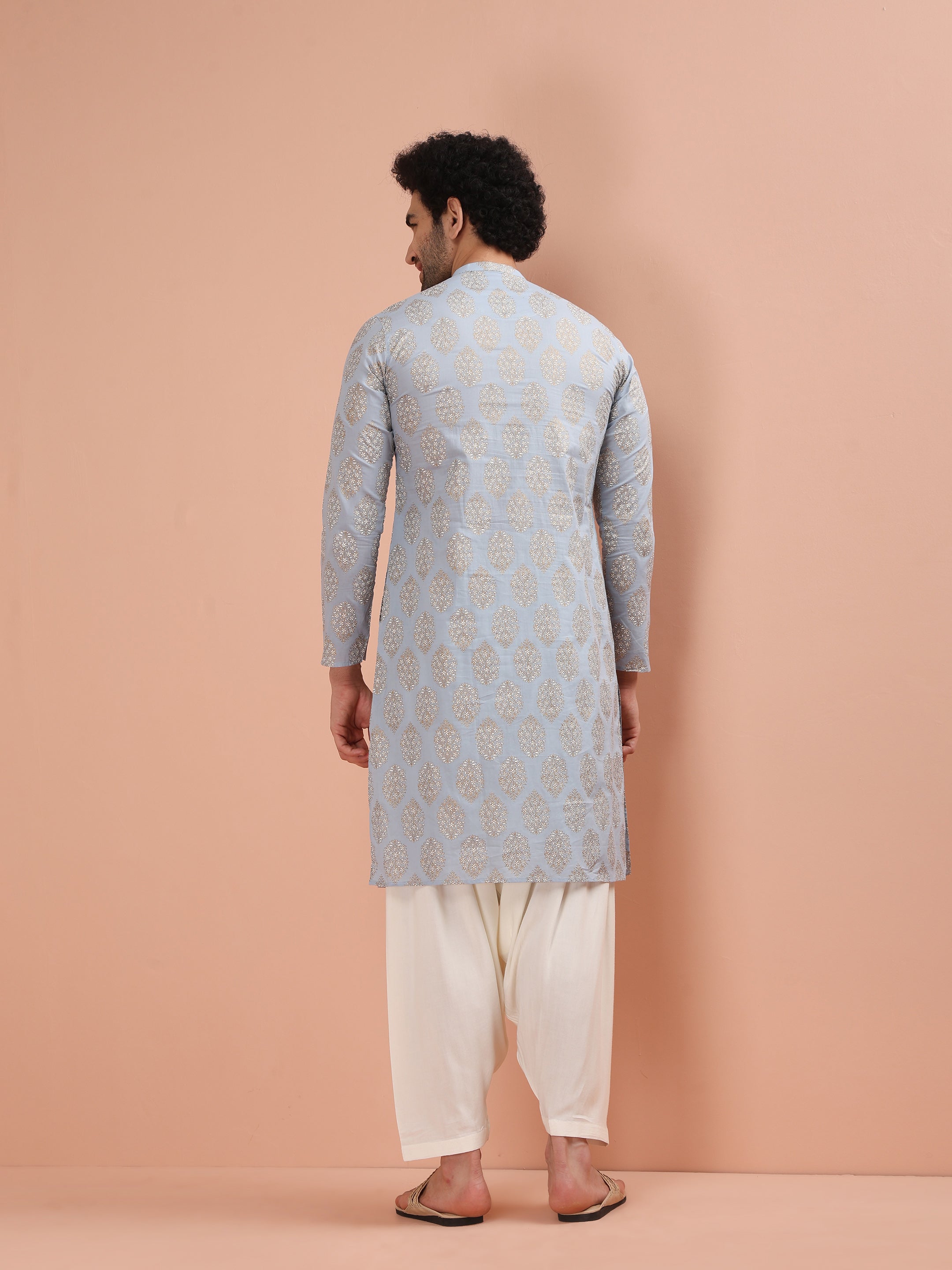 Stand out with our Blue Printed Kurta. Made from a cotton blend, this regular-fit kurta is perfect for adding a stylish, modern touch to your ethnic wardrobe.