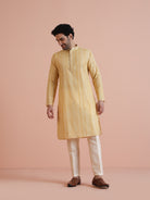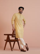 Make a bold statement with this Yellow Cotton Blend Kurta. The printed design adds a playful element, while the regular fit guarantees comfort throughout the day. Ideal for festive occasions or casual outings, this kurta is a vibrant addition to your wardrobe.