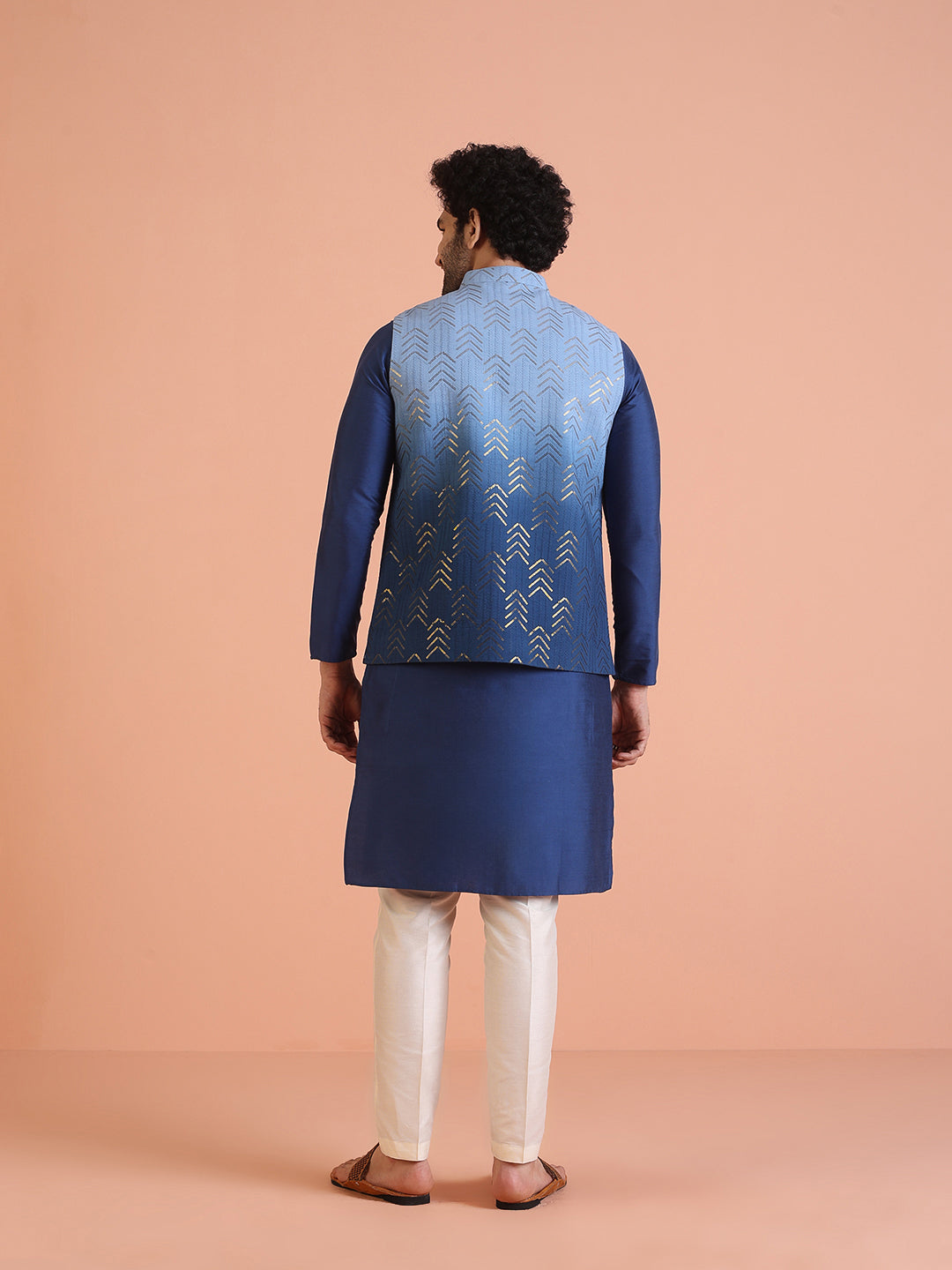 Blue Ombre Sequinned Nehru Jacket Set