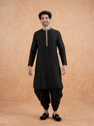 Add a touch of sophistication to your ethnic wardrobe with this Black Cotton Blend Kurta. The solid design and regular fit make it a versatile piece for various occasions. Whether for casual outings or special events, this kurta is a timeless addition to your collection.