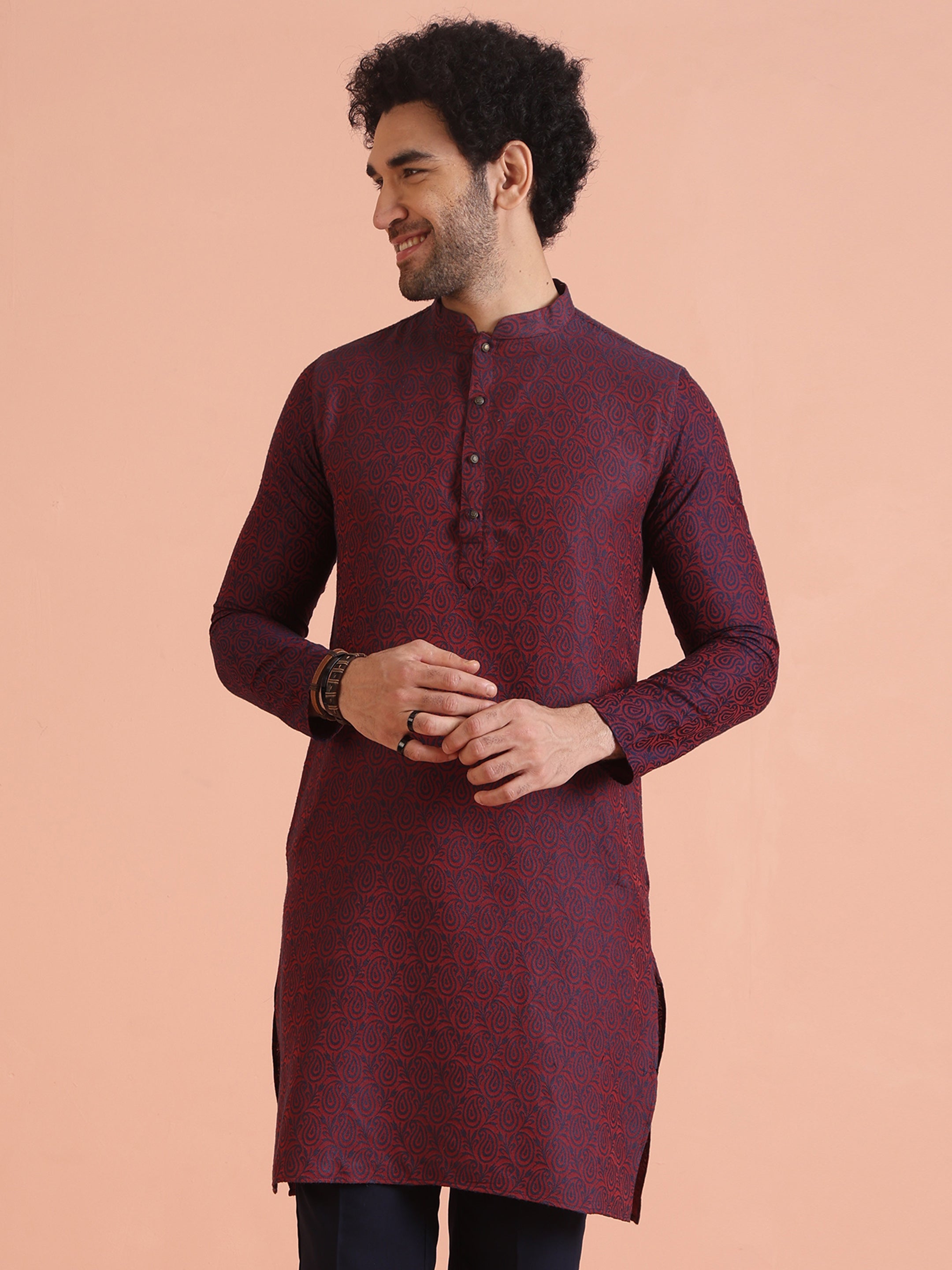 Stay effortlessly stylish in this Cotton Blend Textured Kurta. Featuring a regular fit and intricate textured detailing, this kurta is a perfect choice for casual outings or festive occasions. A versatile addition to your ethnic wardrobe, it offers both comfort and style.