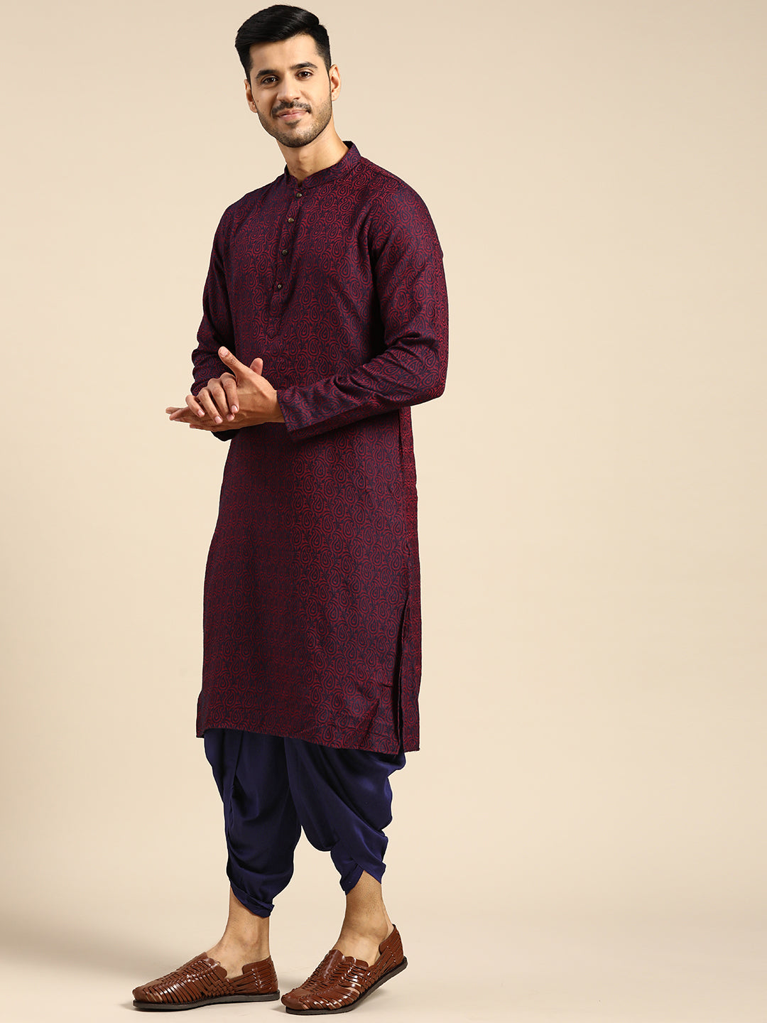 Men Purple Ethnic Motifs Kurta Dhoti Pant Set