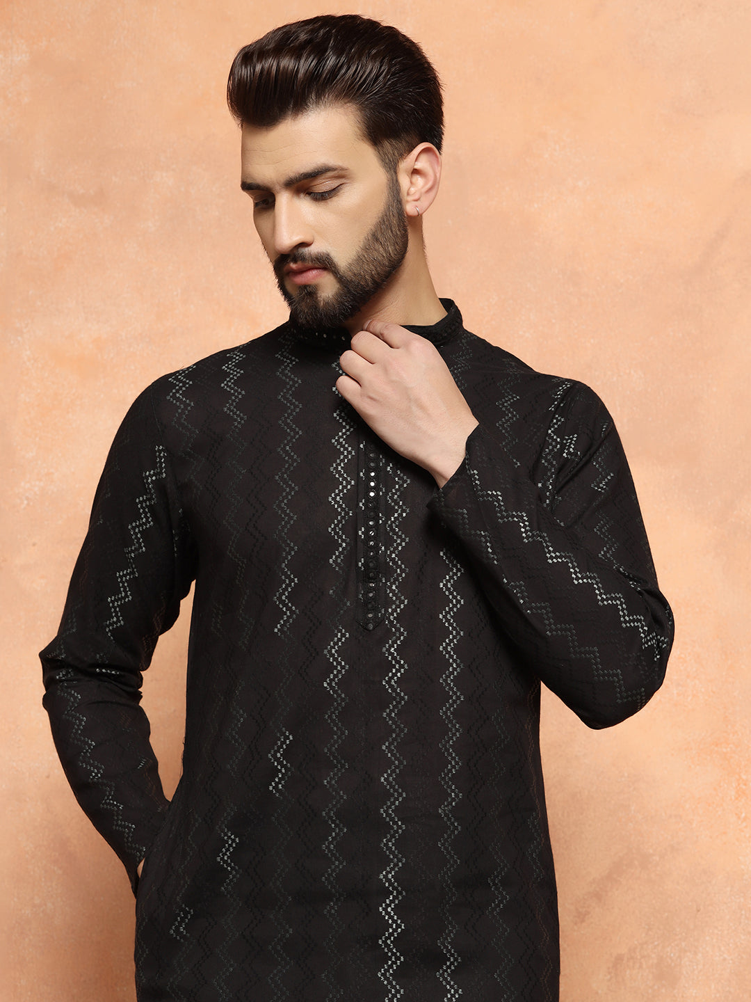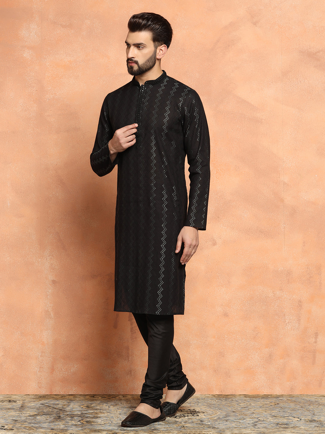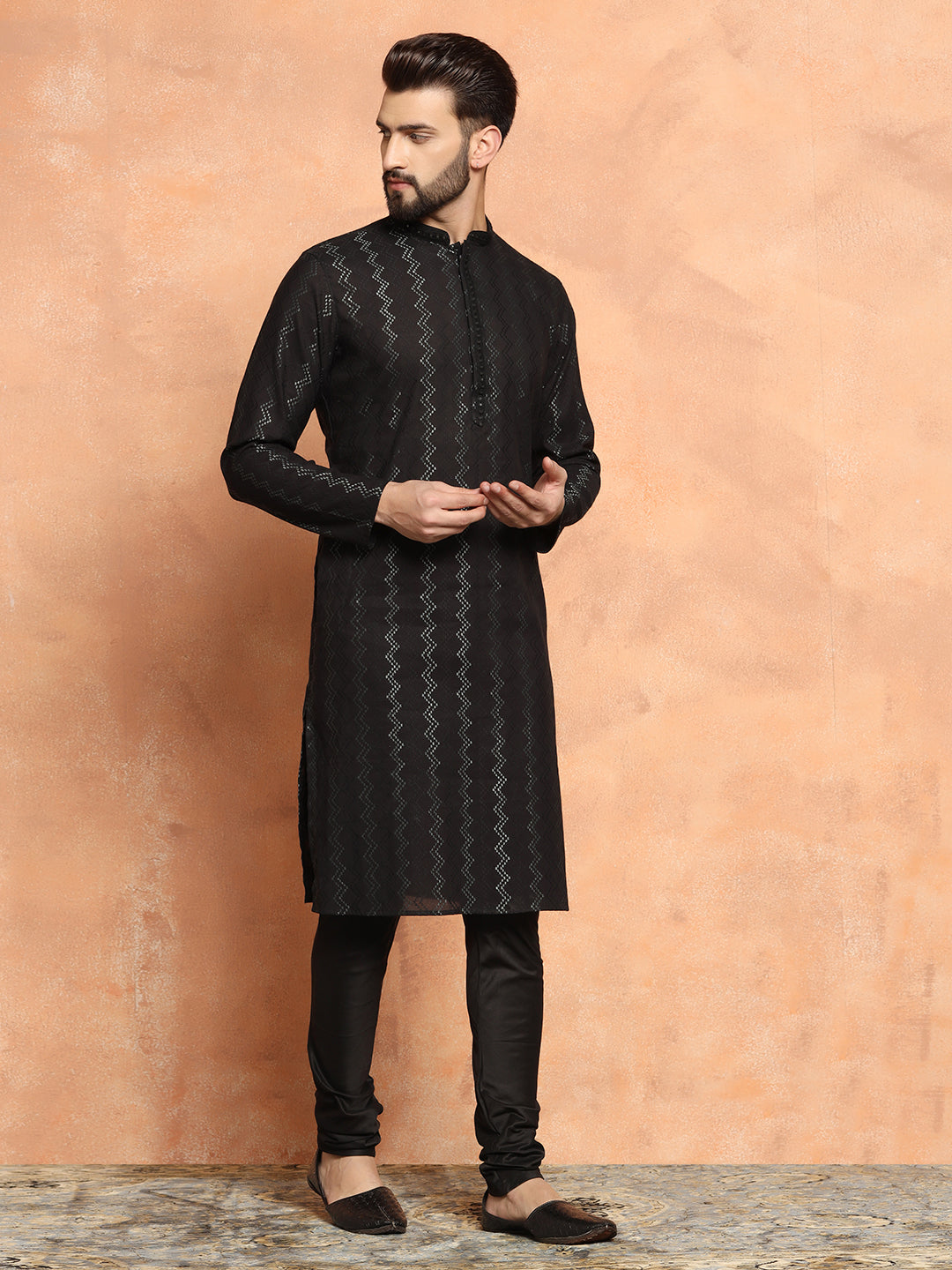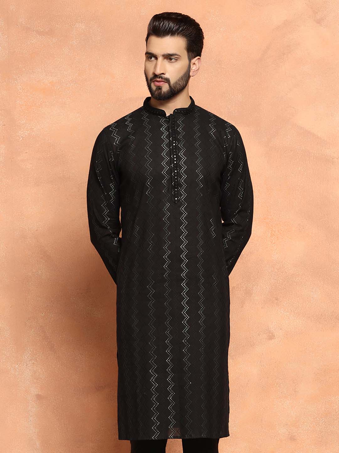 This kurta will be a great addition to your wardrobe for this season. The stylish, long sleeve style and mandarin collar gives an elegant look.