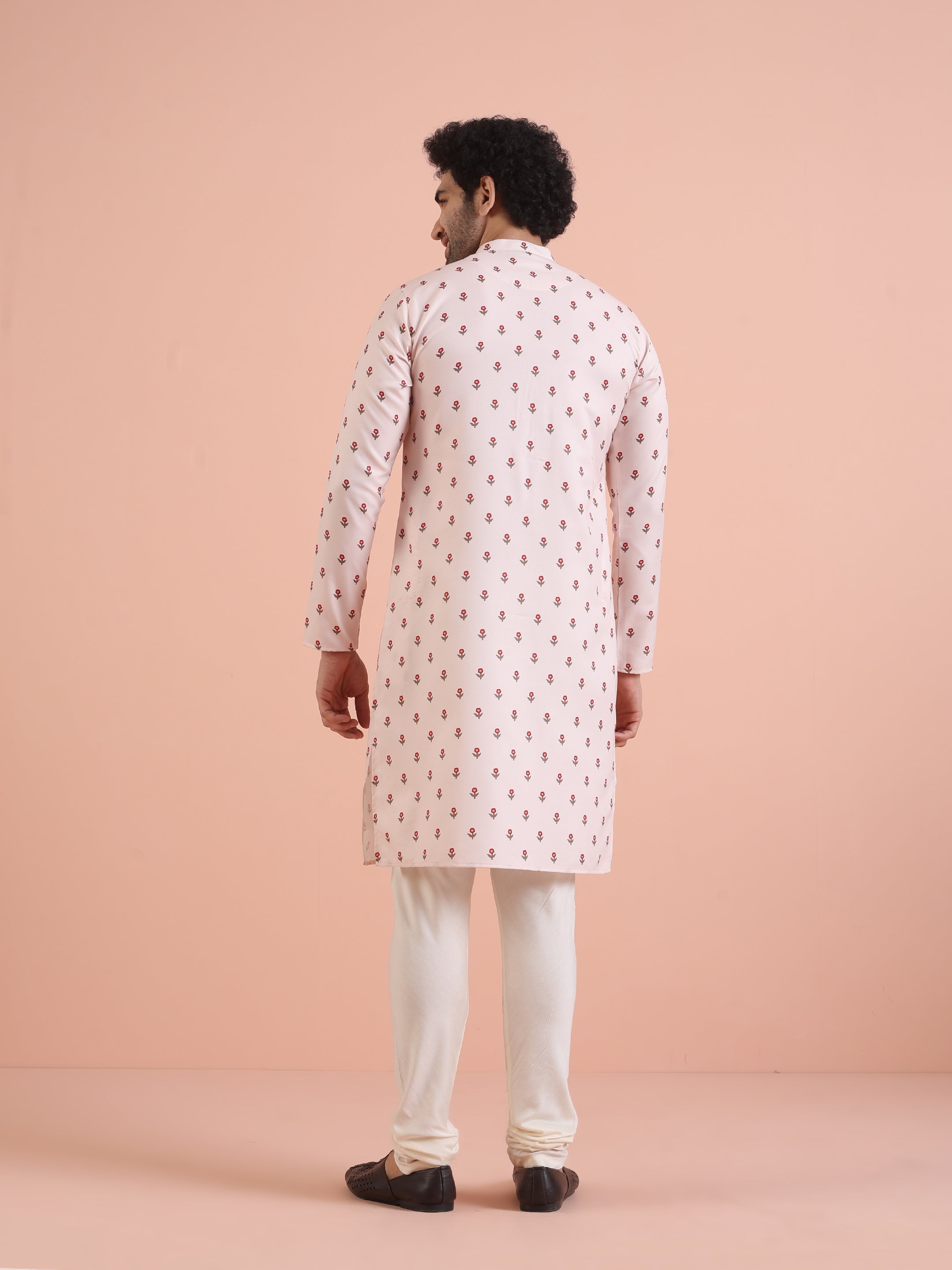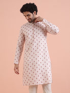 Experience classic elegance with this Men White Printed Floral Kurta. The Printed Pattern adds a refined touch, while the breathable Cotton Blend fabric ensures comfort throughout the day. Ideal for festive events or casual wear, this Kurta is a wardrobe essential..
