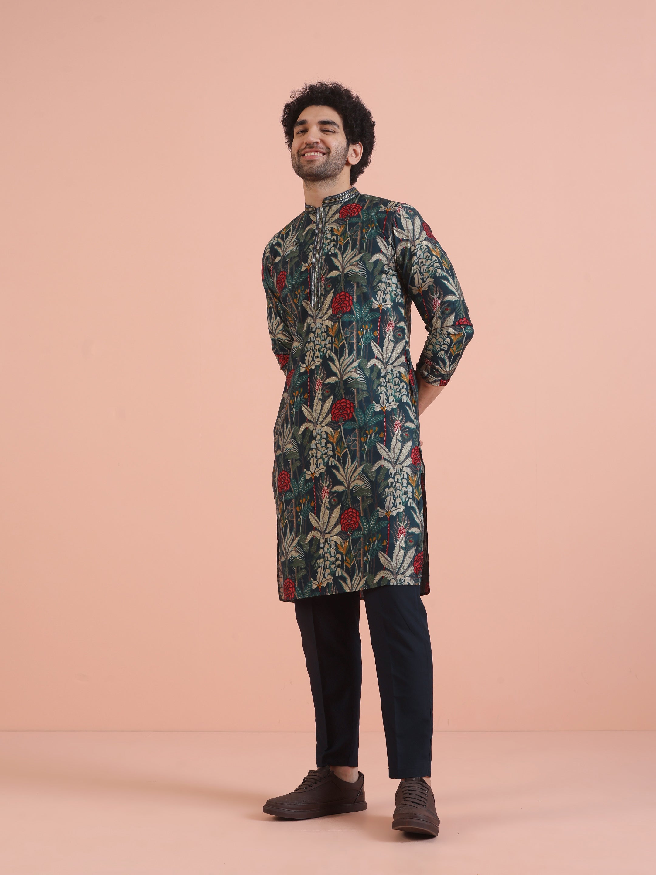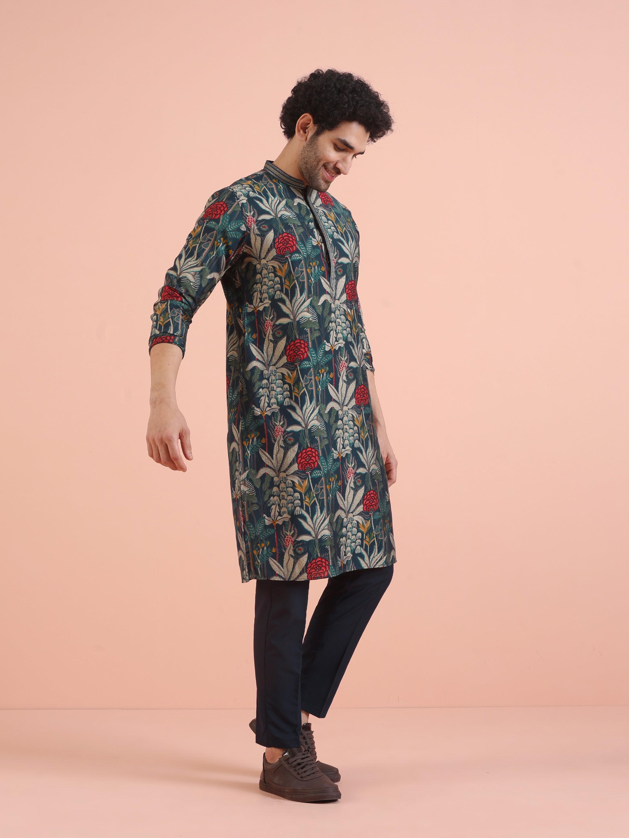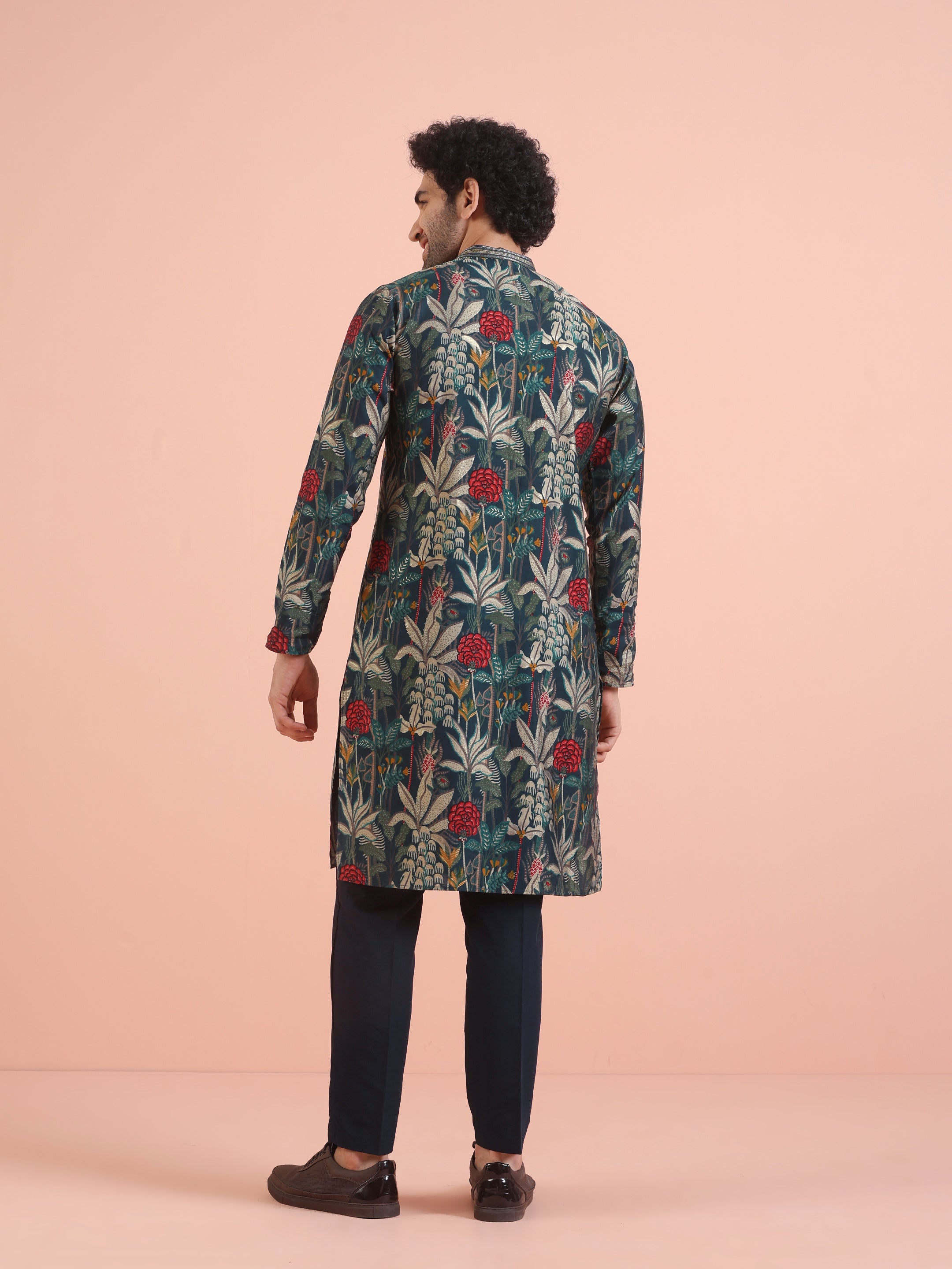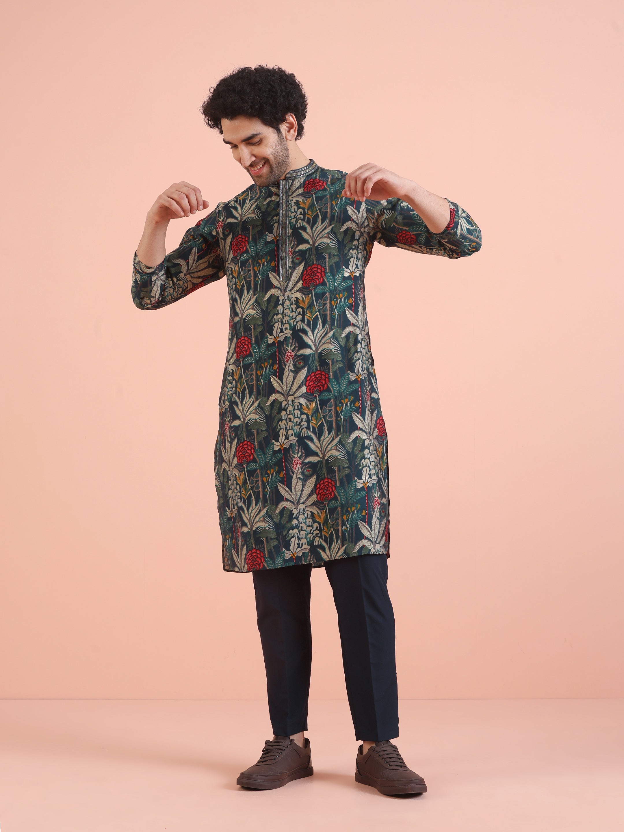 Experience classic elegance with this Men Blue Printed Floral Kurta Trouser Set. The Printed Pattern adds a refined touch, while the breathable Cotton Blend fabric ensures comfort throughout the day. Ideal for festive events or casual wear, this Kurta Trouser Set is a wardrobe essential..