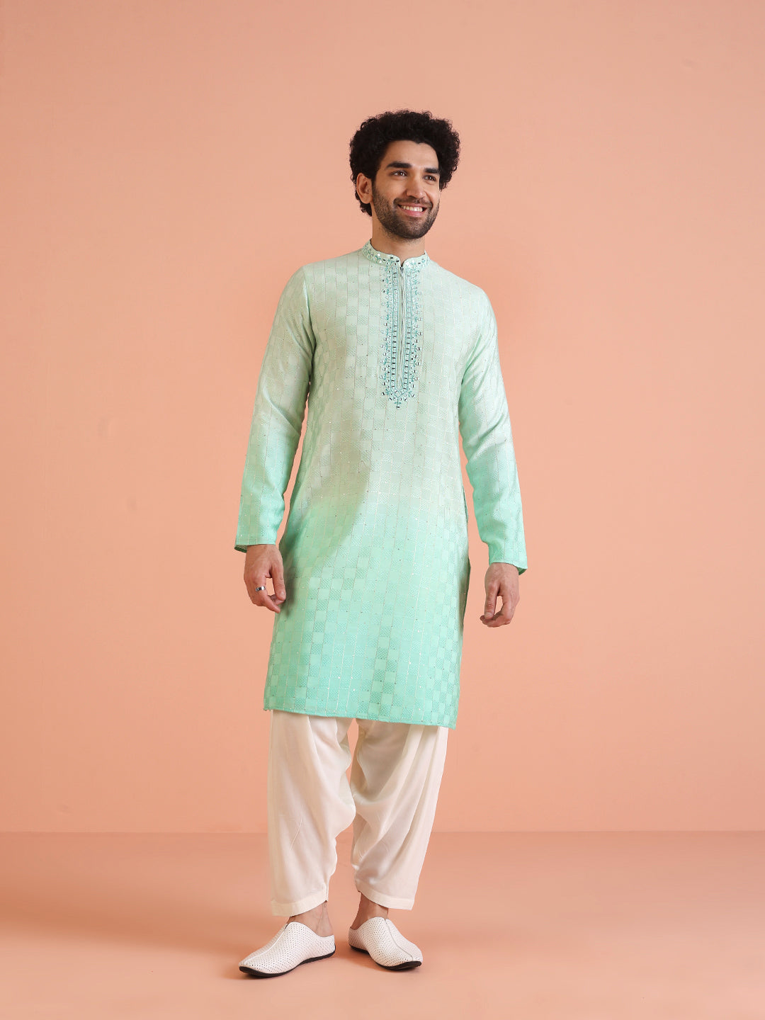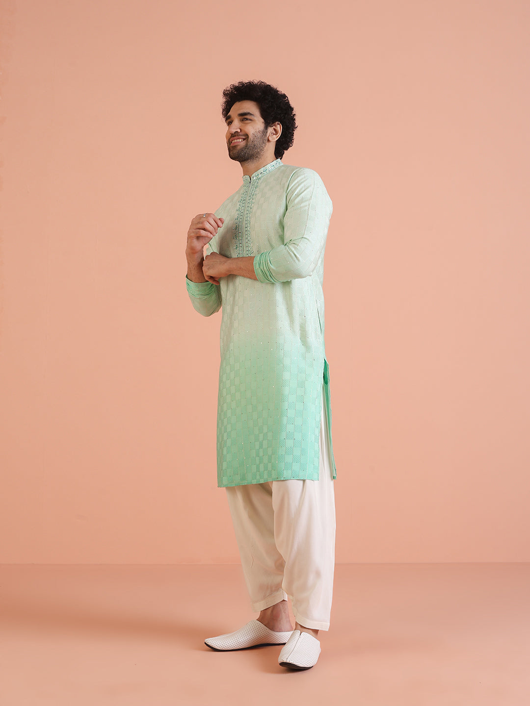 Men Ombre Embellished Mirror Work Kurta Patiyala Set