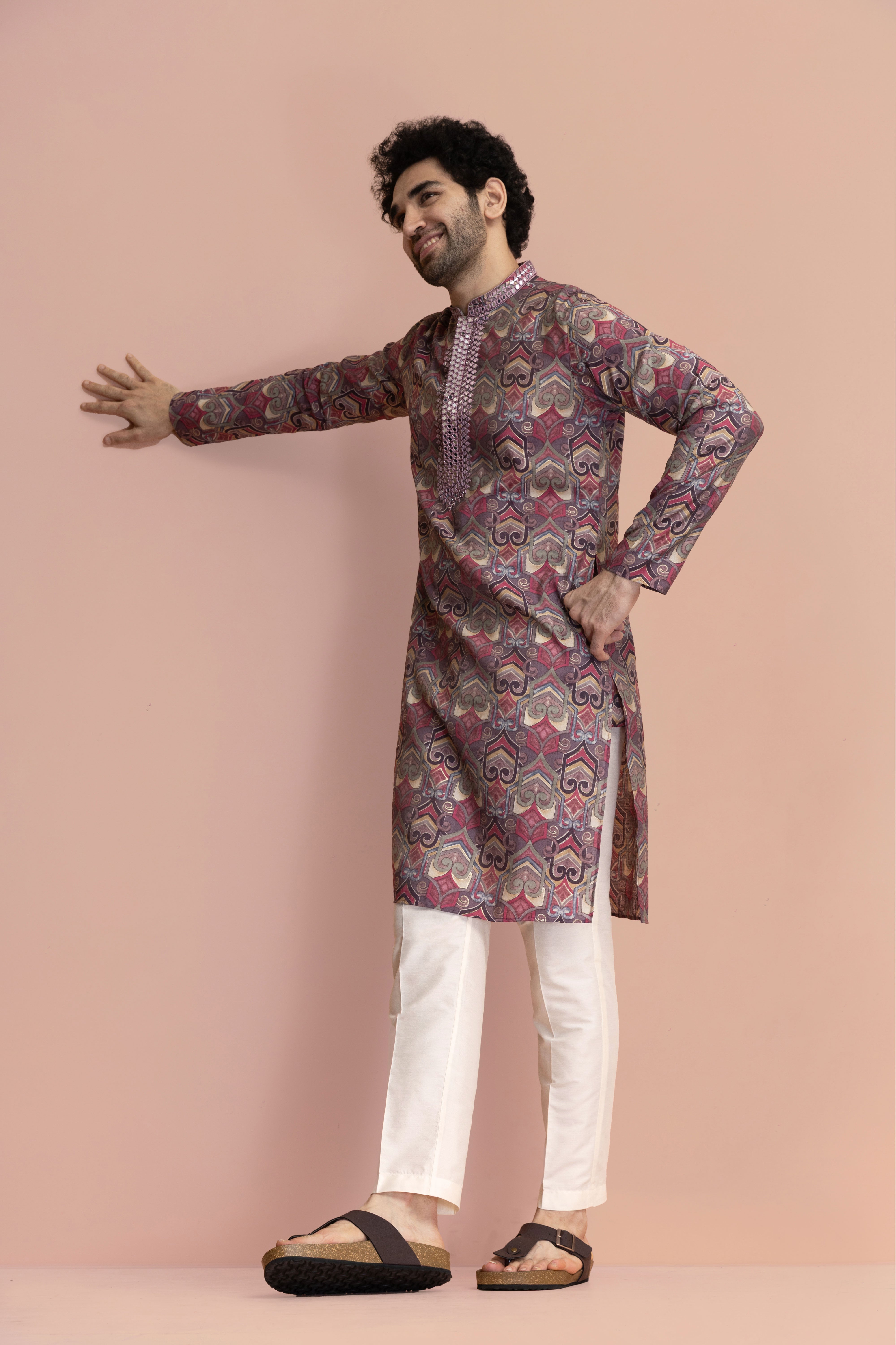 Make an unforgettable moment with this Mauve Abstract Kurta Trouser Set, designed to bring elegance and charm to every celebration. The rich Cotton Blend fabric adds Printed and depth, while the expertly tailored fit ensures a sharp, comfortable look. Whether it’s a wedding, festive gathering, or cultural event, this ensemble blends tradition with a modern edge, refined yet effortlessly stylish.