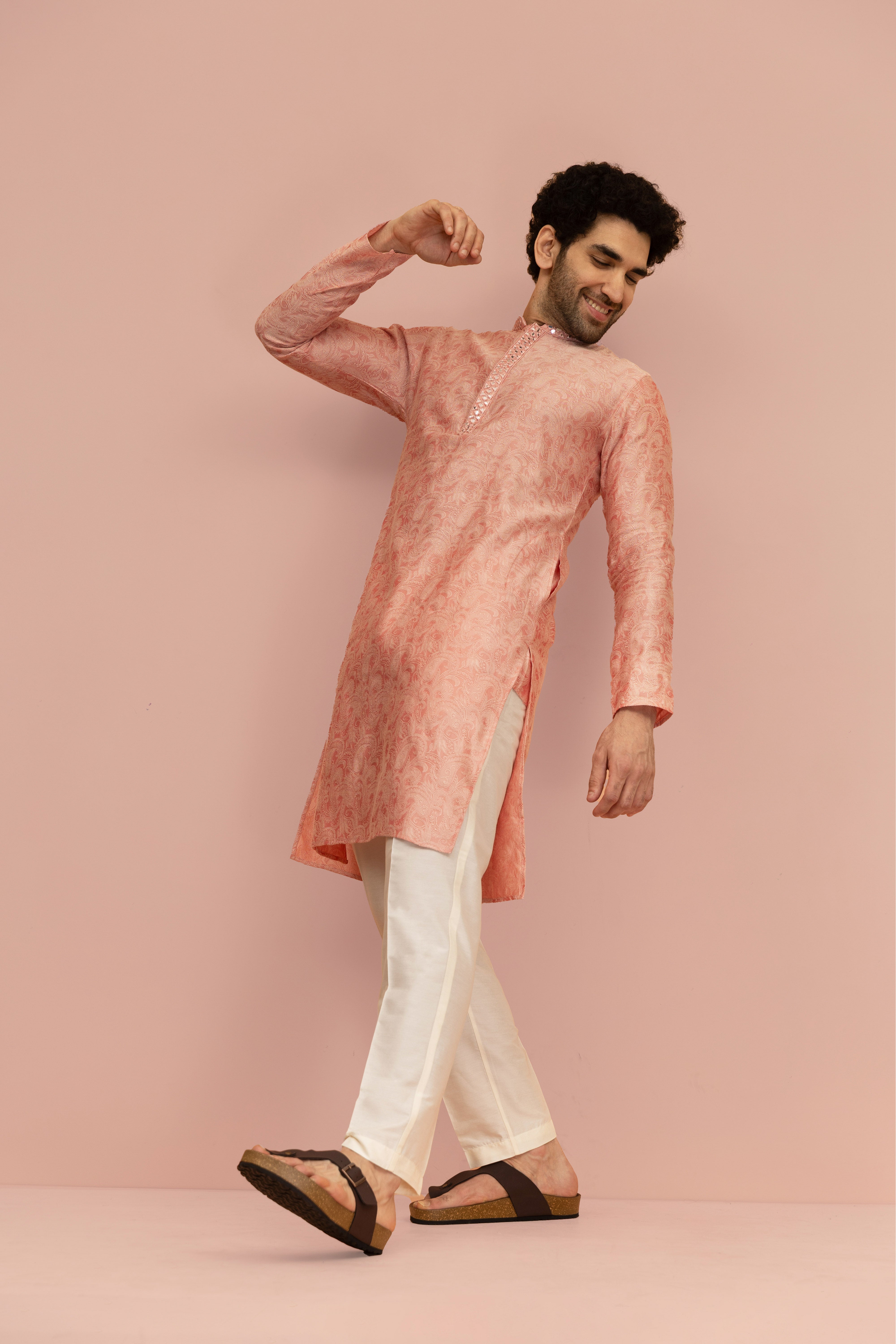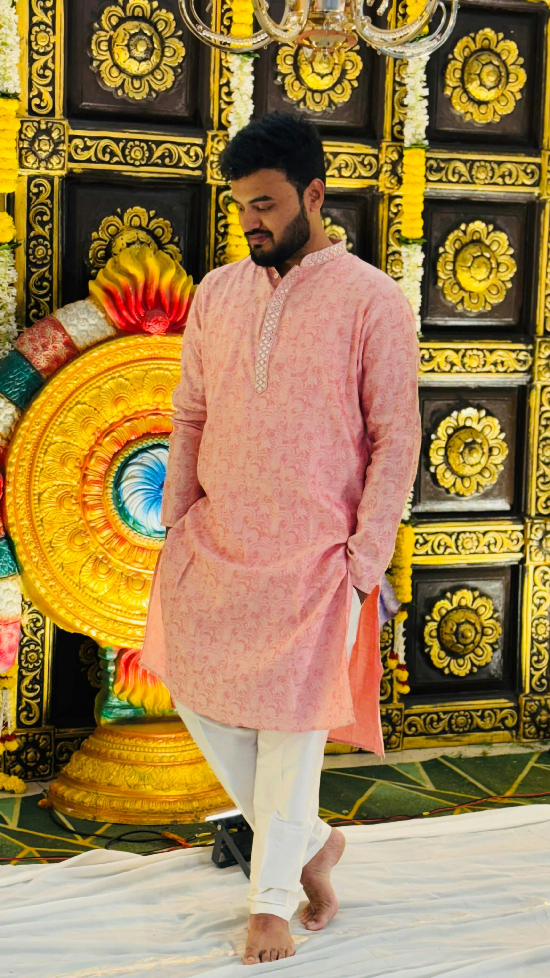 Make an unforgettable moment with this Pink Mirror work Kurta Trouser Set, designed to bring elegance and charm to every celebration. The rich Silk Blend fabric adds Floral and depth, while the expertly tailored fit ensures a sharp, comfortable look. Whether it’s a wedding, festive gathering, or cultural event, this ensemble blends tradition with a modern edge, refined yet effortlessly stylish.
