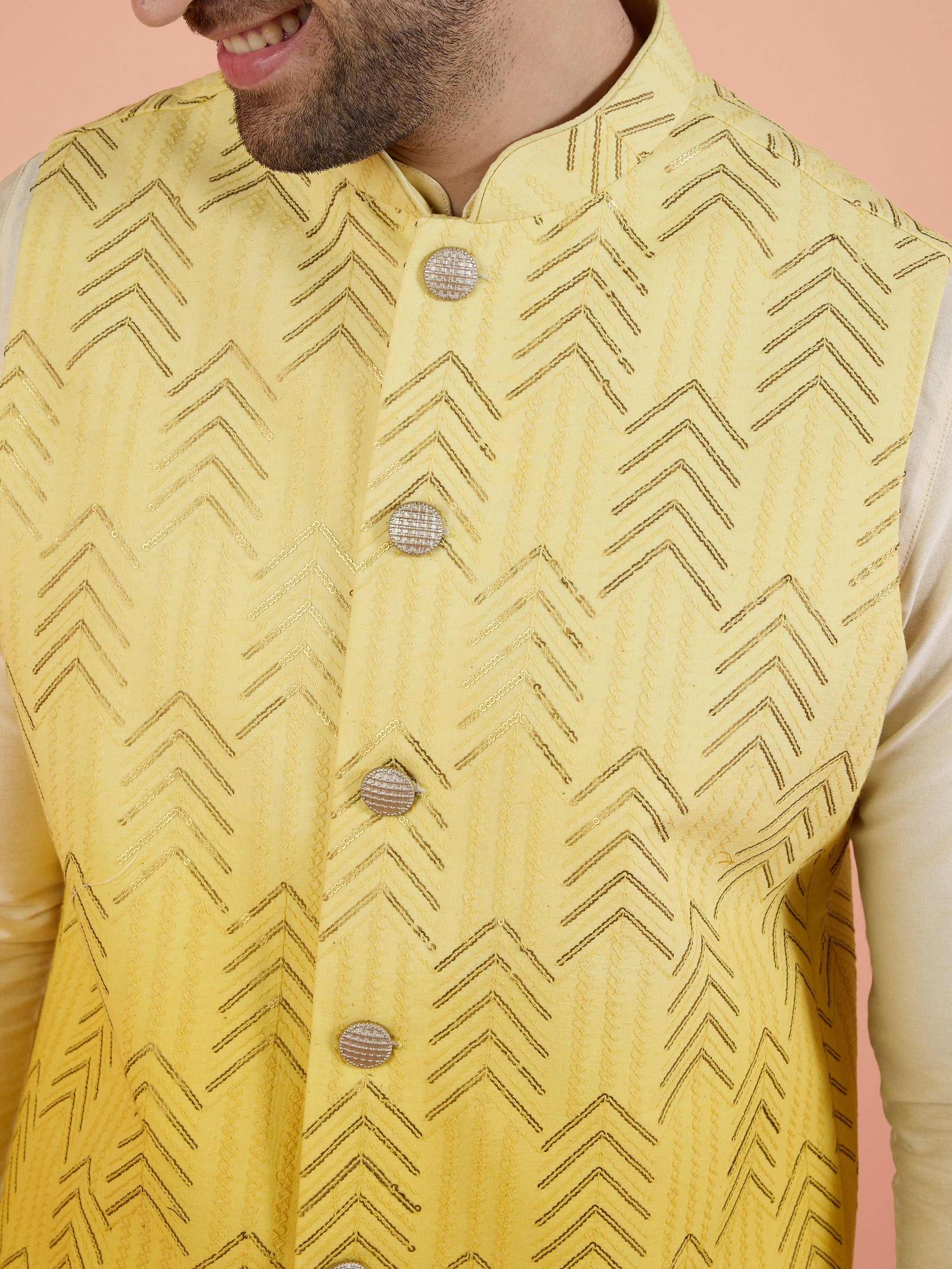 Experience classic elegance with this Men Ombre Embellished Sequinned Nehru Jacket. The Embellished Pattern adds a refined touch, while the breathable Cotton fabric ensures comfort throughout the day. Ideal for festive events or casual wear, this Nehru Jacket is a wardrobe essential..