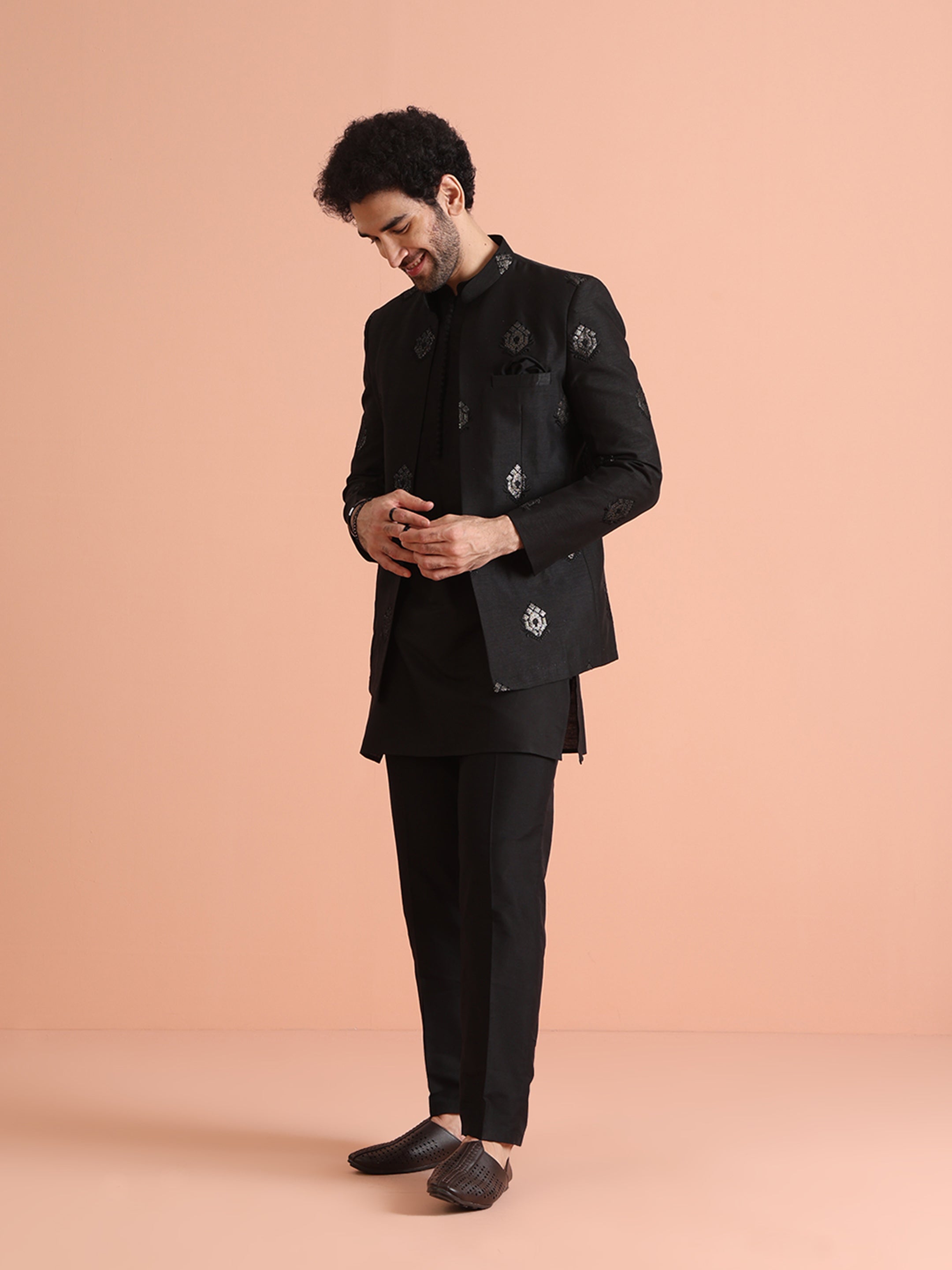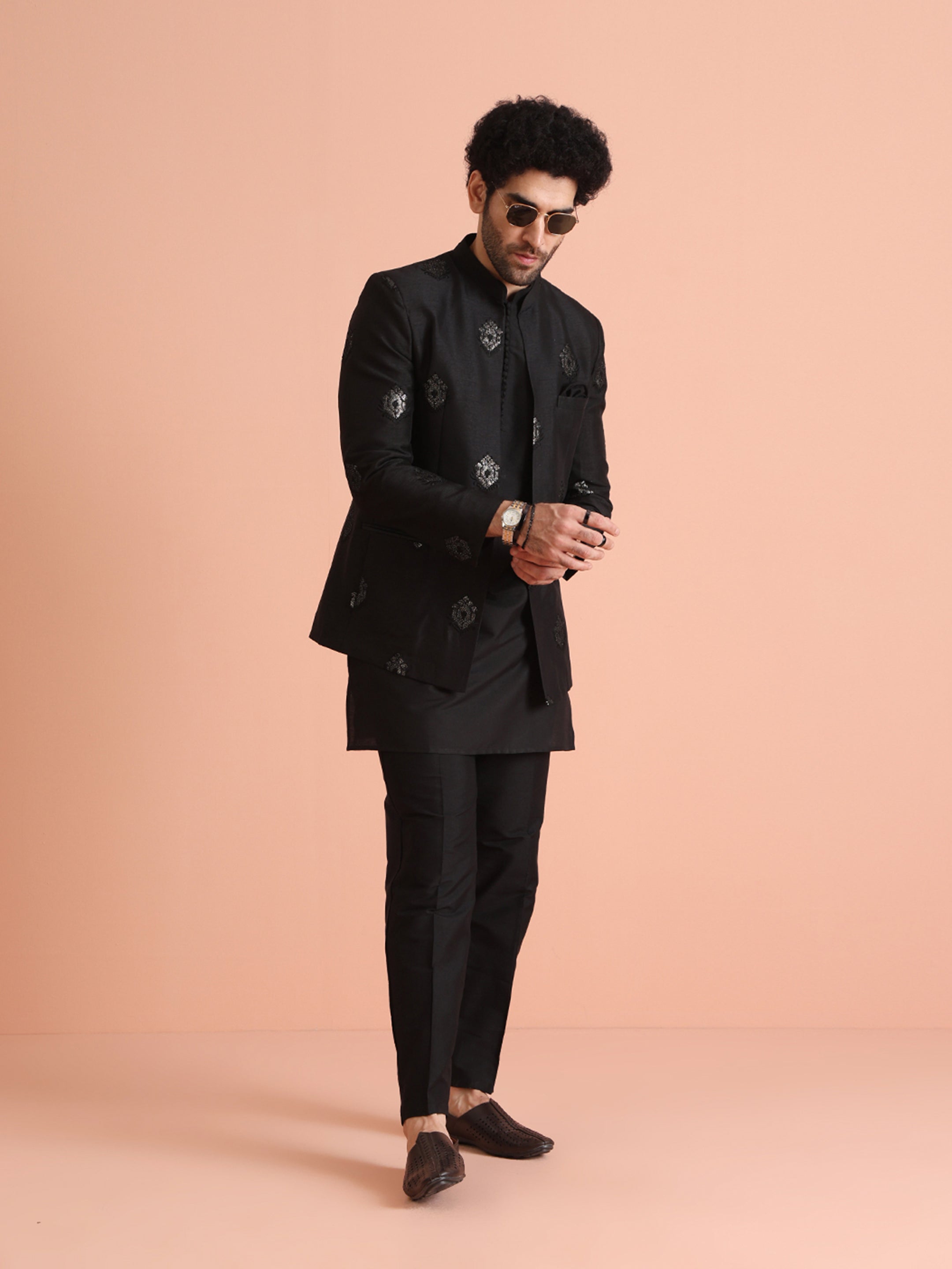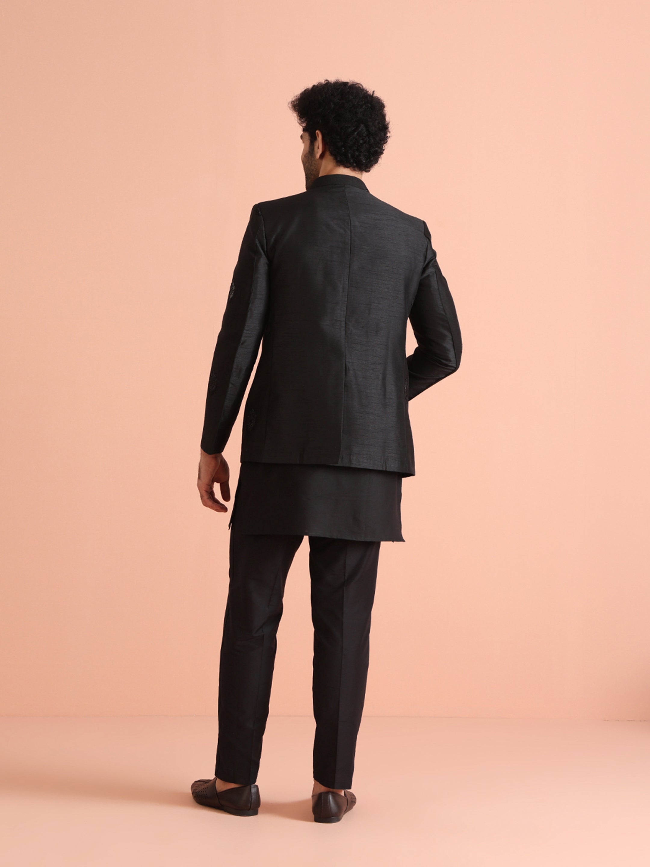 You can never go wrong with all black, right? This Black Kurta Bandhgala Trouser Set is the ultimate blend of sophistication and style. Made from a fine cotton blend, it drapes effortlessly while keeping you comfortable all day. Whether it's a festive gathering or a casual traditional affair, this set ensures you stay sharp and stylish without even trying. And the tailored bandhgala silhouette? That’s just the cherry on top.