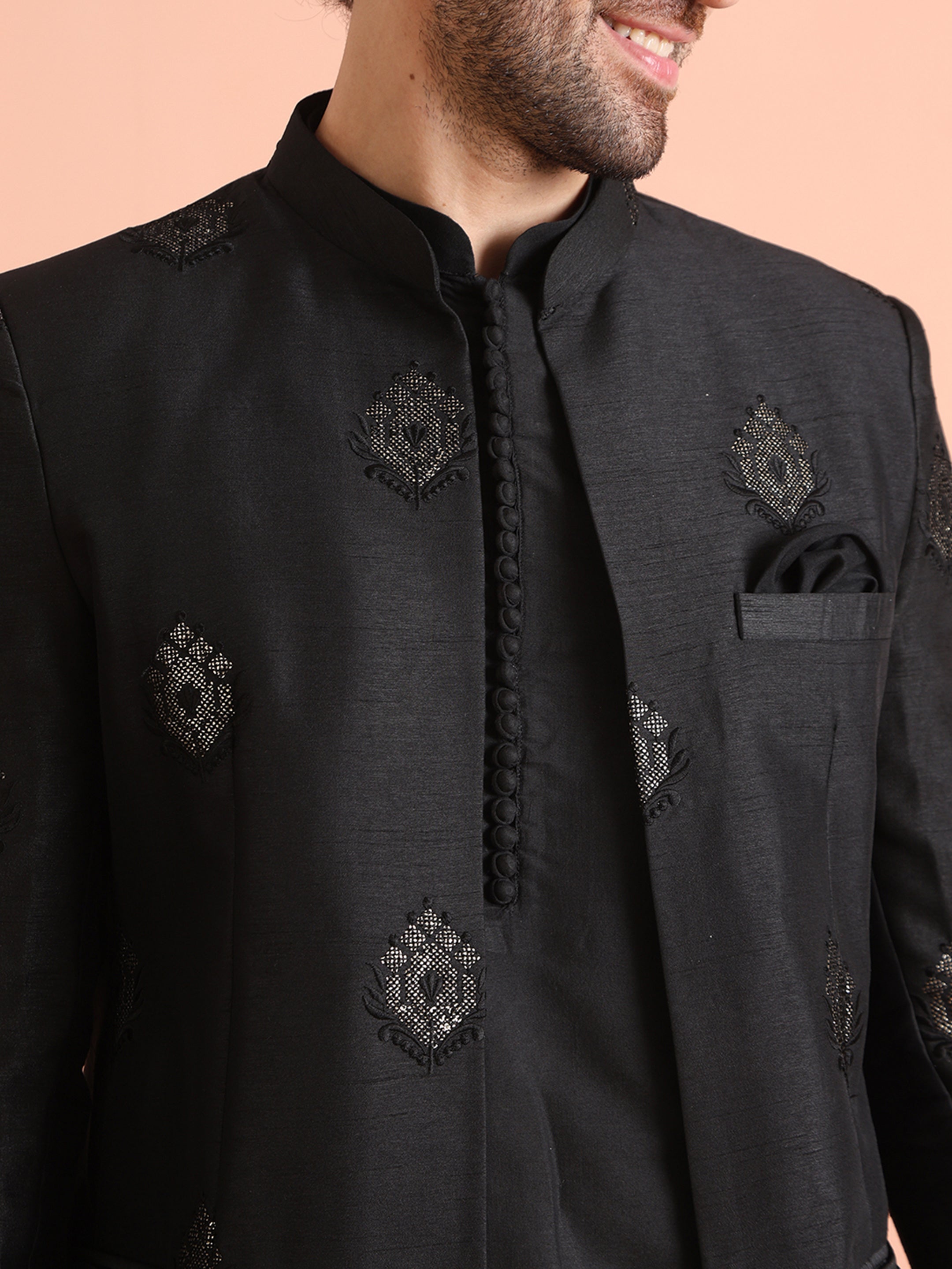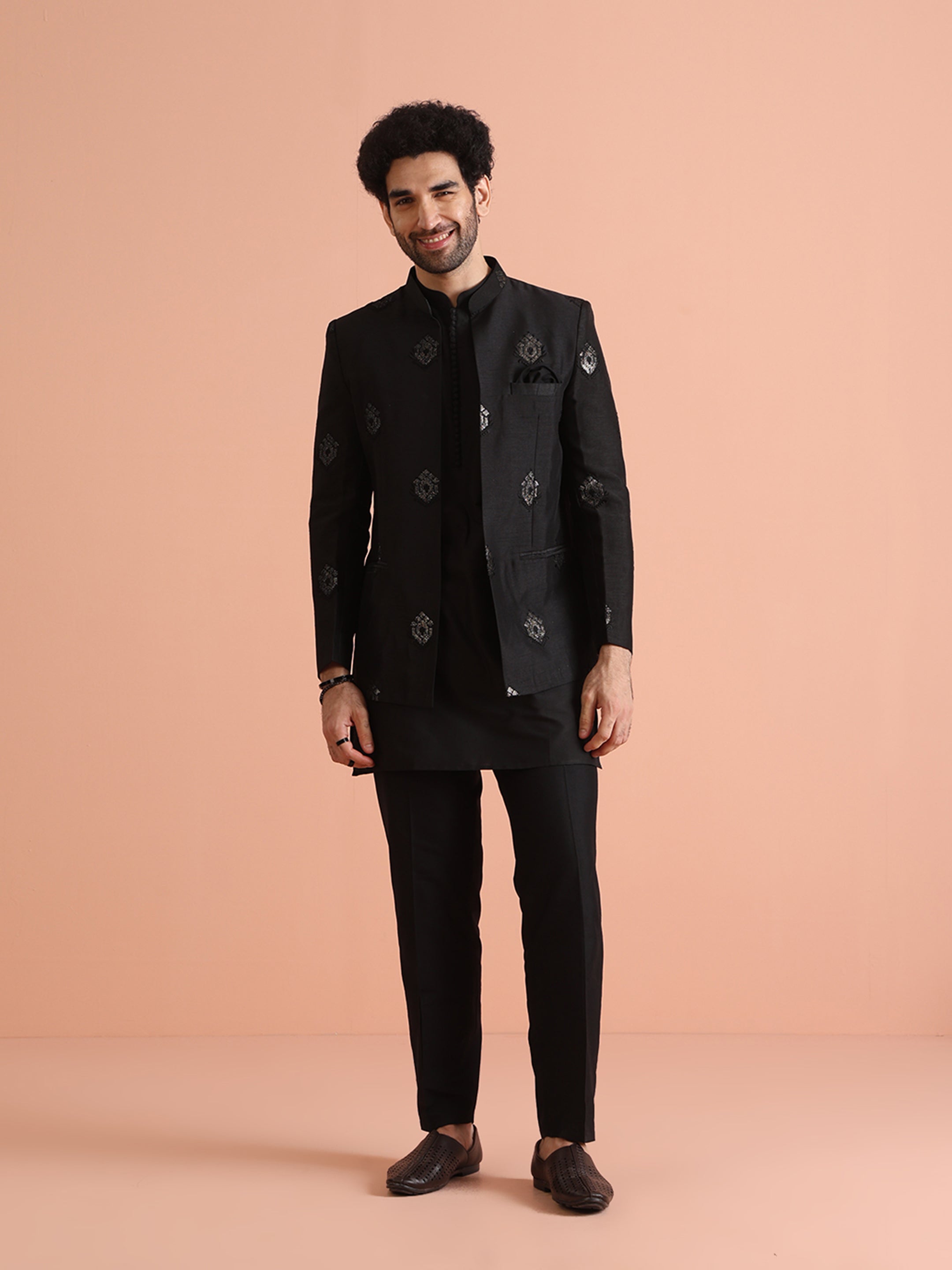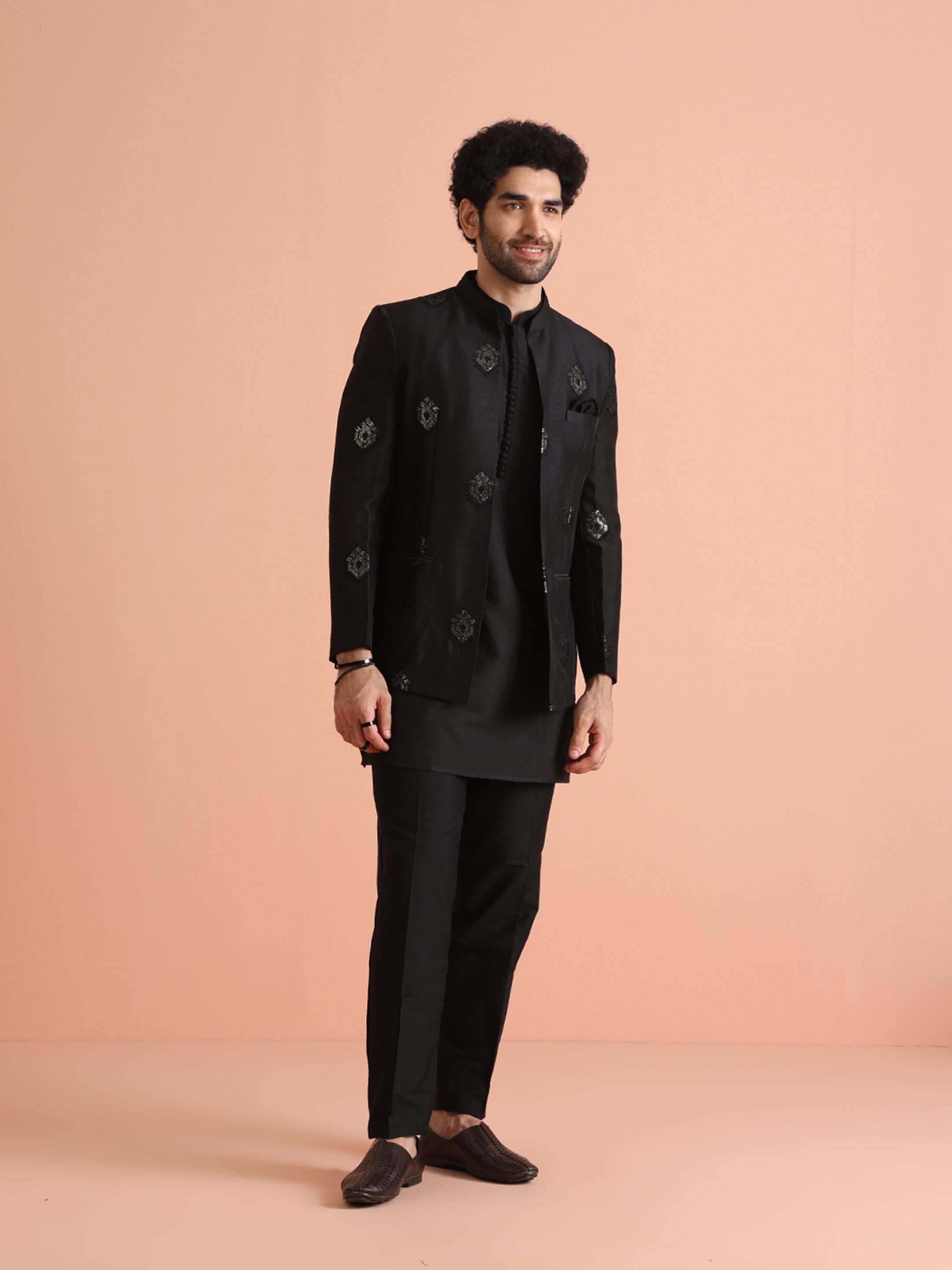 You can never go wrong with all black, right? This Black Kurta Bandhgala Trouser Set is the ultimate blend of sophistication and style. Made from a fine cotton blend, it drapes effortlessly while keeping you comfortable all day. Whether it's a festive gathering or a casual traditional affair, this set ensures you stay sharp and stylish without even trying. And the tailored bandhgala silhouette? That’s just the cherry on top.