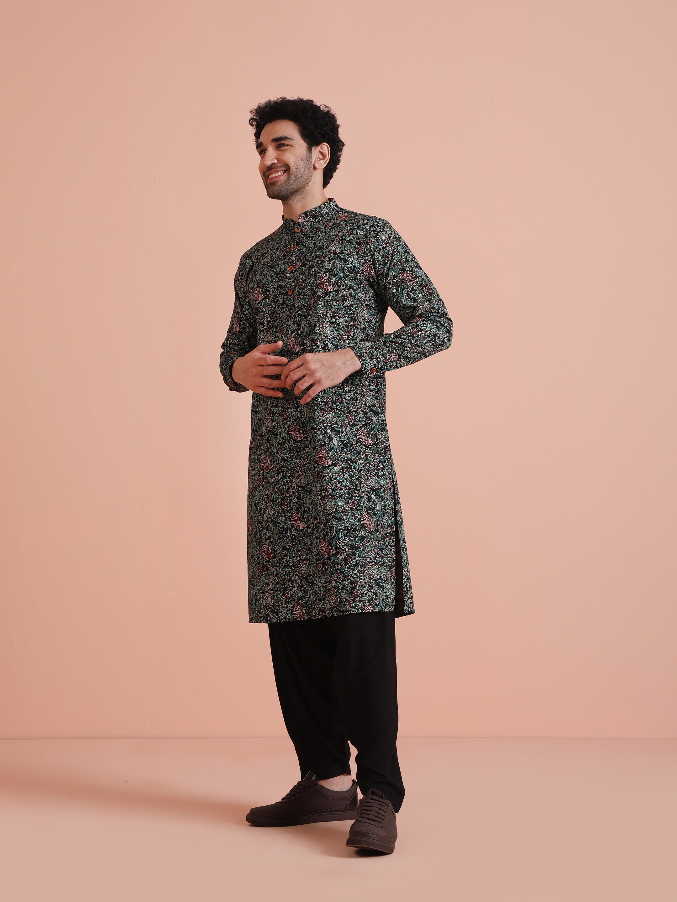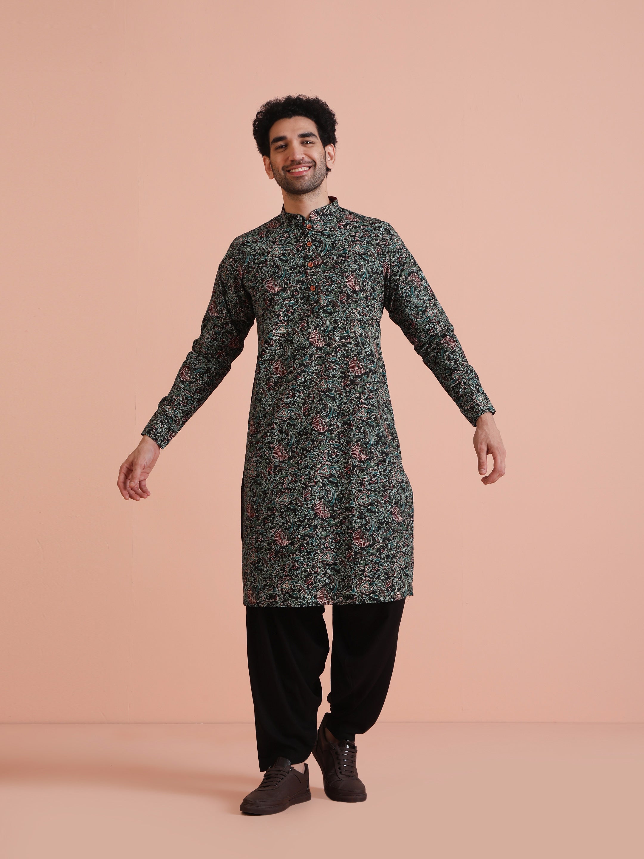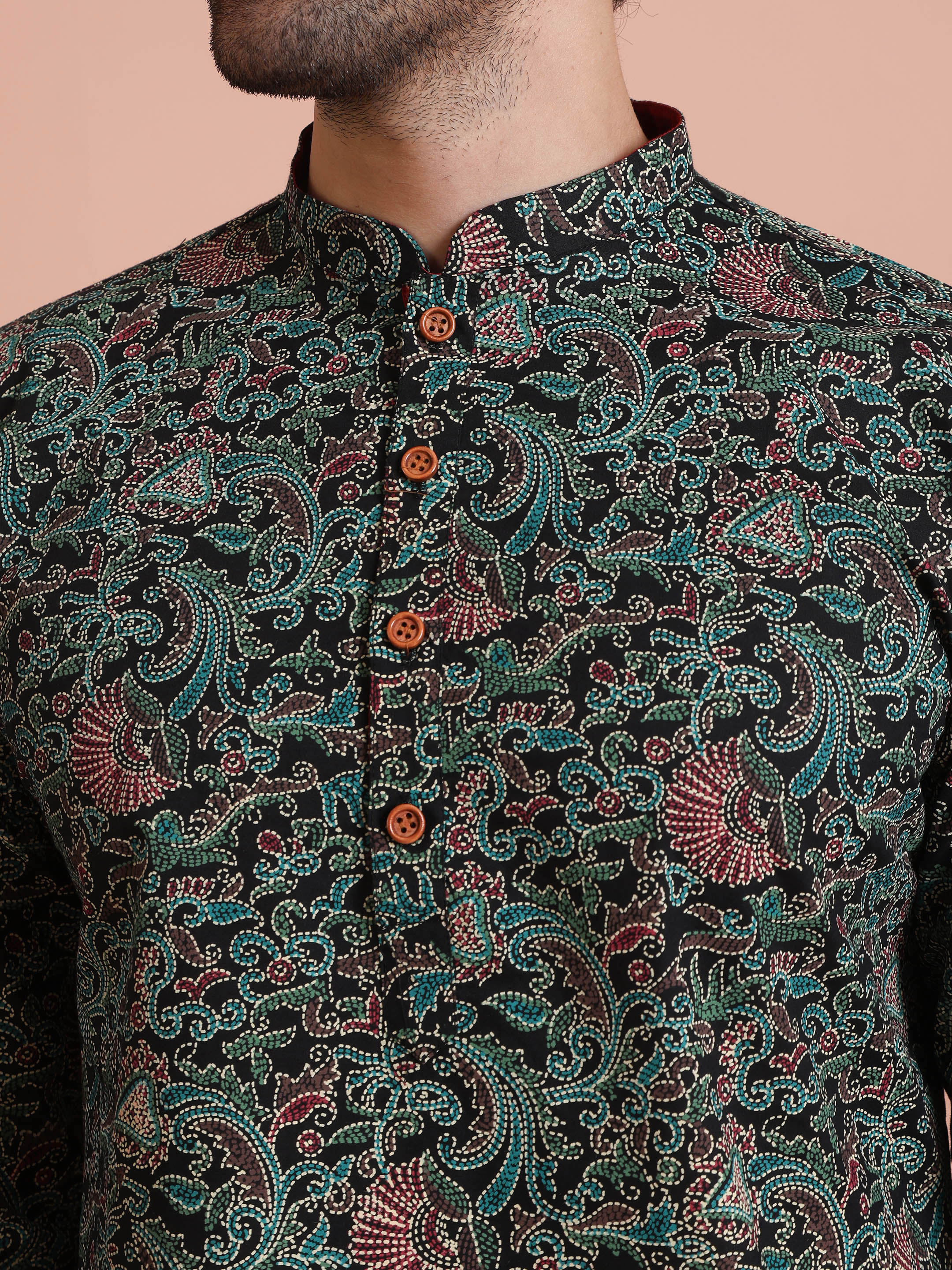 Give your festive wardrove a twist with this Black Printed Kurta. The striking design and tailored finish ensure you look trendy and confident at any occasion. With a comfortable cotton blend, this kurta is the ideal choice for both casual and festive events, adding style to your celebrations. Perfect for men who want to stand out with ease, this timeless piece that’s sure to impress.
