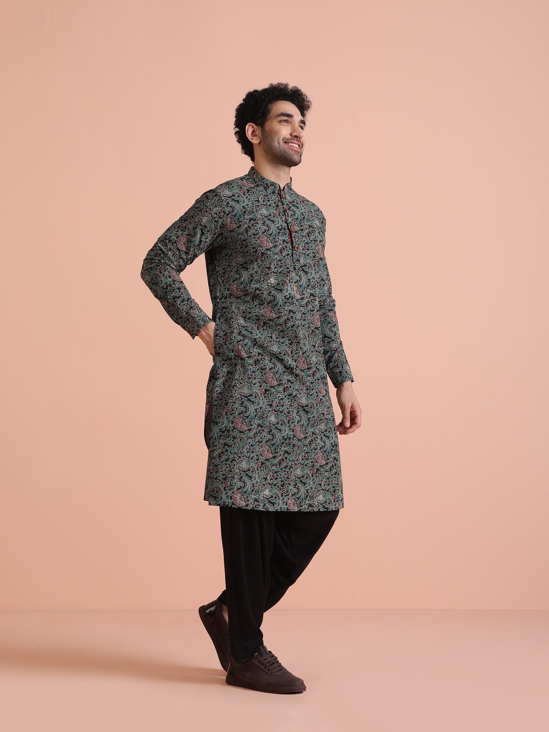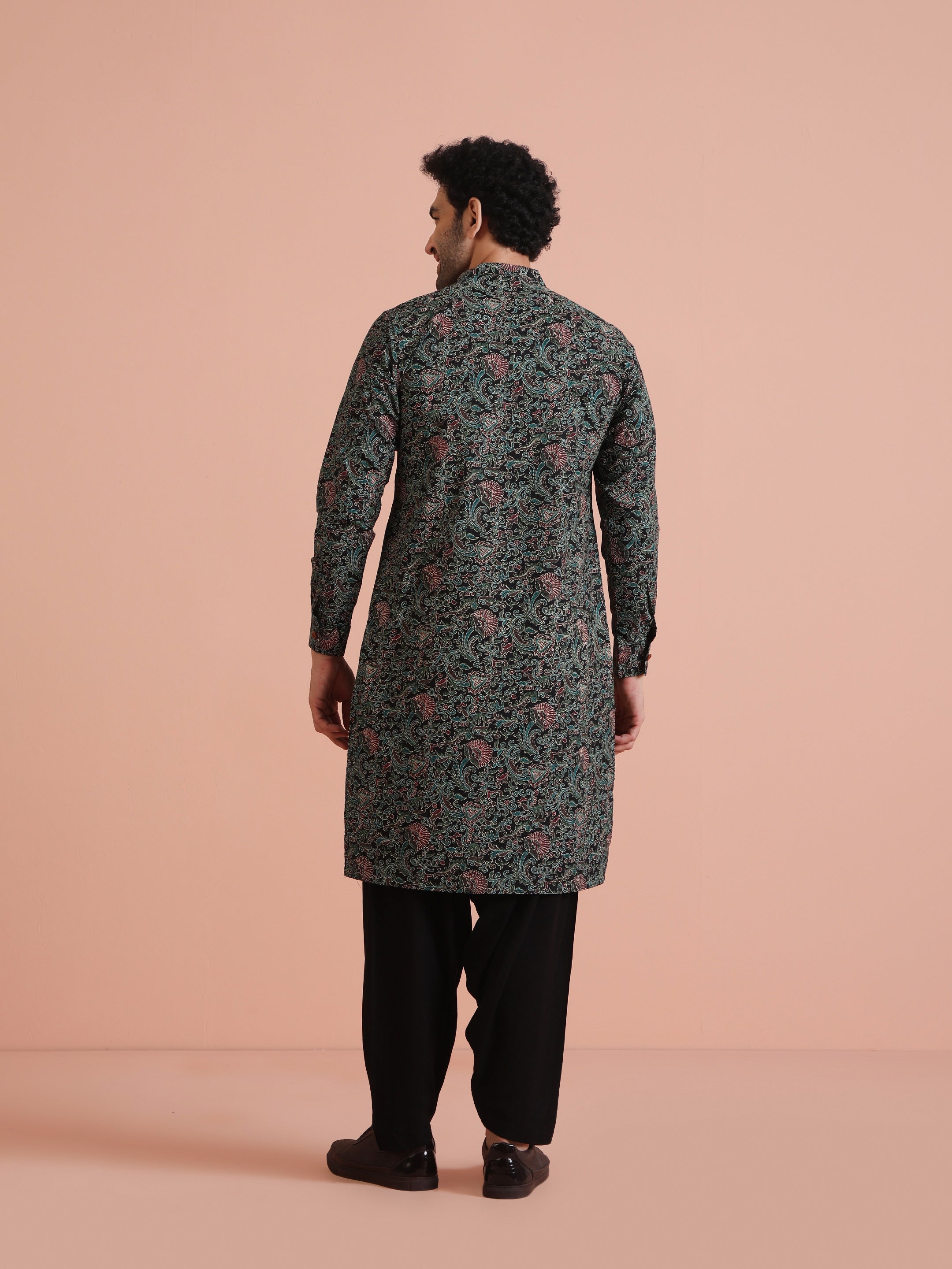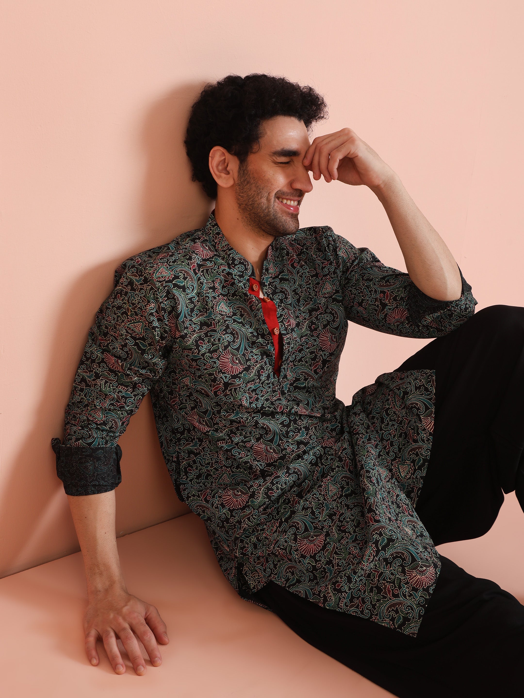 Give your festive wardrove a twist with this Black Printed Kurta. The striking design and tailored finish ensure you look trendy and confident at any occasion. With a comfortable cotton blend, this kurta is the ideal choice for both casual and festive events, adding style to your celebrations. Perfect for men who want to stand out with ease, this timeless piece that’s sure to impress.