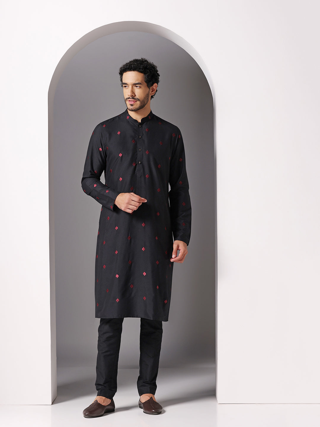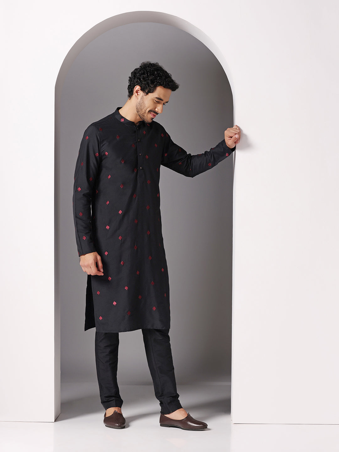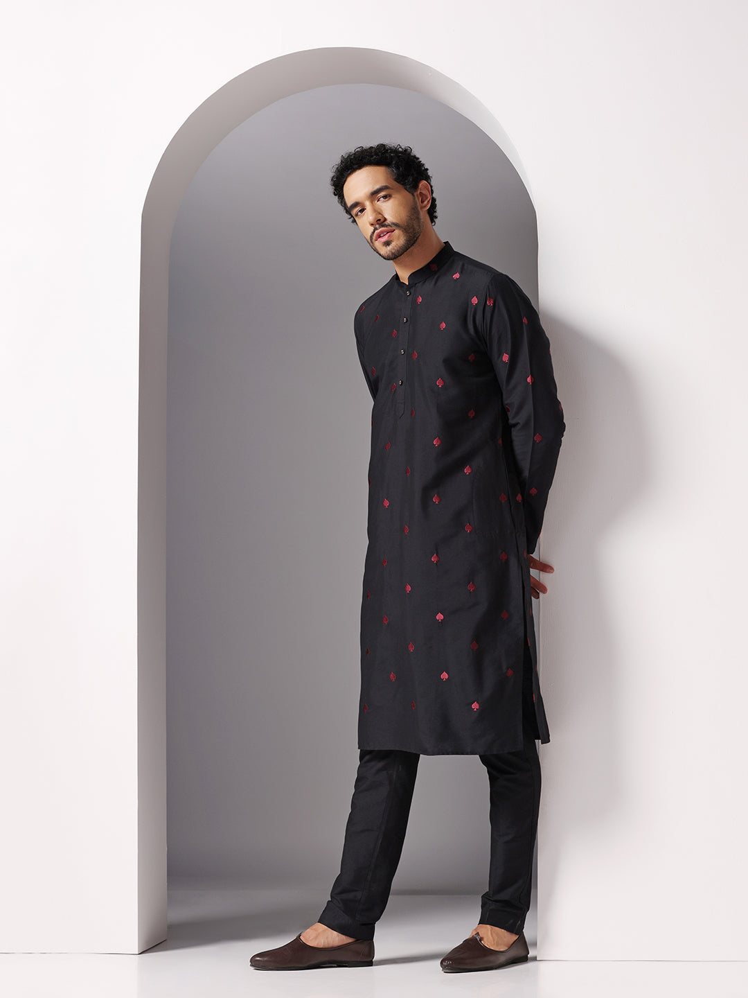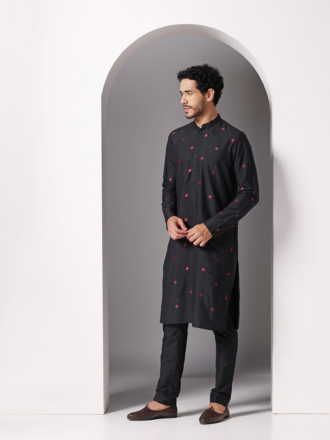 Men Black Kurta Trouser Set