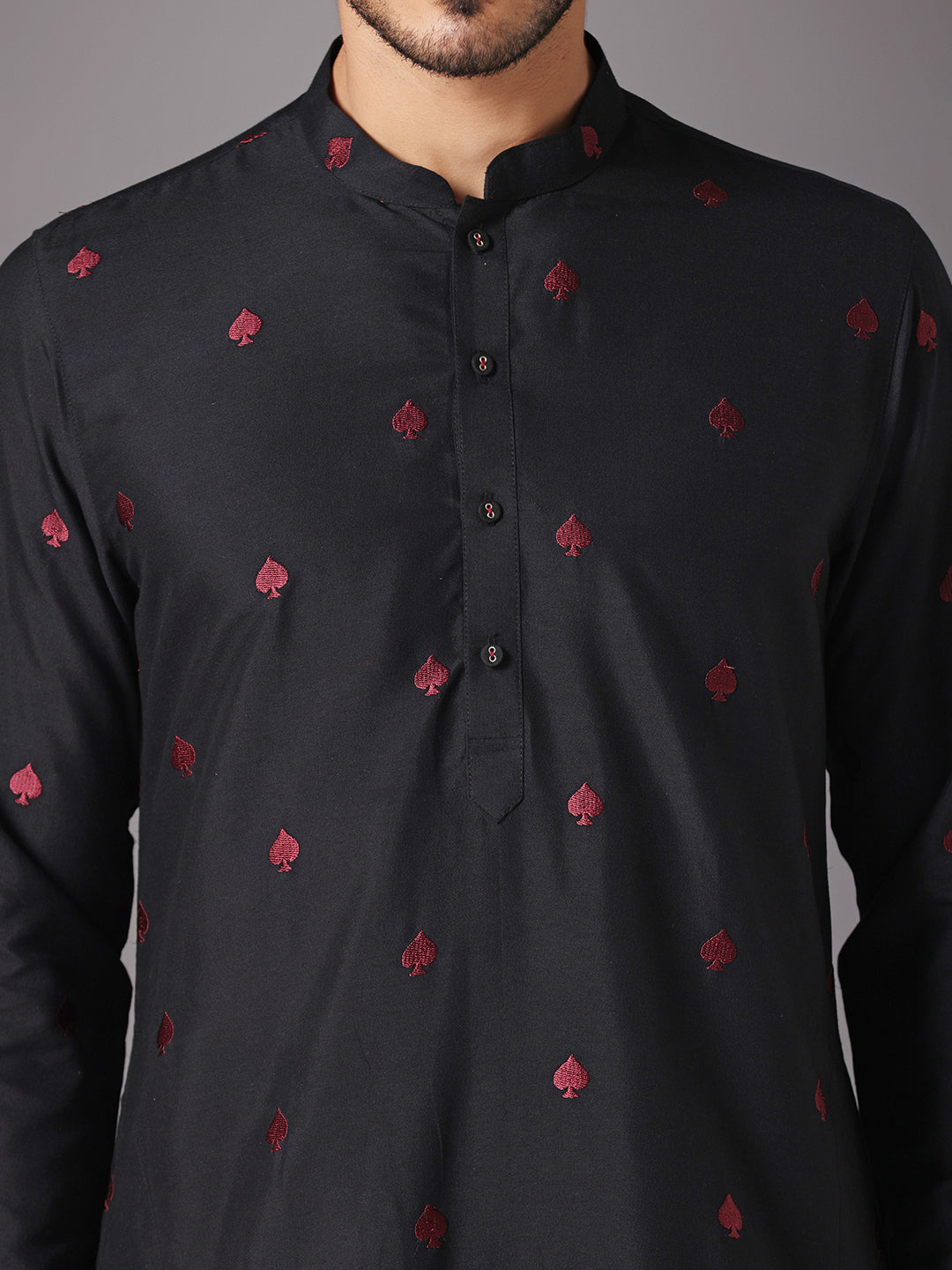 This Kurta Trouser Set with Black Color is an elegant mandarin collar style that is perfect for occasional wear. With a full sleeve Stylish design and comfortable fabric, it will make you look stylish.