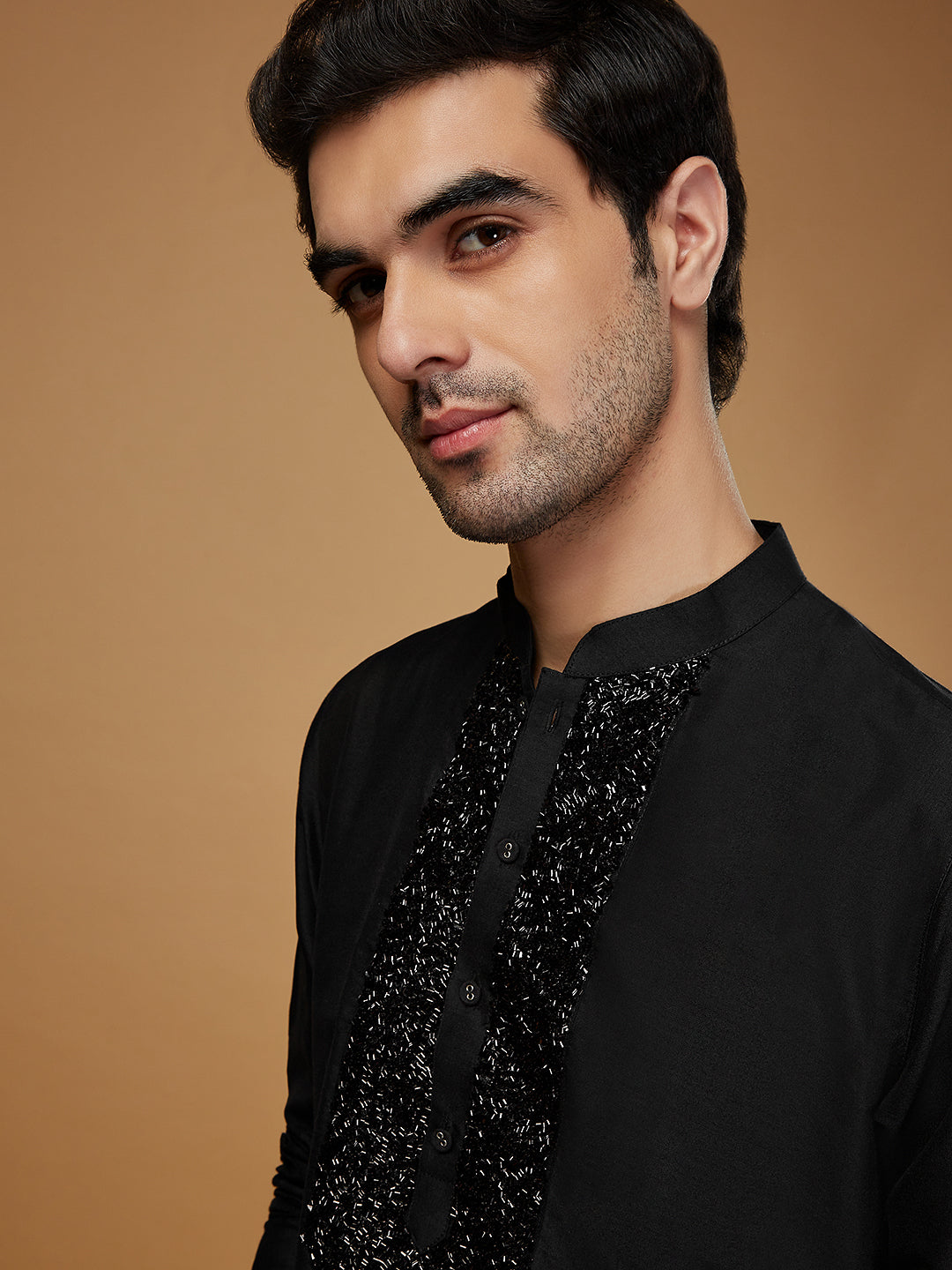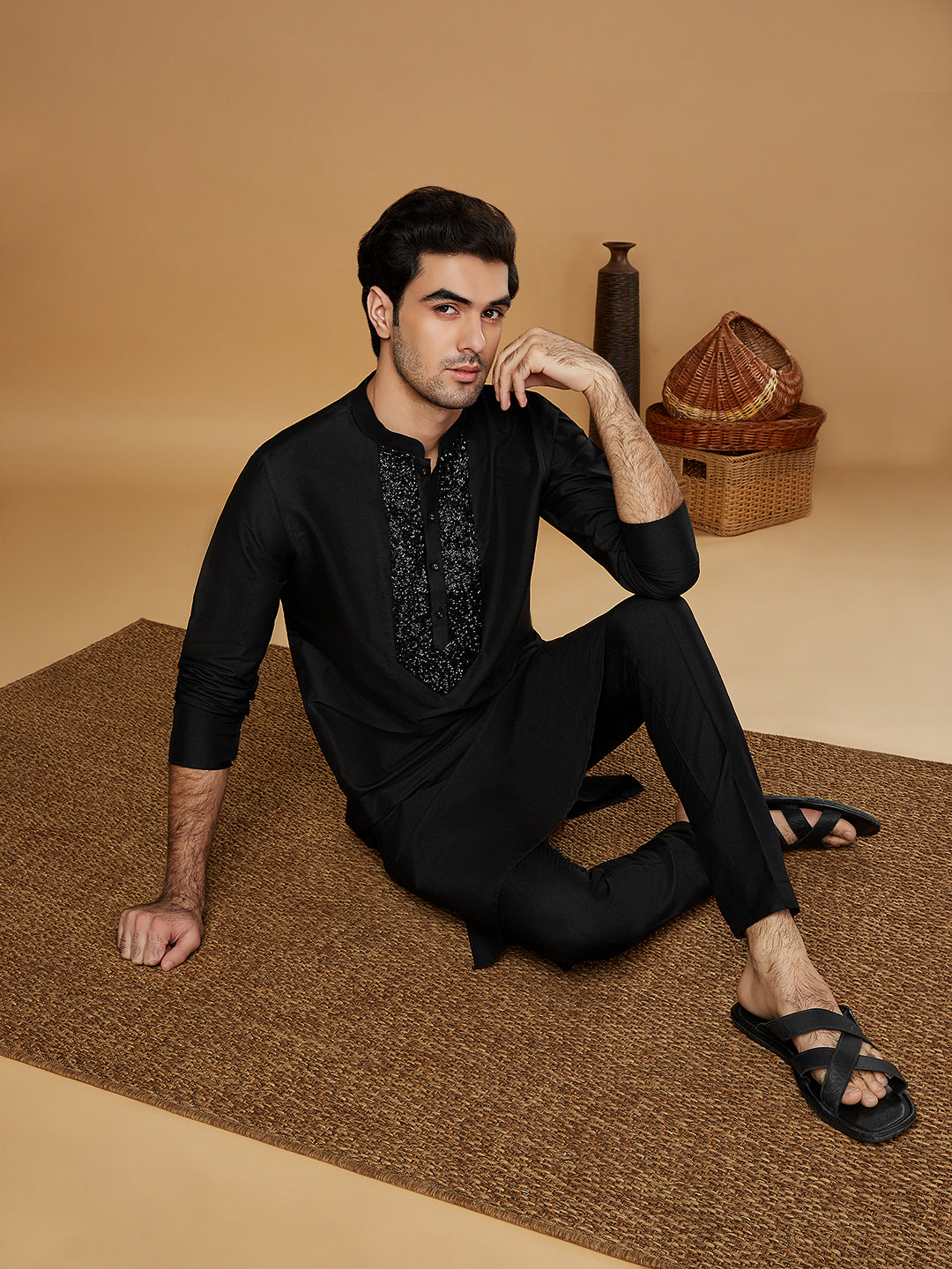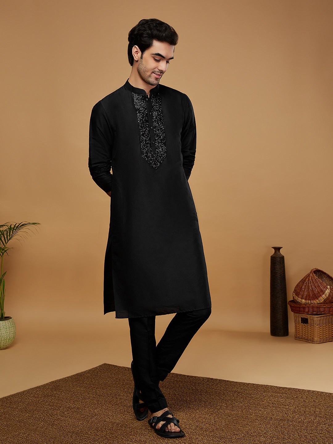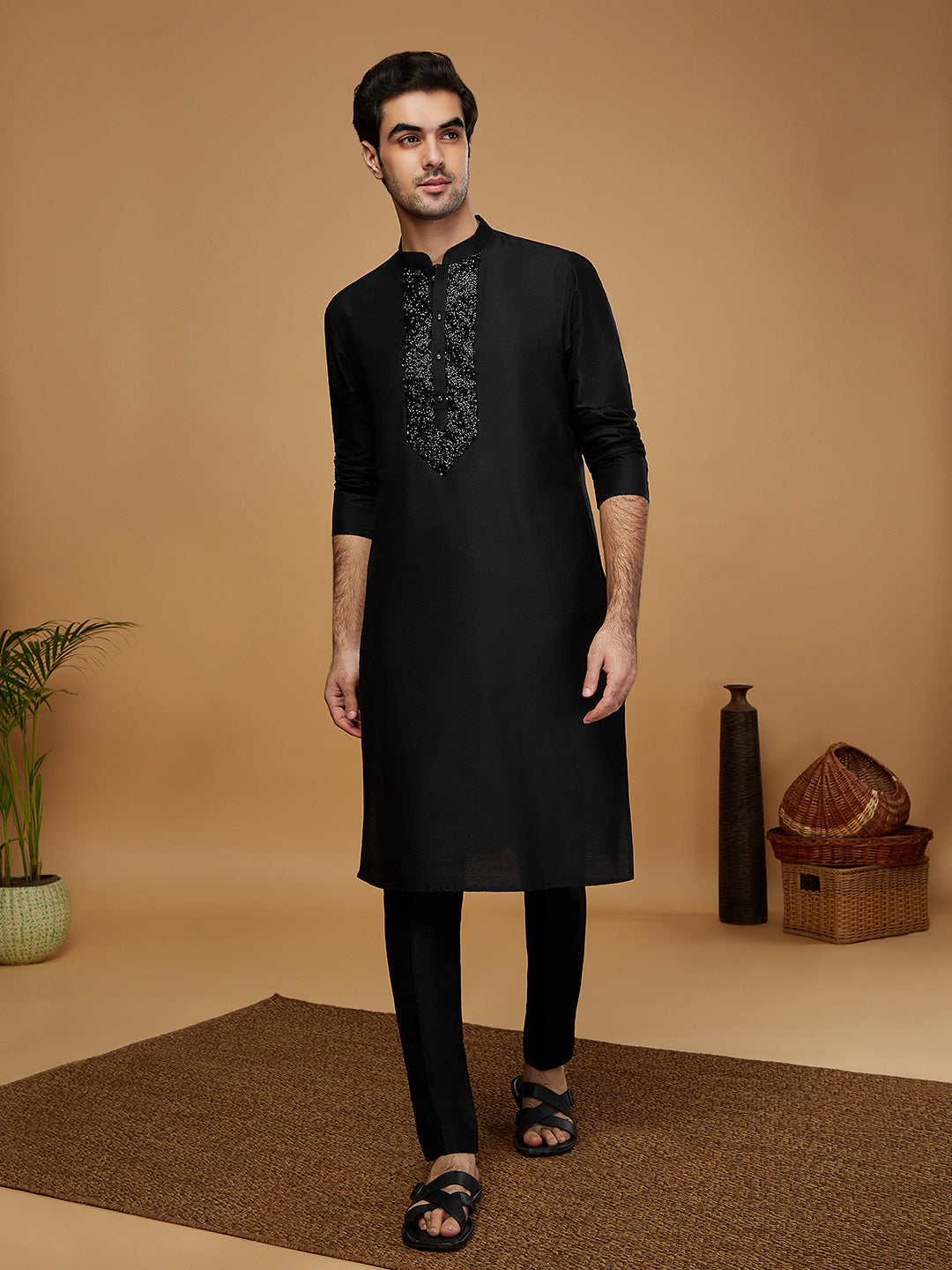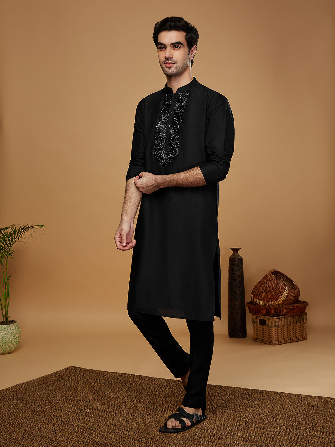 Experience the style and comfort of this Kisah kurta Set. With Black color, Cotton Blend fabric, and Embalished pattern, you'll look your best. this kurta is perfect for any occasion..