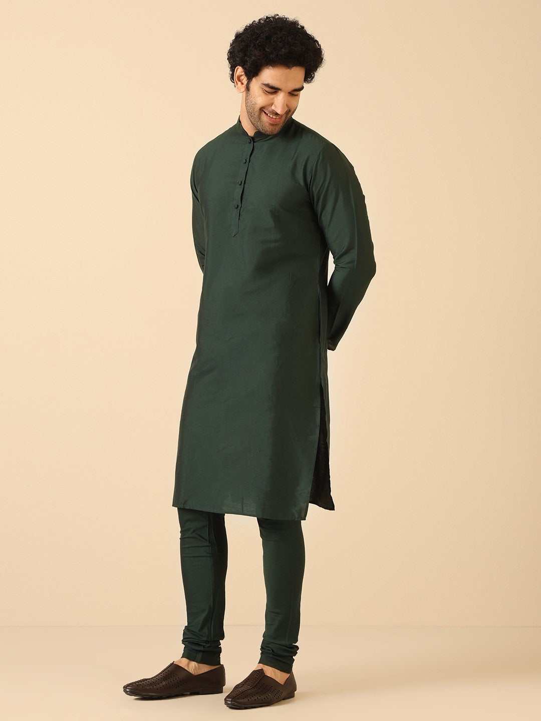 This Bottle Green Kurta Churidar Set is a yes for all your casual occasions. The Kurta is of Cotton Blend which adds on to the defined and modern look. This set to complete your look