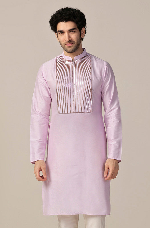 This Lavender Kurta is a yes for all your casual occasions. The Kurta is of Cotton Blend which adds on to the defined and modern look. This Kurta will complete your look