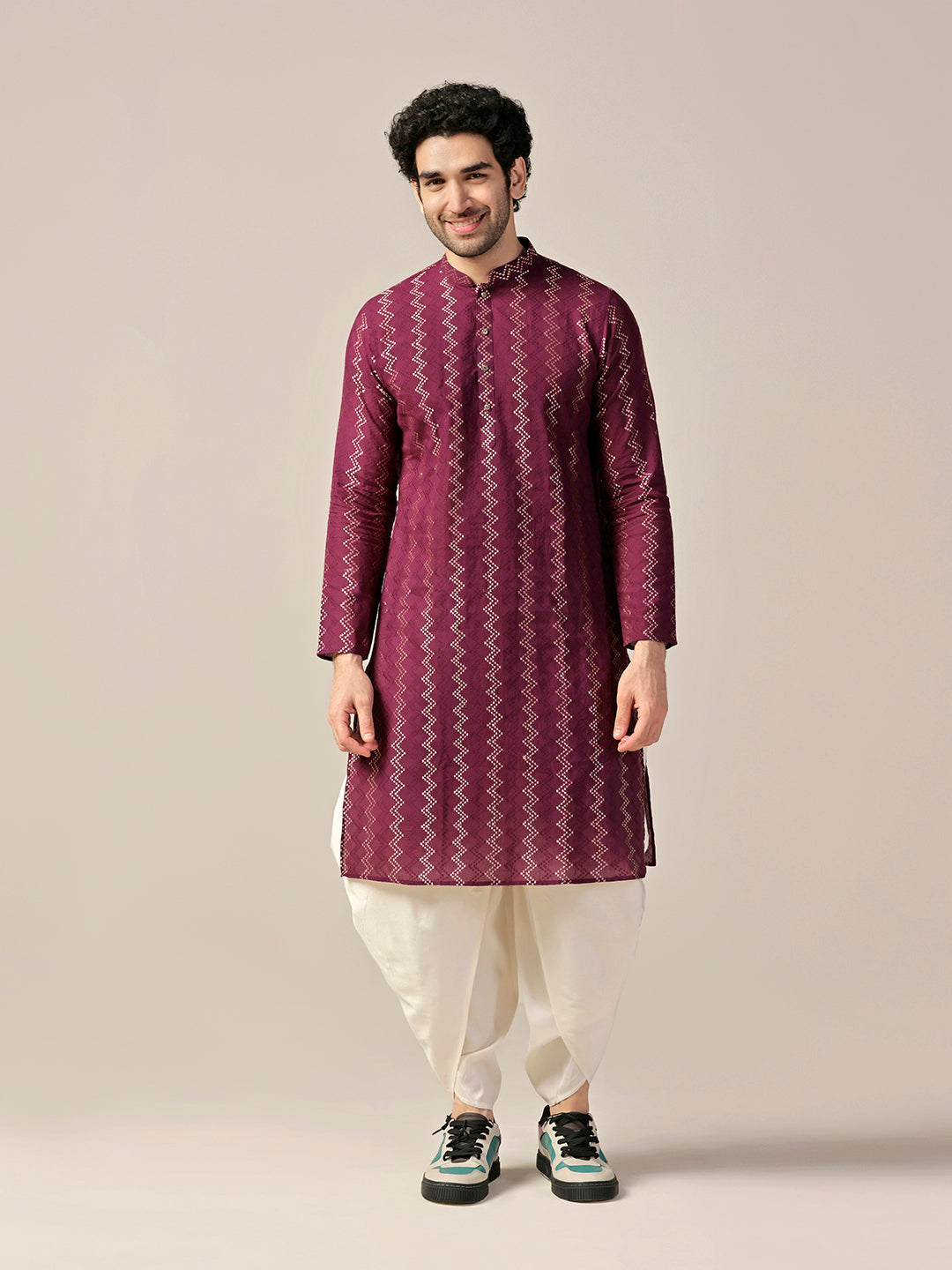 This Magenta Kurta Dhoti Set is a yes for all your casual occasions. The Kurta is of Cotton which adds on to the defined and modern look. This set includes Bottomwear to complete your look