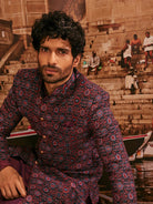 Flaunt your look in this Sherwani set crafted by the designers at Kisah. This Sherwani set is an exquisite set designed in Jacquard Fabric in Blue. The design all over the Sherwani sets a parting glamorous style.This is a look that satiates traditional fashion needs at its best..