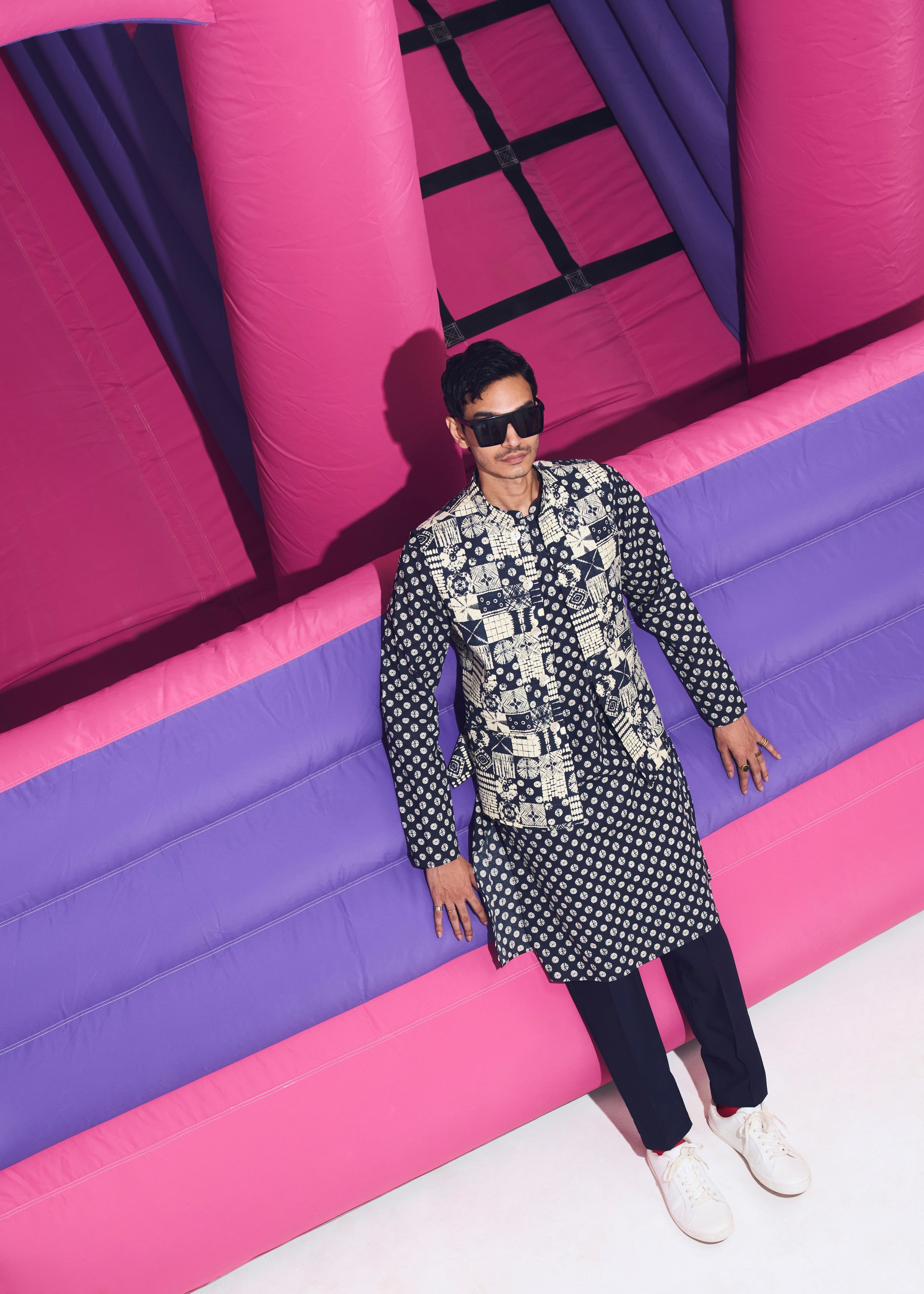 Experience classic elegance with this Men's Navy Blue Color Cotton Blend Kurta Jacket Trouser Set. The Printed Pattern adds a refined touch, while the breathable fabric ensures comfort throughout the day. Ideal for festive events or casual wear, this Kurta Jacket Trouser Set is a wardrobe essential.