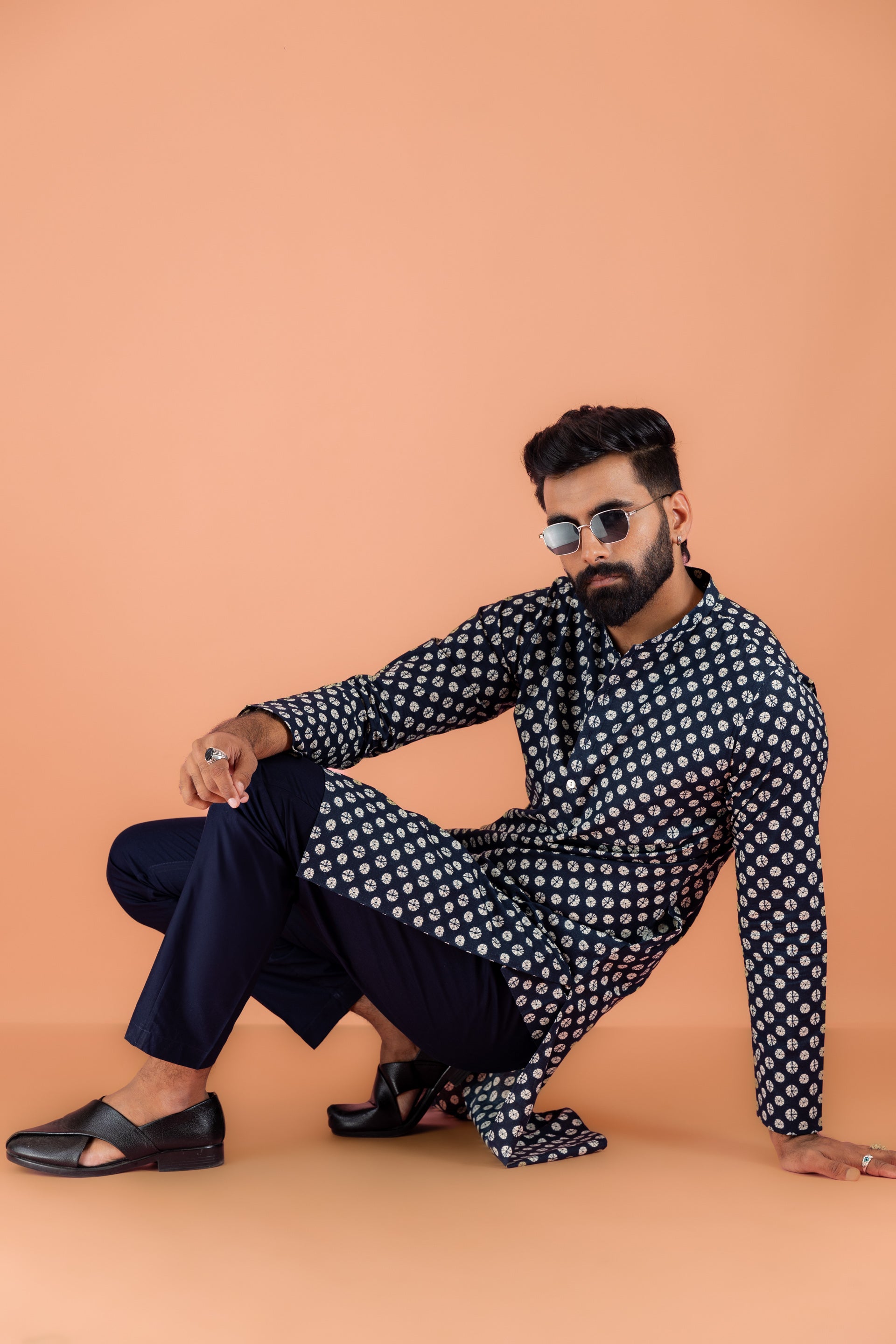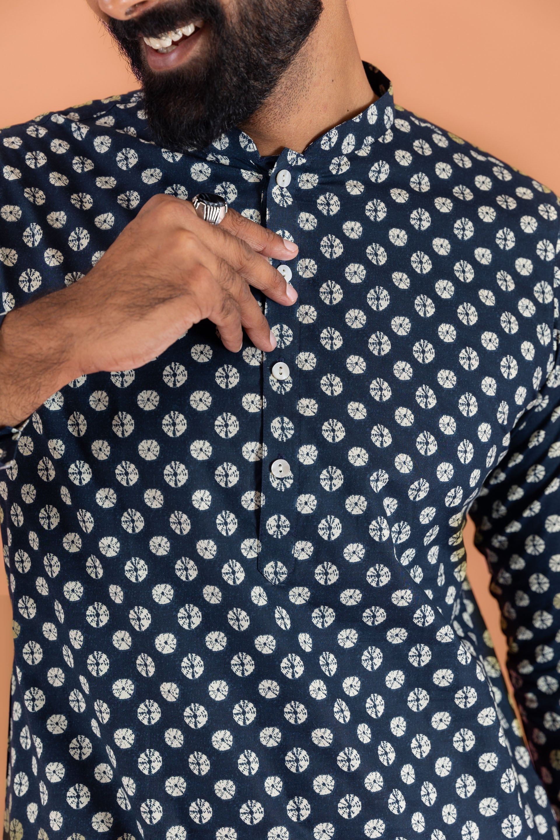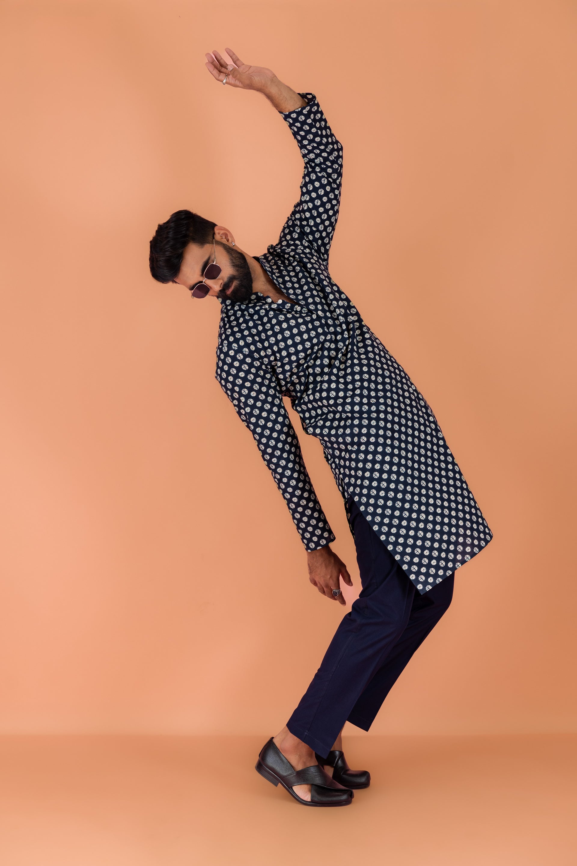 Experience classic elegance with this Kisah Men Navy Blue Cotton Blend Tie & Dye Pattern, Kurta Trouser Set. The breathable fabric ensures comfort throughout the day. Ideal for festive events or casual wear.