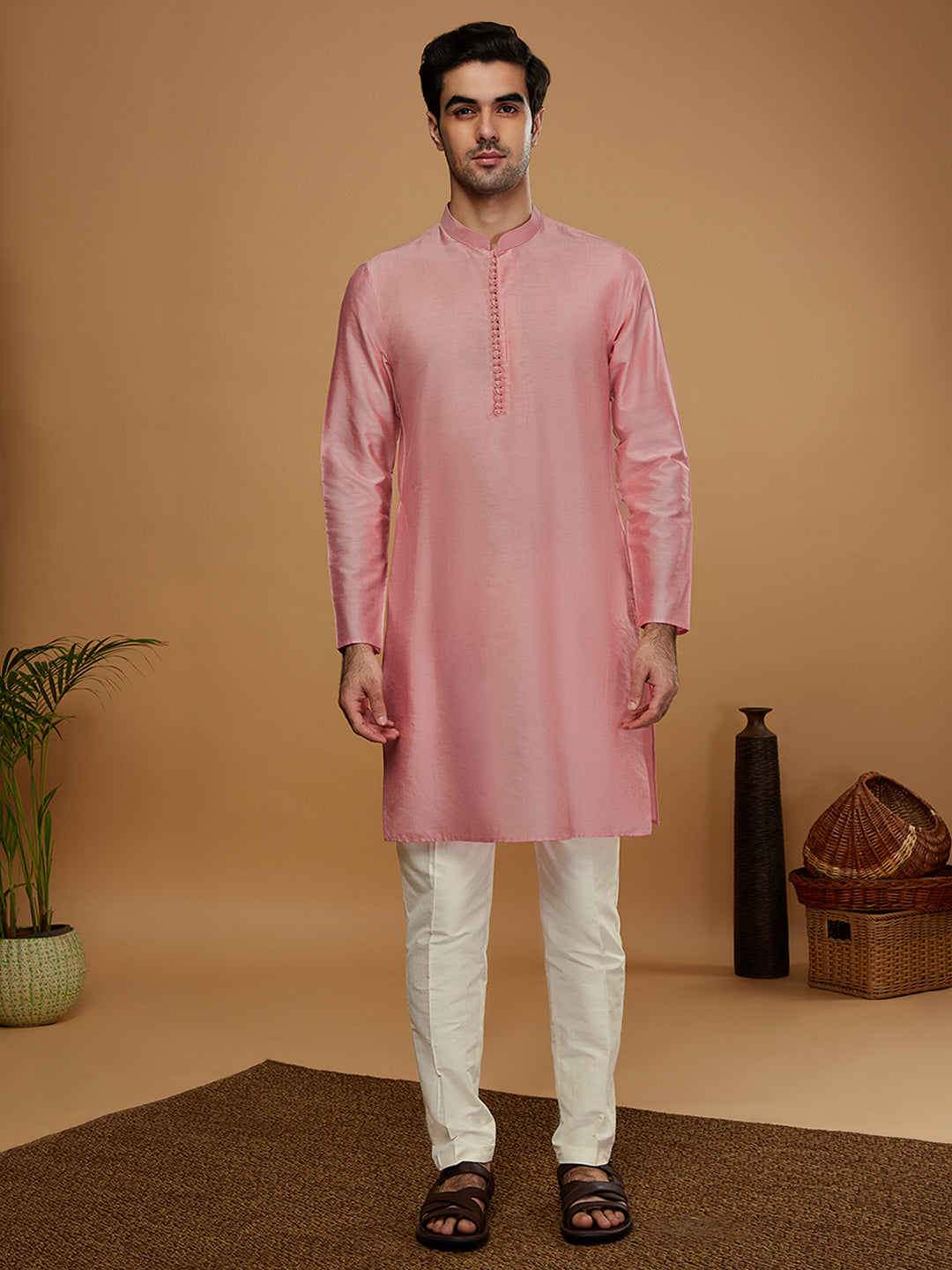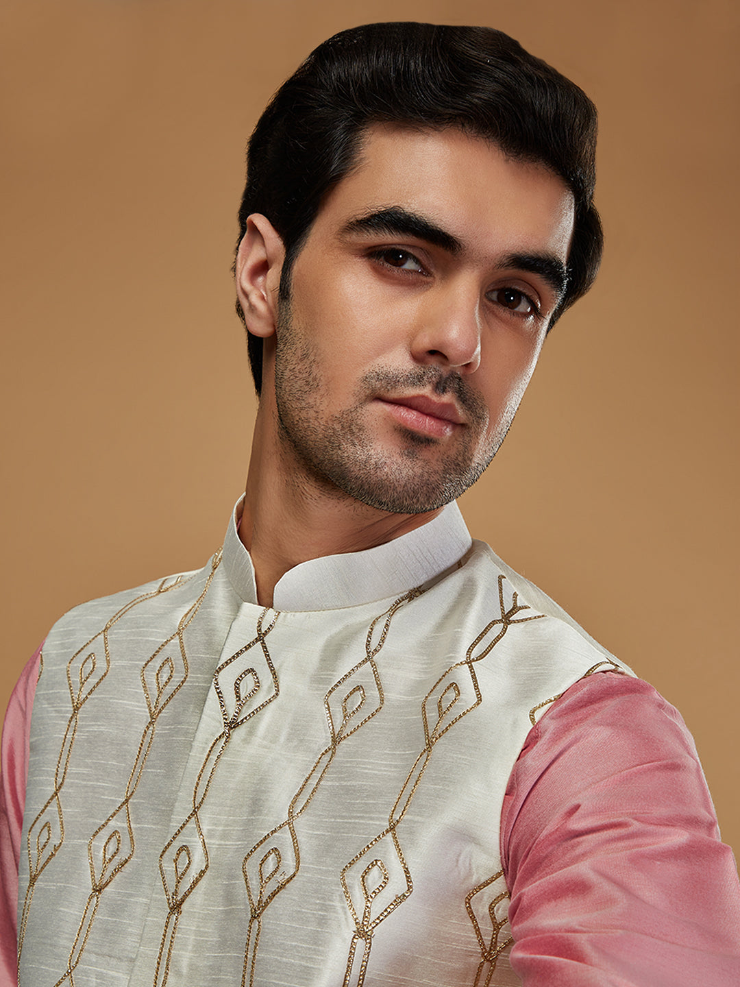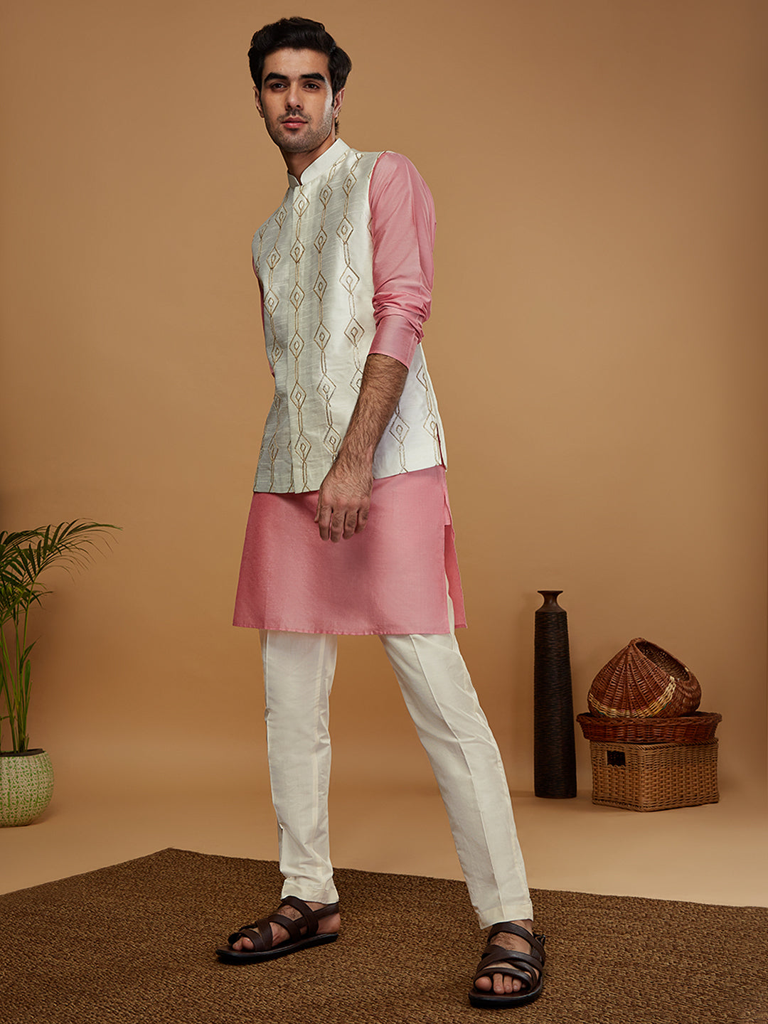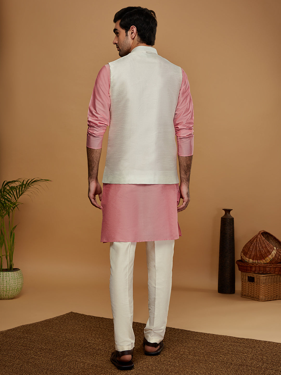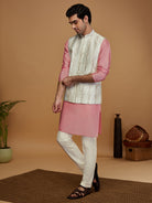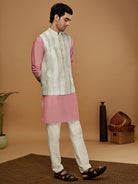 Stay stylish and warm with this men's Kurta Jacket Set. This classic design is made from Dupion Silk fabric with Solid Pattern and comes in Off White colours. Perfect for any occasion..