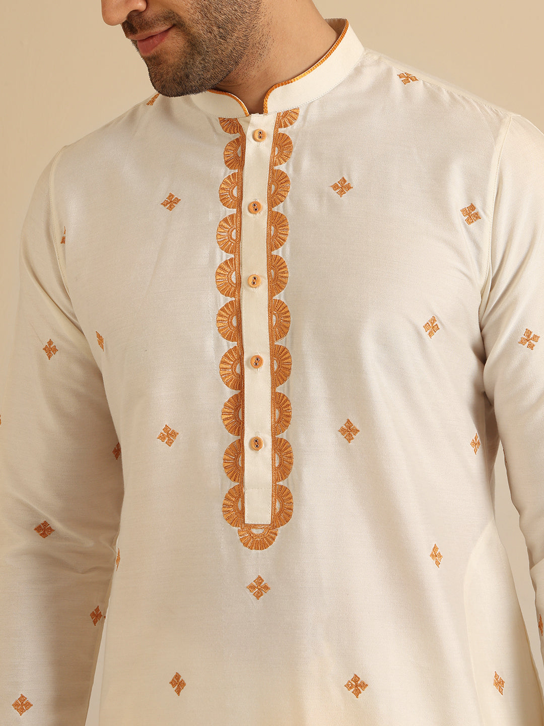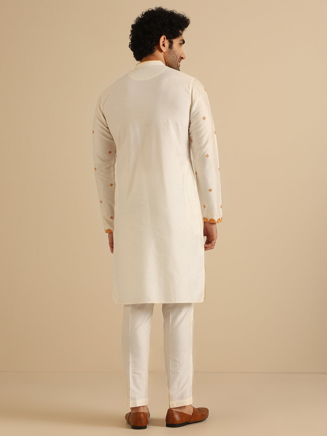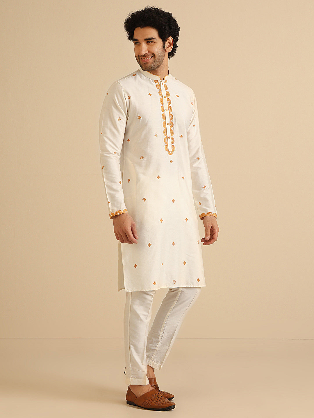 This Off White Kurta is a yes for all your casual occasions. The Kurta is of Cotton Blend which adds on to the defined and modern look. This Kurta will complete your look