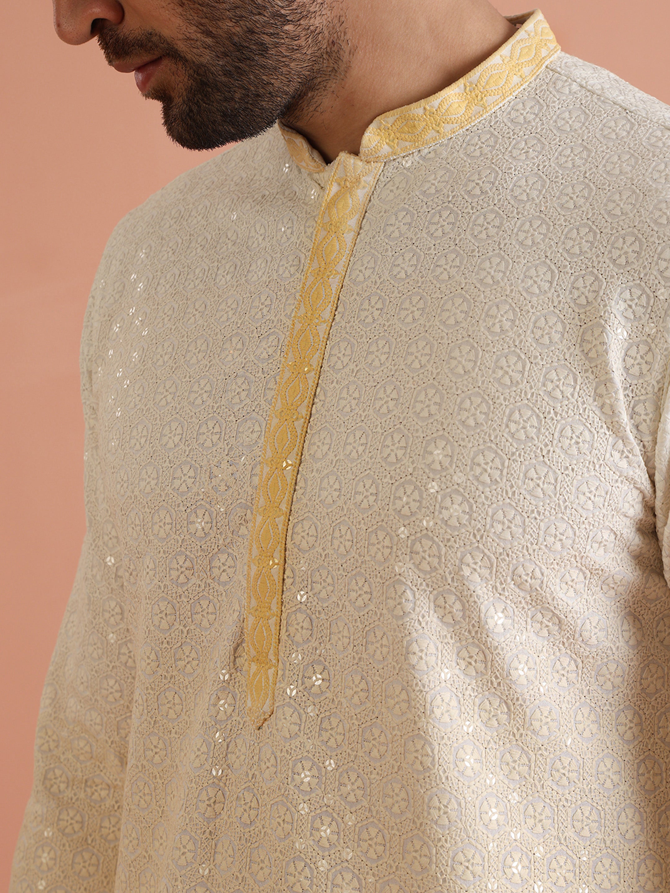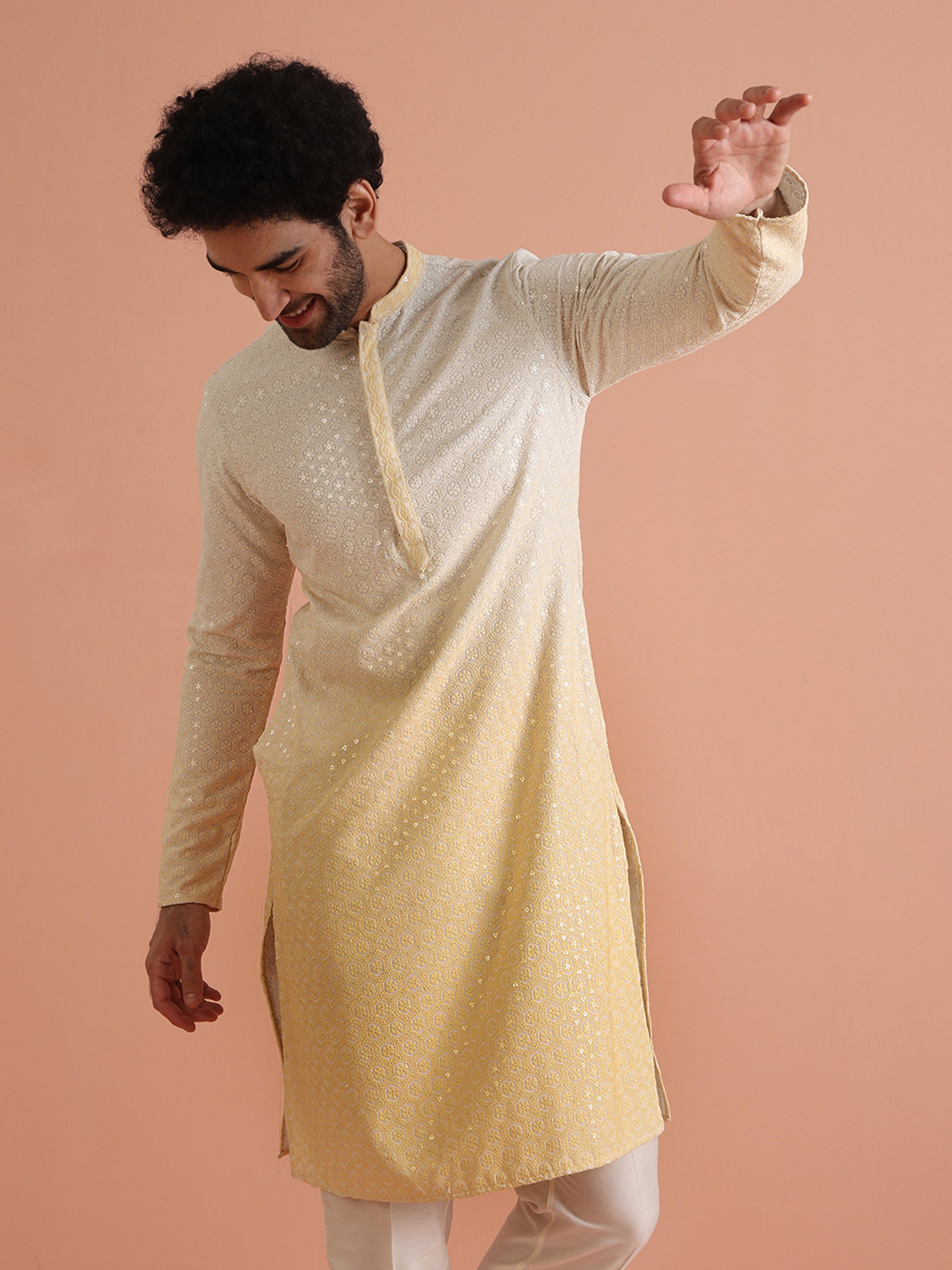 Experience classic elegance with this Men's Yellow Color Cotton Blend Kurta Trouser Set. The Embellished Pattern adds a refined touch, while the breathable fabric ensures comfort throughout the day. Ideal for festive events or casual wear, this Kurta Trouser Set is a wardrobe essential.