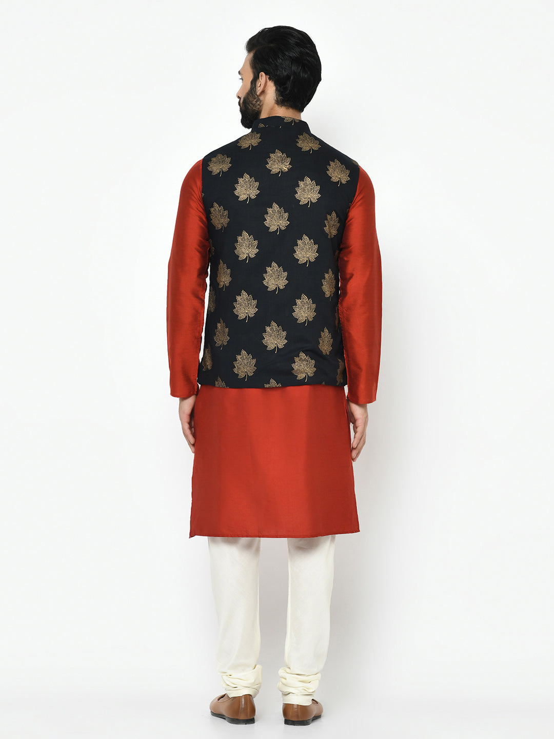 This Kurta Jacket Set with Black Color is an elegant mandarin collar style that is perfect for occasional wear. With a full sleeve Printed Pattern and comfortable Cotton Blend fabric, it will make you look stylish.