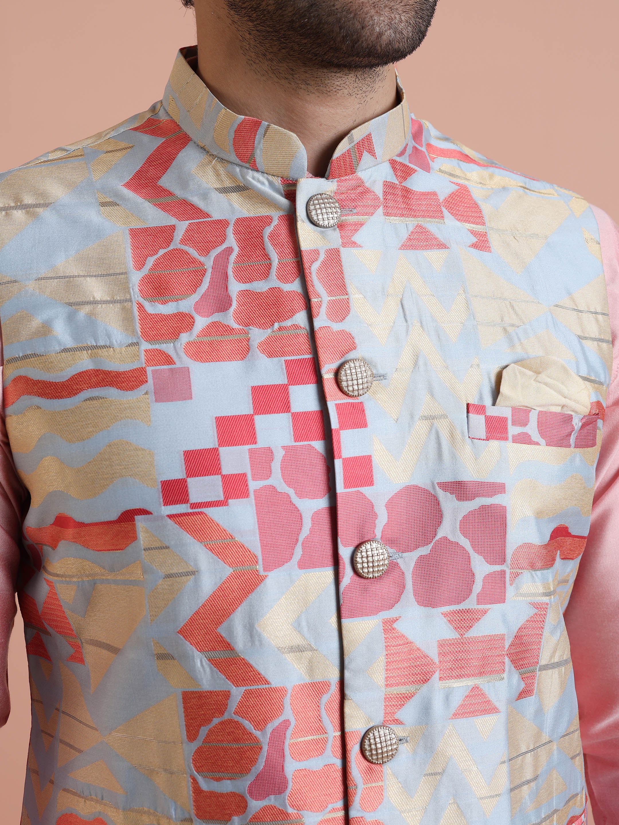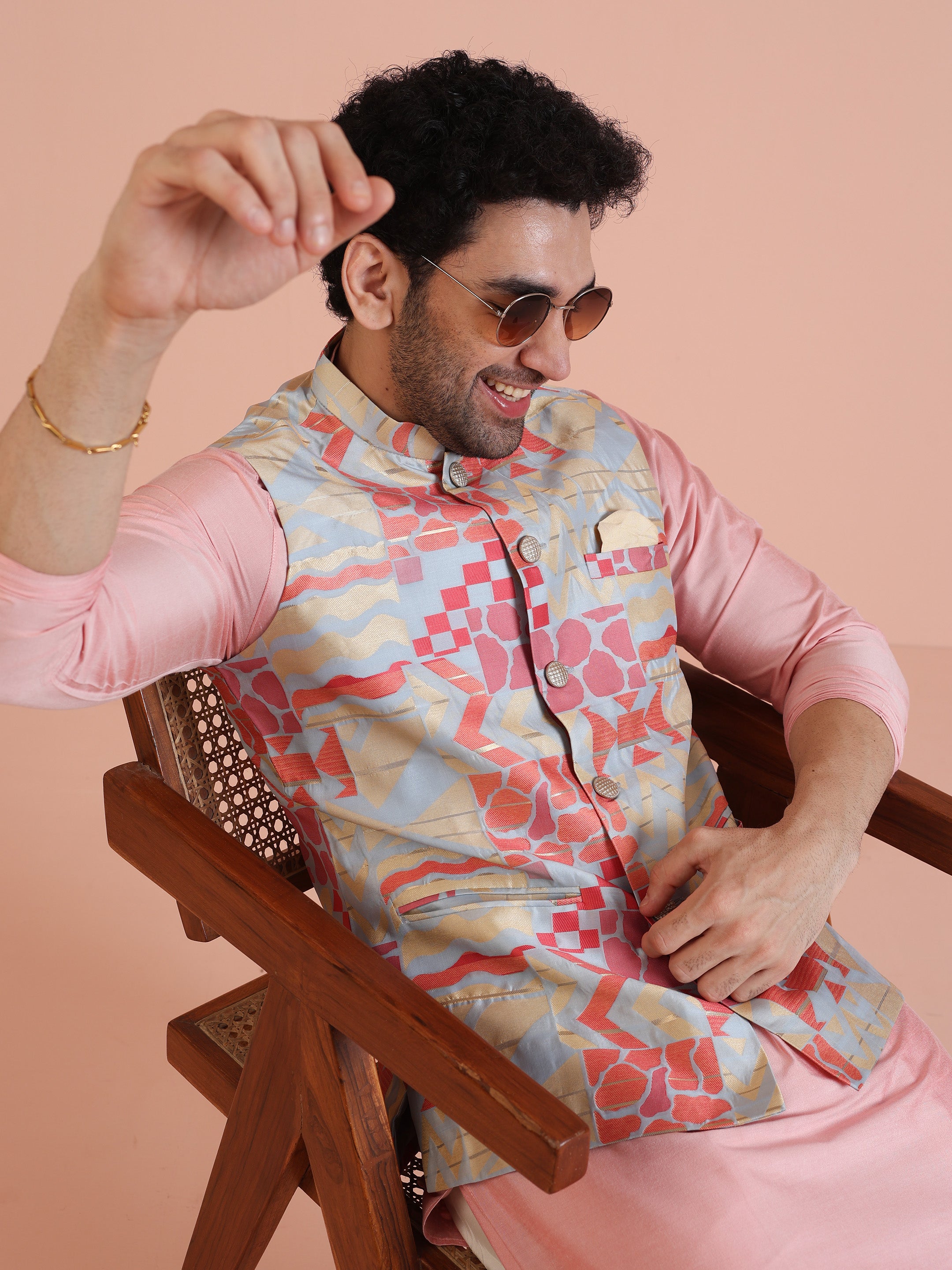 Multi Cotton Silk Geometric Printed Nehru Jacket